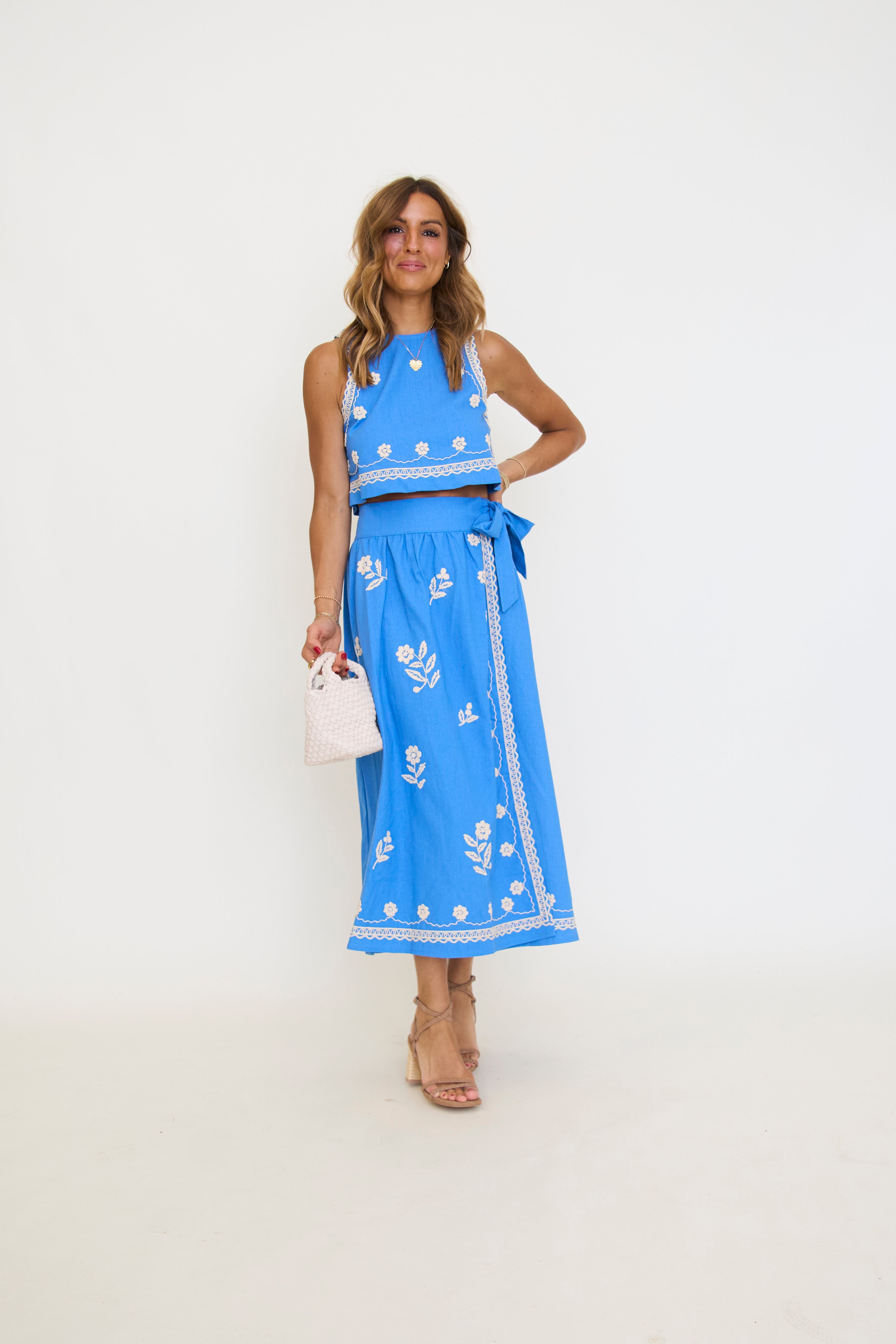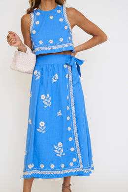 Jewel Embellished Cropped Top And Midi Skirt Set