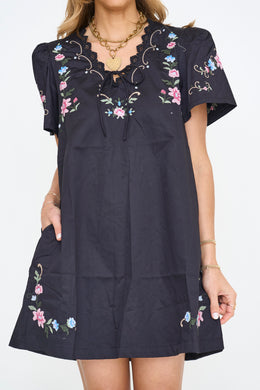 Solid Sleeveless Velvet Collar Bow Mini Dress