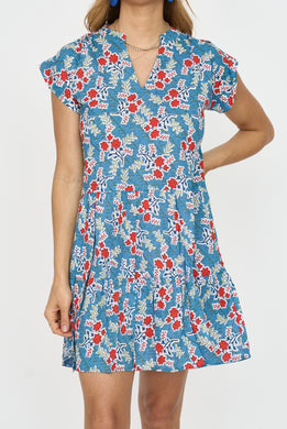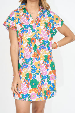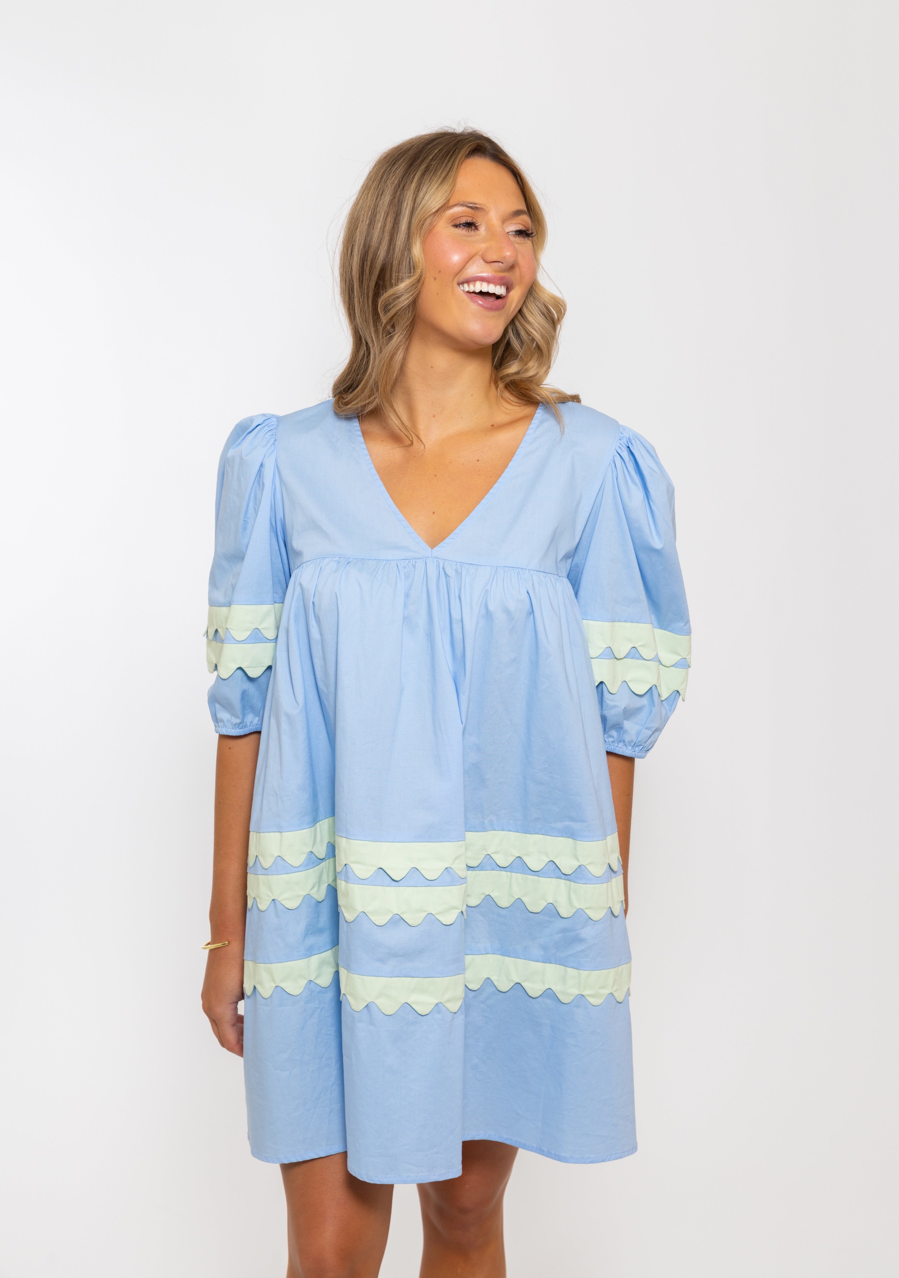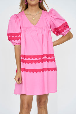 Ivory and Navy 3/4 Sleeve Mini Dress