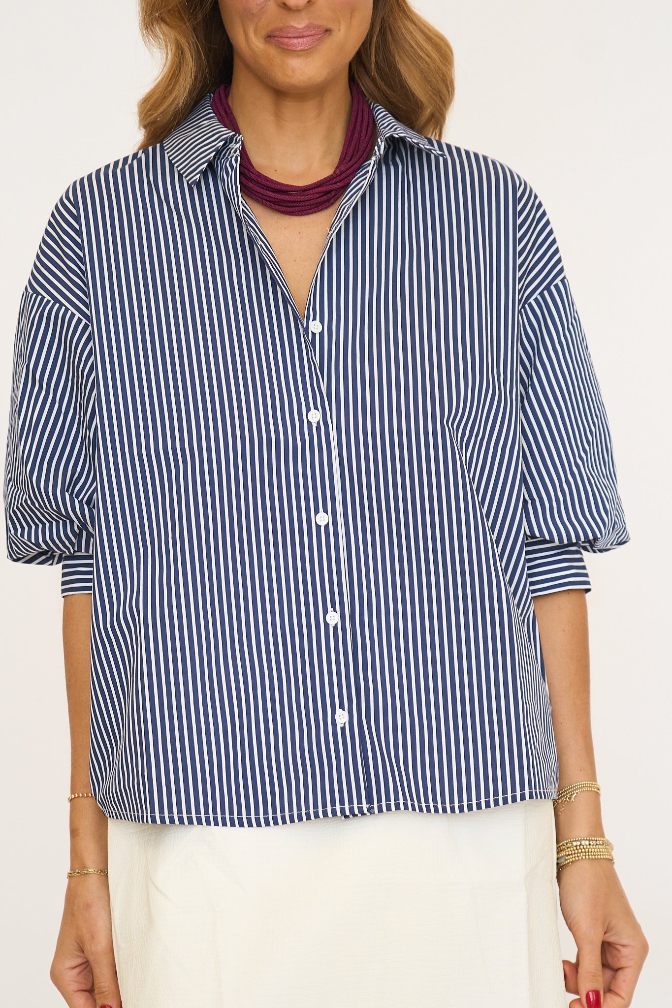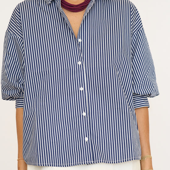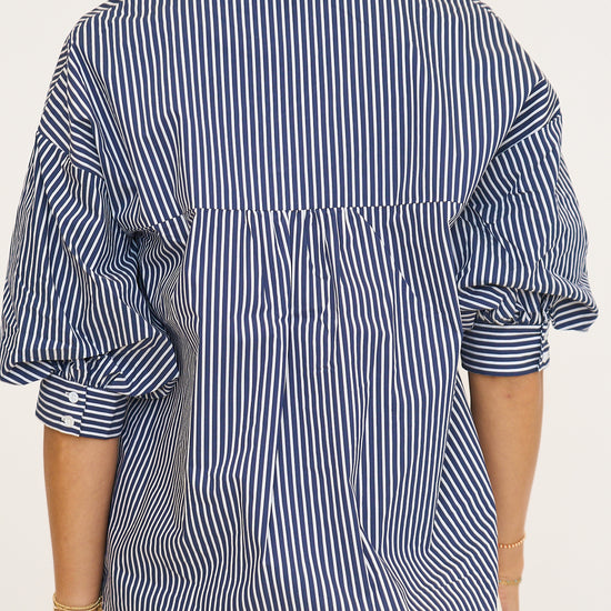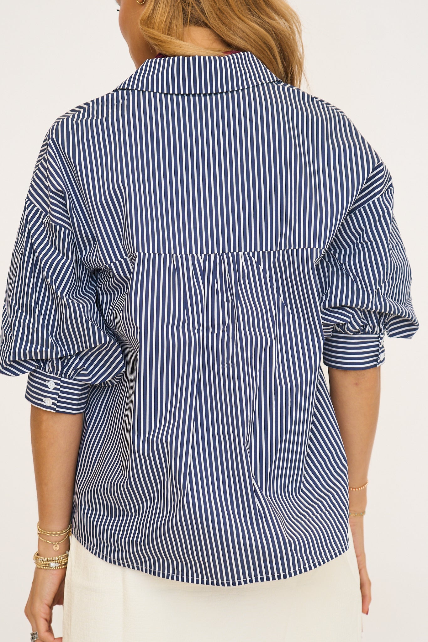 A closet classic with a modern twist, our Striped Button Down Shirt is your new go-to for effortless polish. Crafted from soft, high-quality fabric, it features timeless vertical stripes, a crisp collar, and a relaxed silhouette with drop shoulders and roomy sleeves. Whether you're styling it for work, weekends, or layering year-round, this versatile top brings instant sophistication to any look.