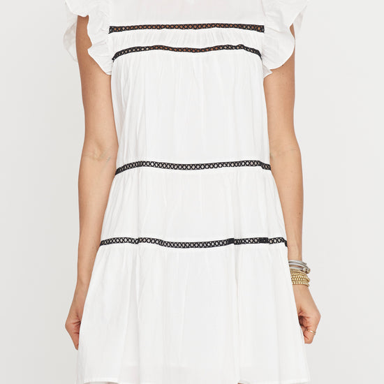 Cotton Trim: 100% Cotton - Tiered Babydoll Dress with flutter sleeves
