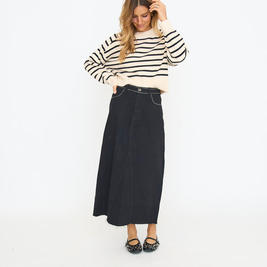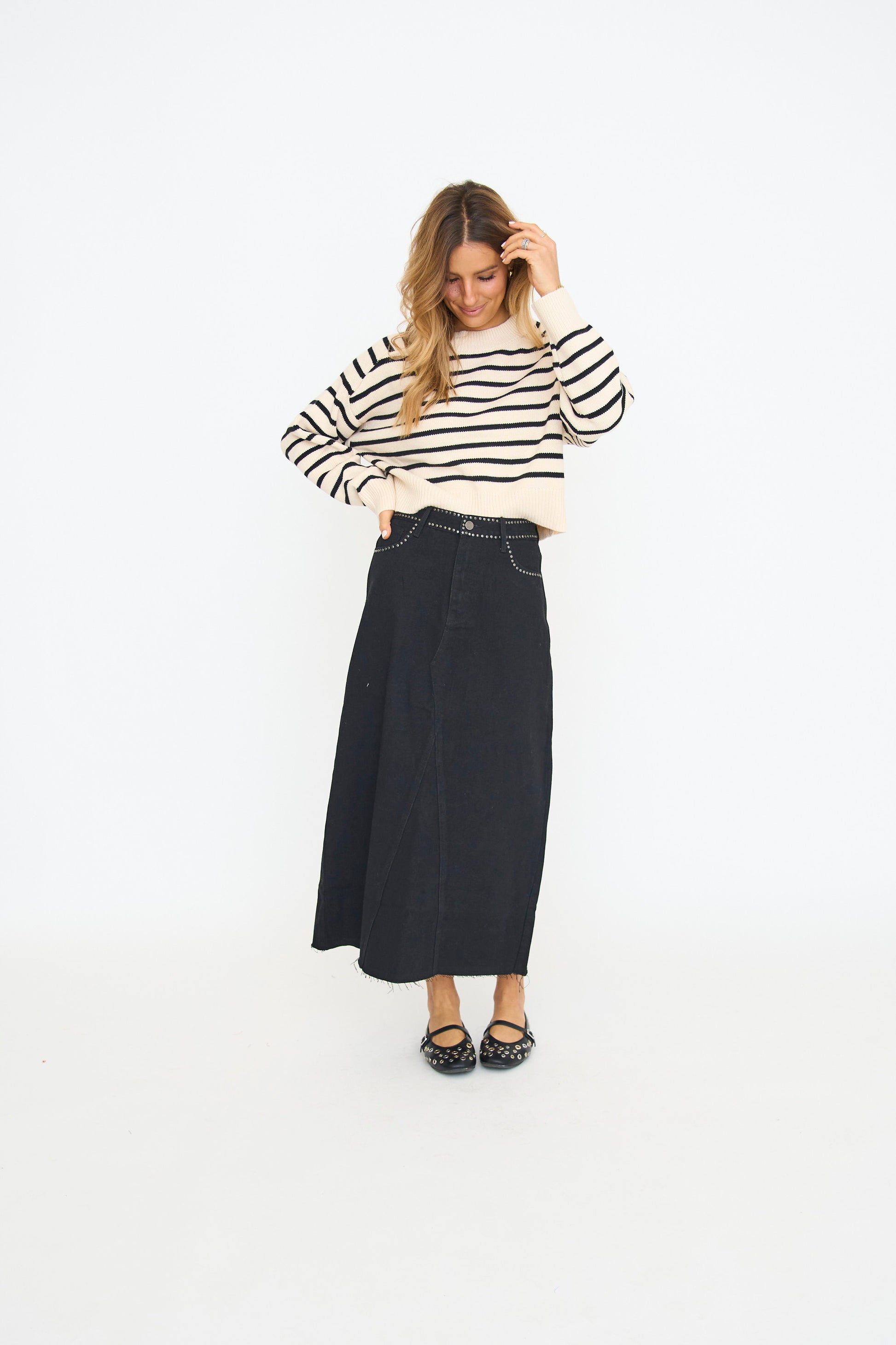 Our Amber Sweater features a relaxed fit and a pull over style. Knit.