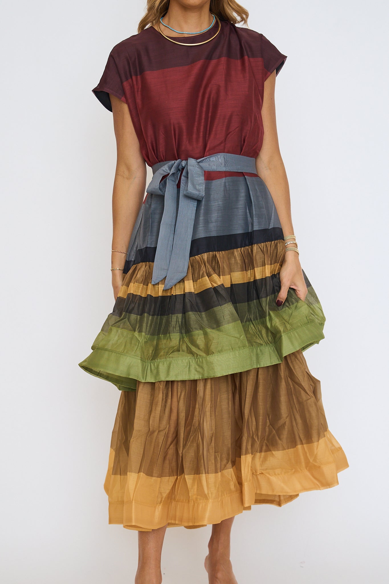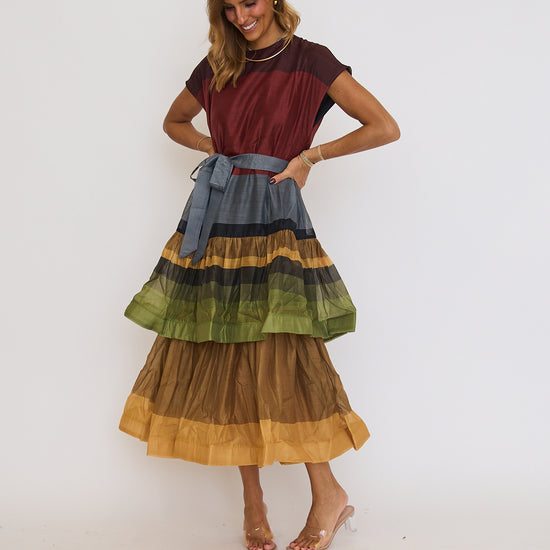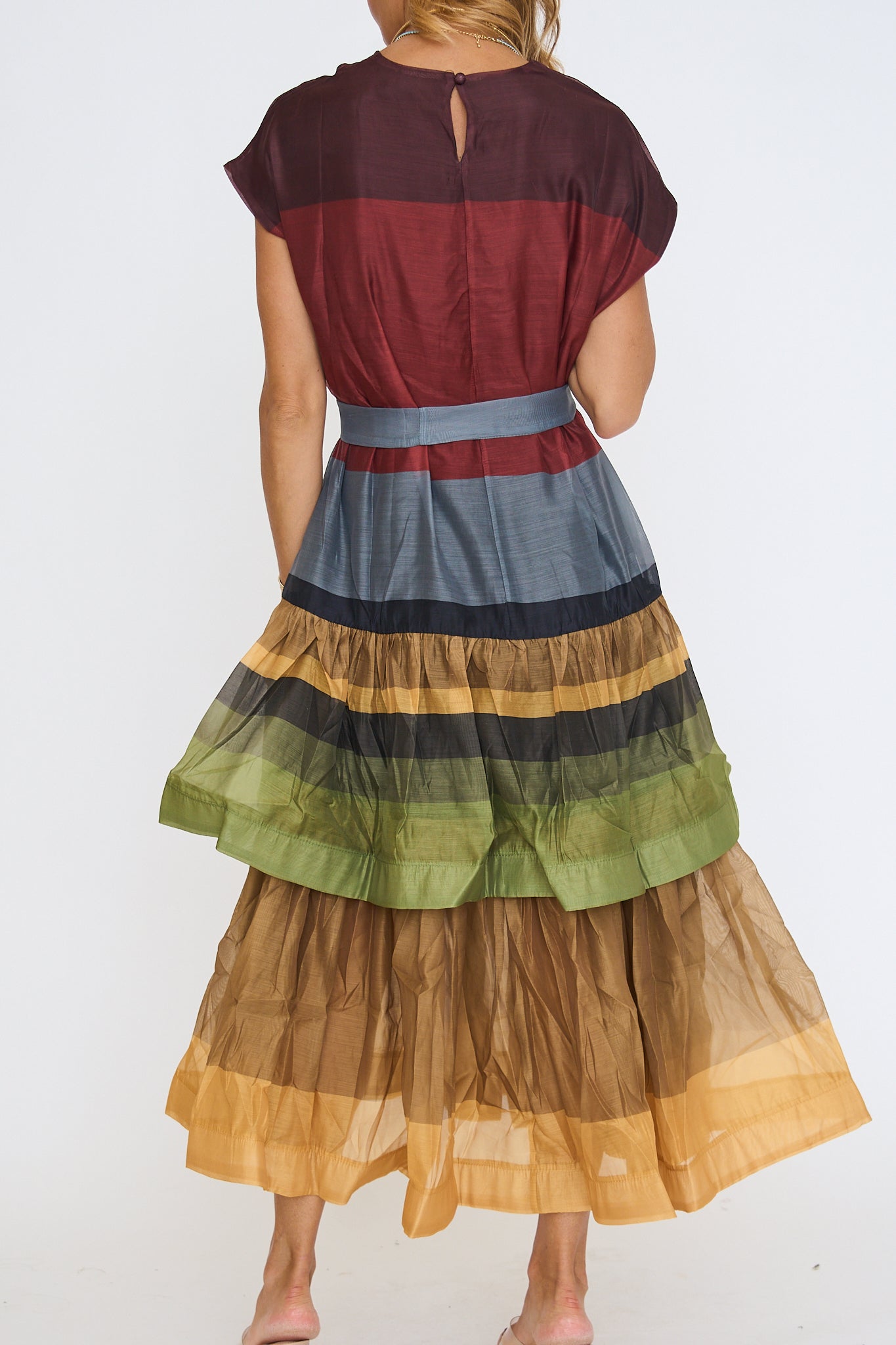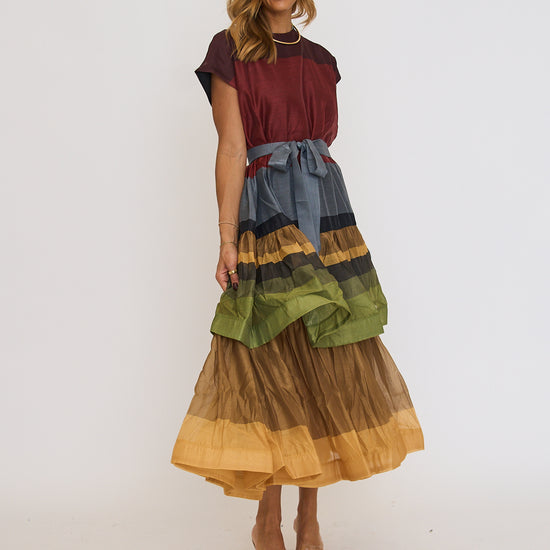 Multi-colorblock Tiered Flare Ruffles Maxi Dress