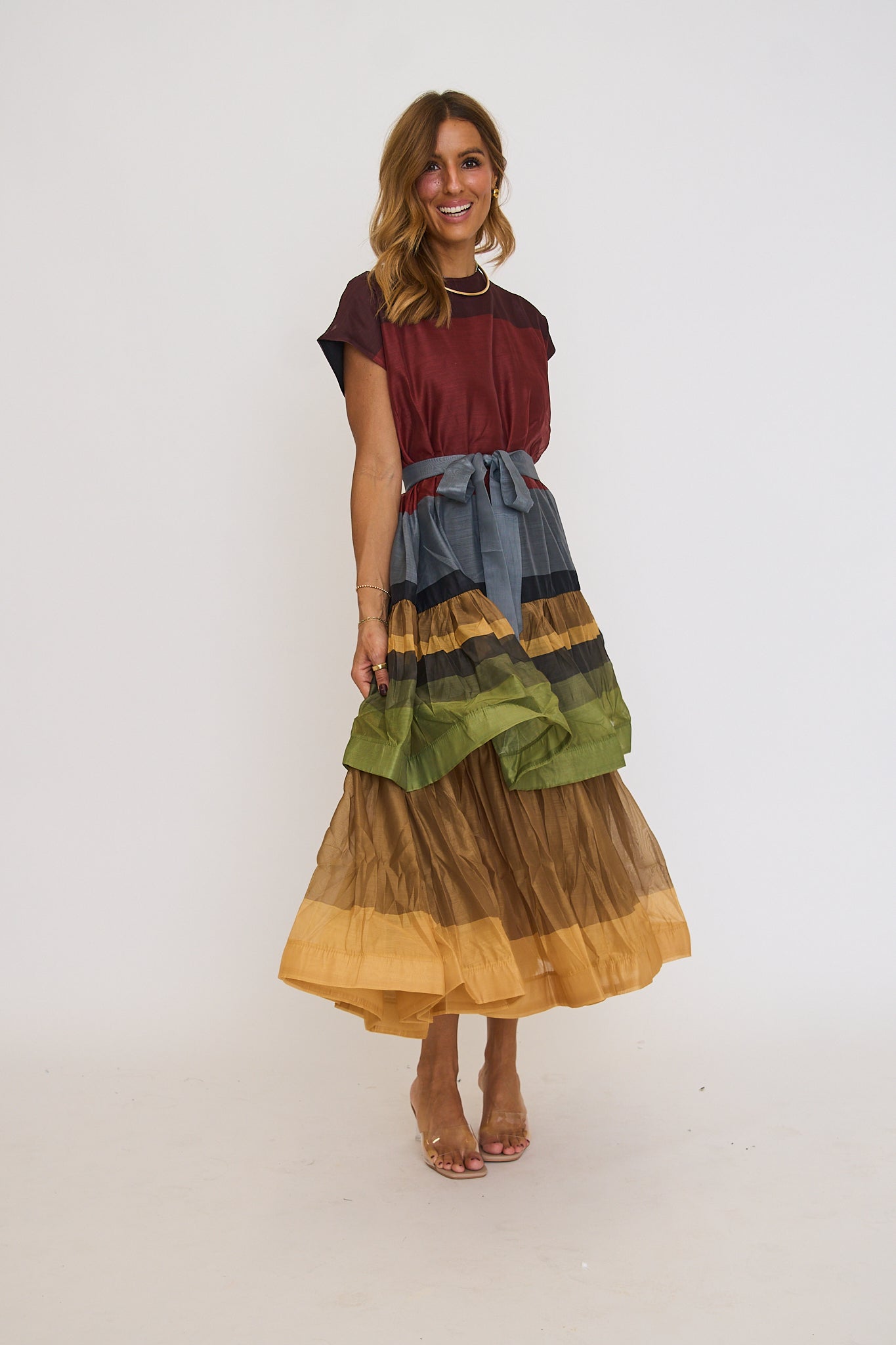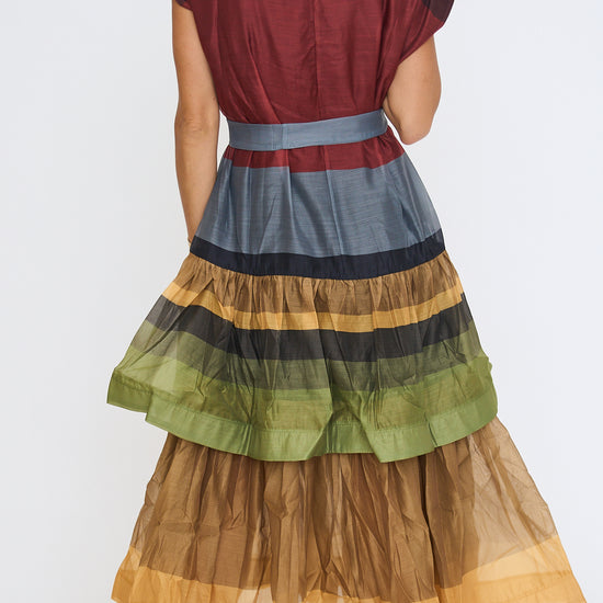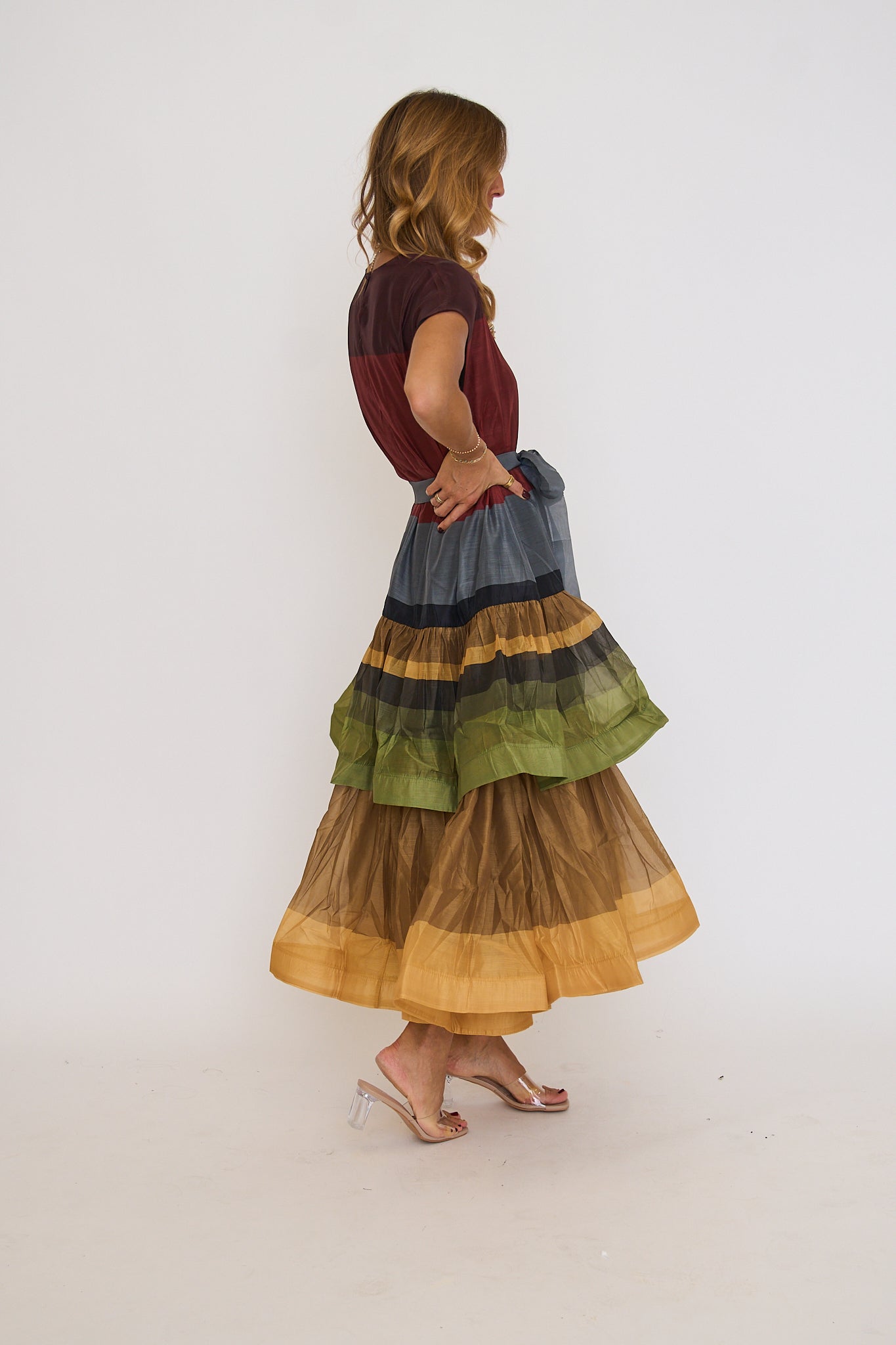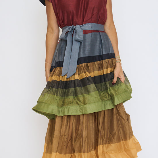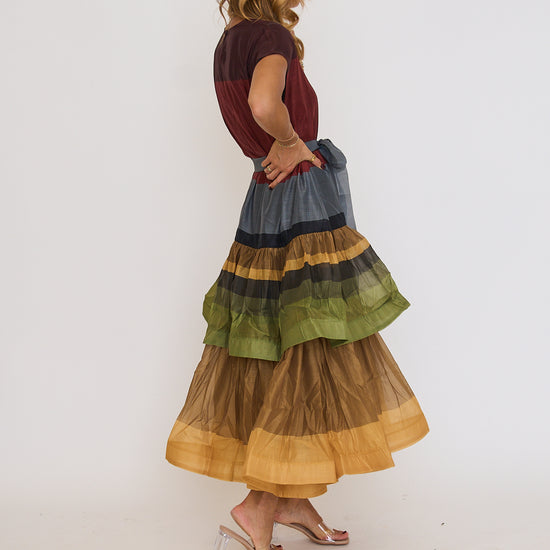 Multi-colorblock Tiered Flare Ruffles Maxi Dress