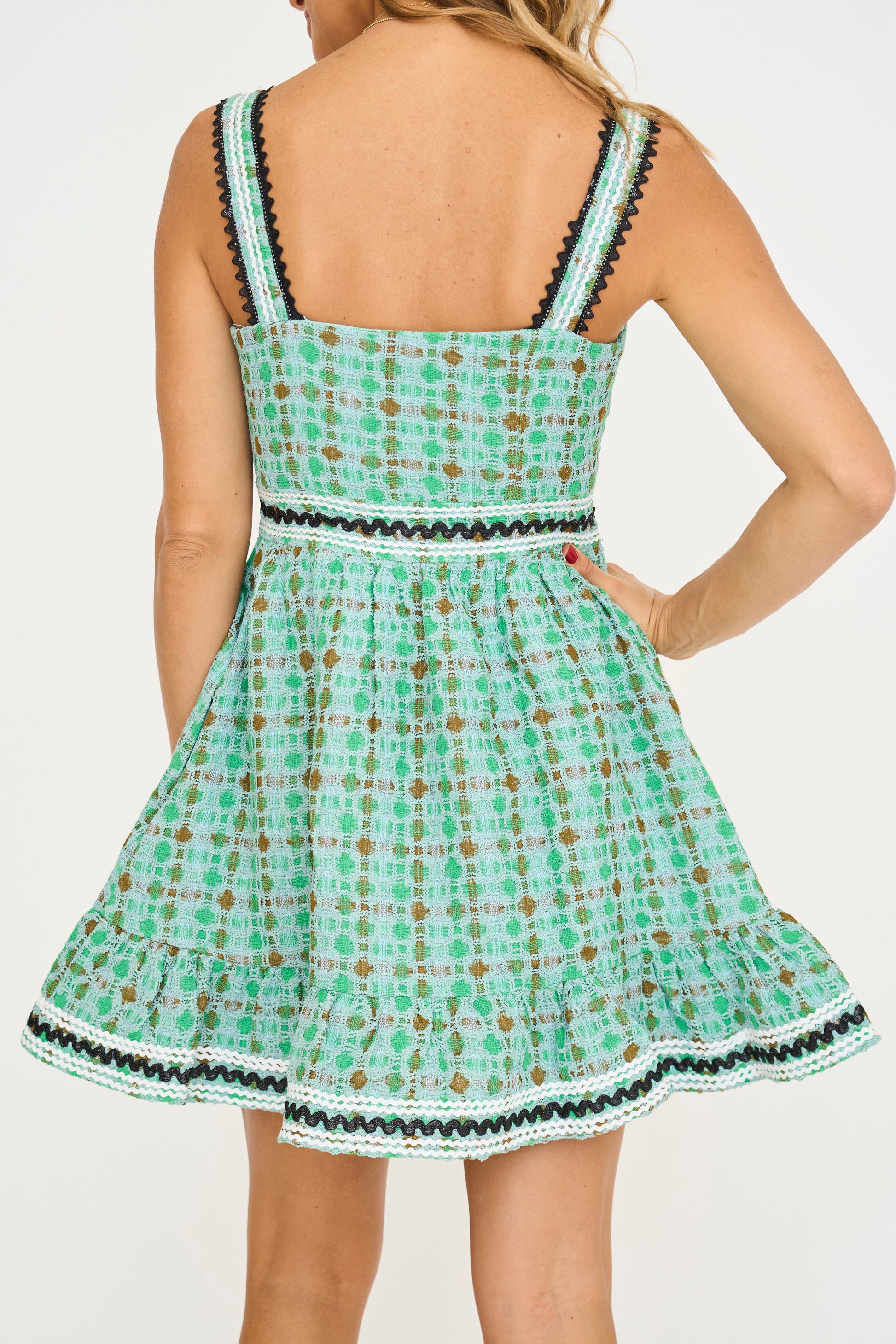 Boucle Square Neck Mini Dress With Ric Rac Trim