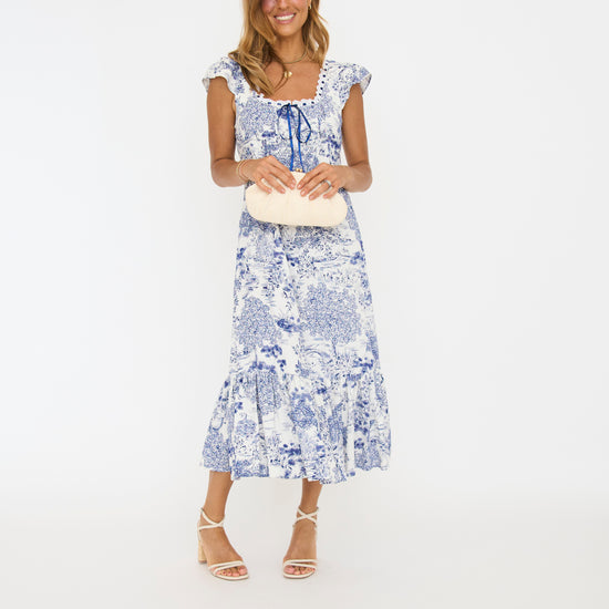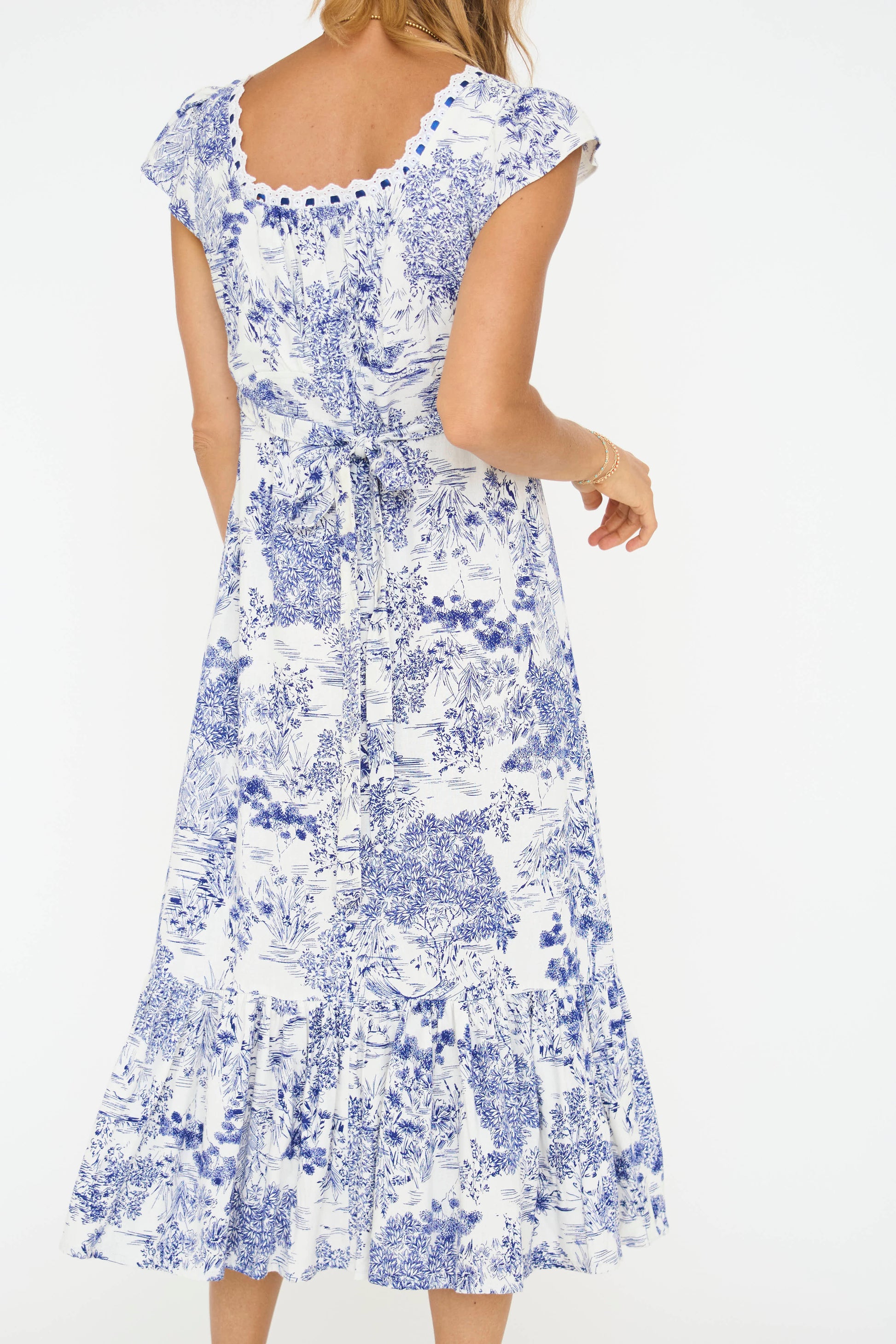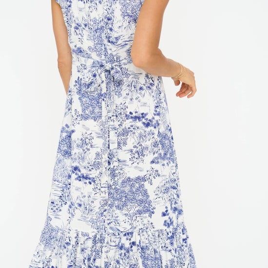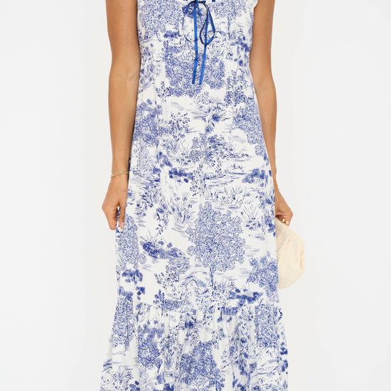 Our Briar Maxi Dress features a ruffled hem and a sleeveless.