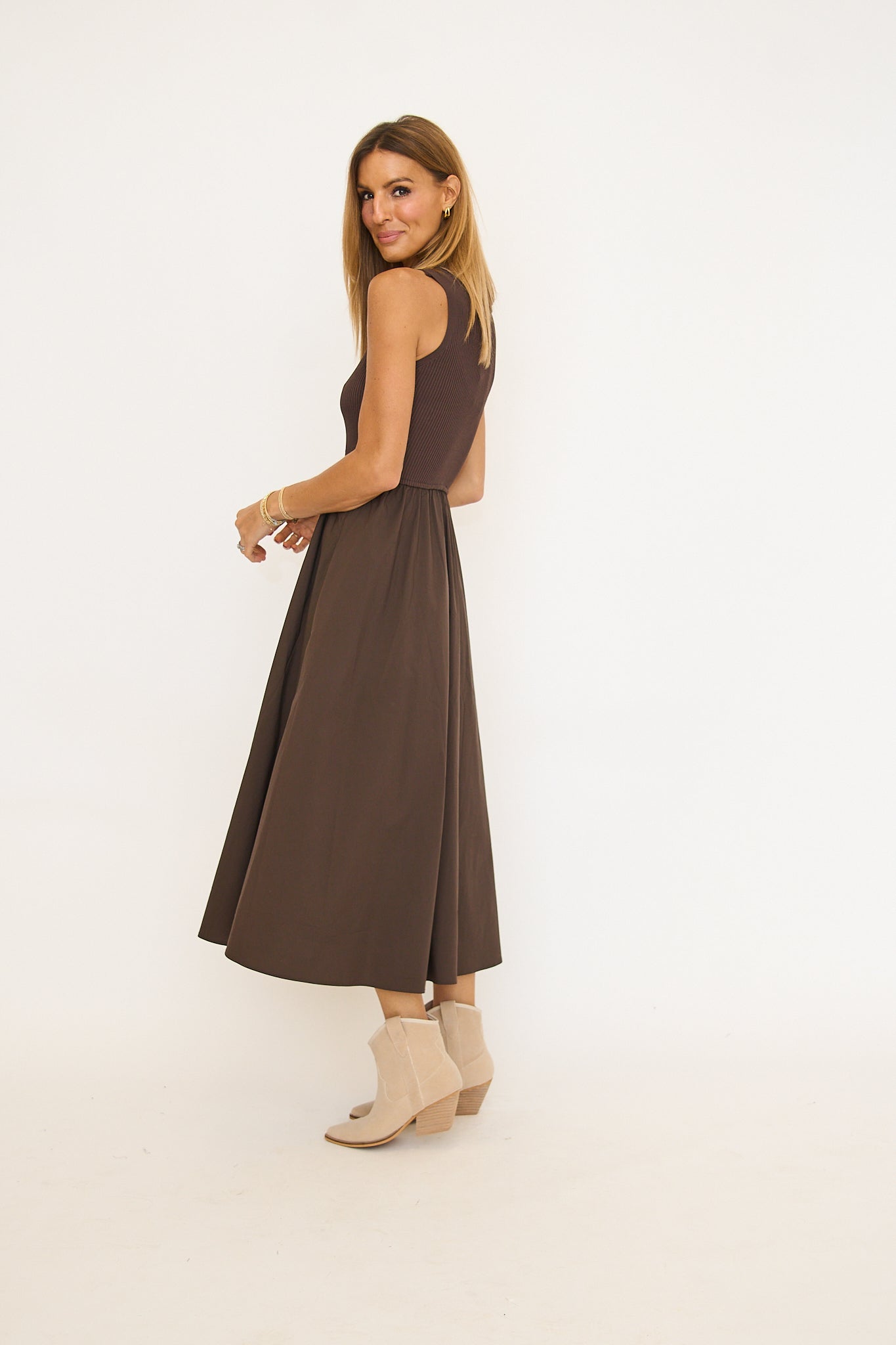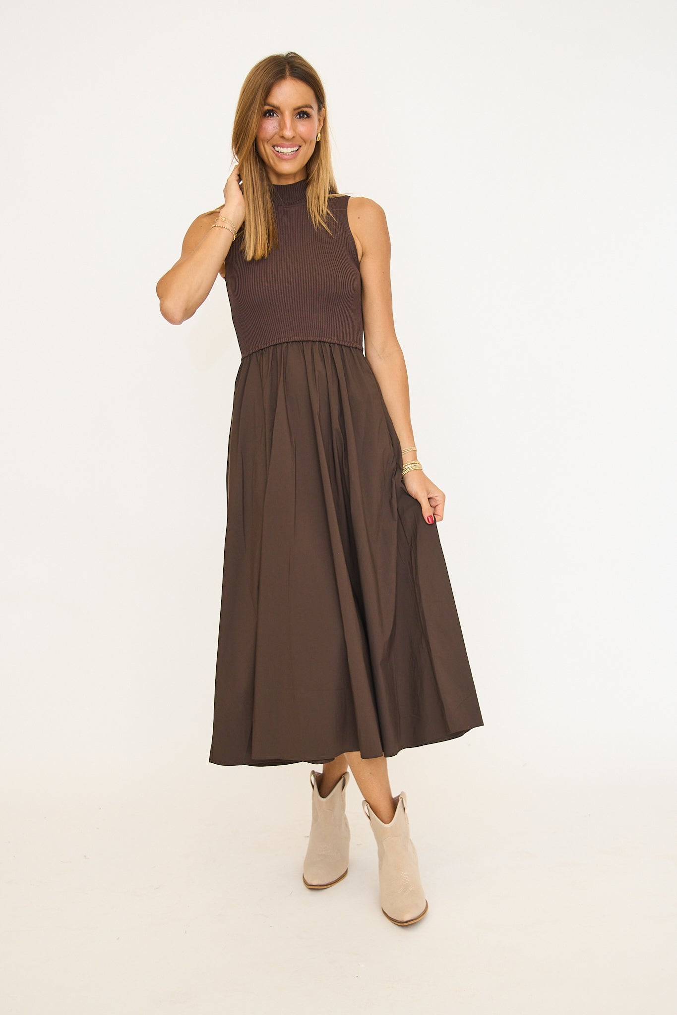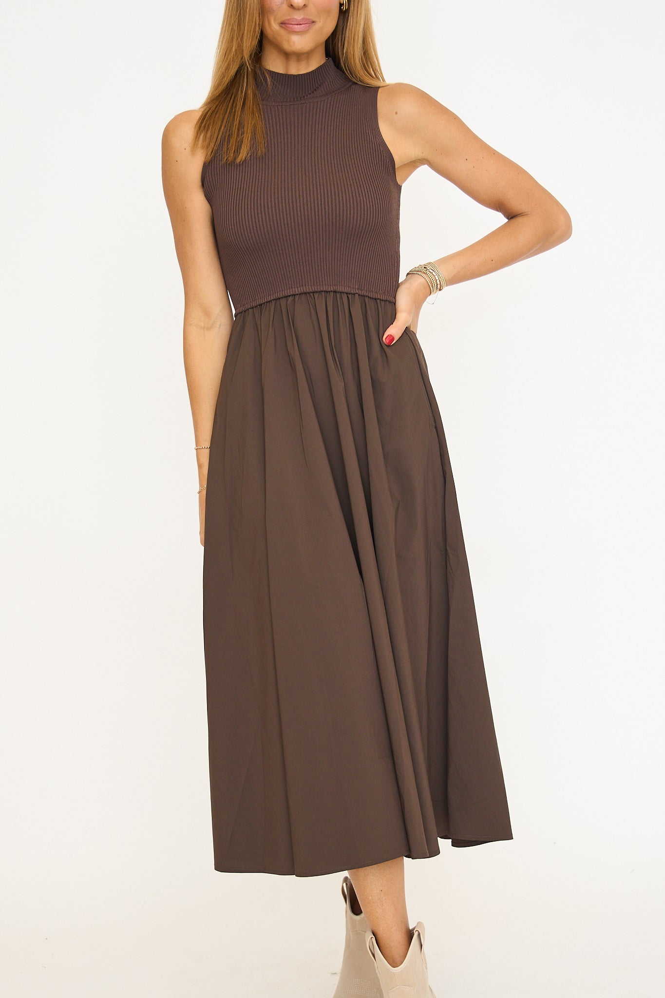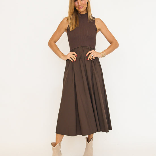 Cocoa Mixed Media Midi Dress