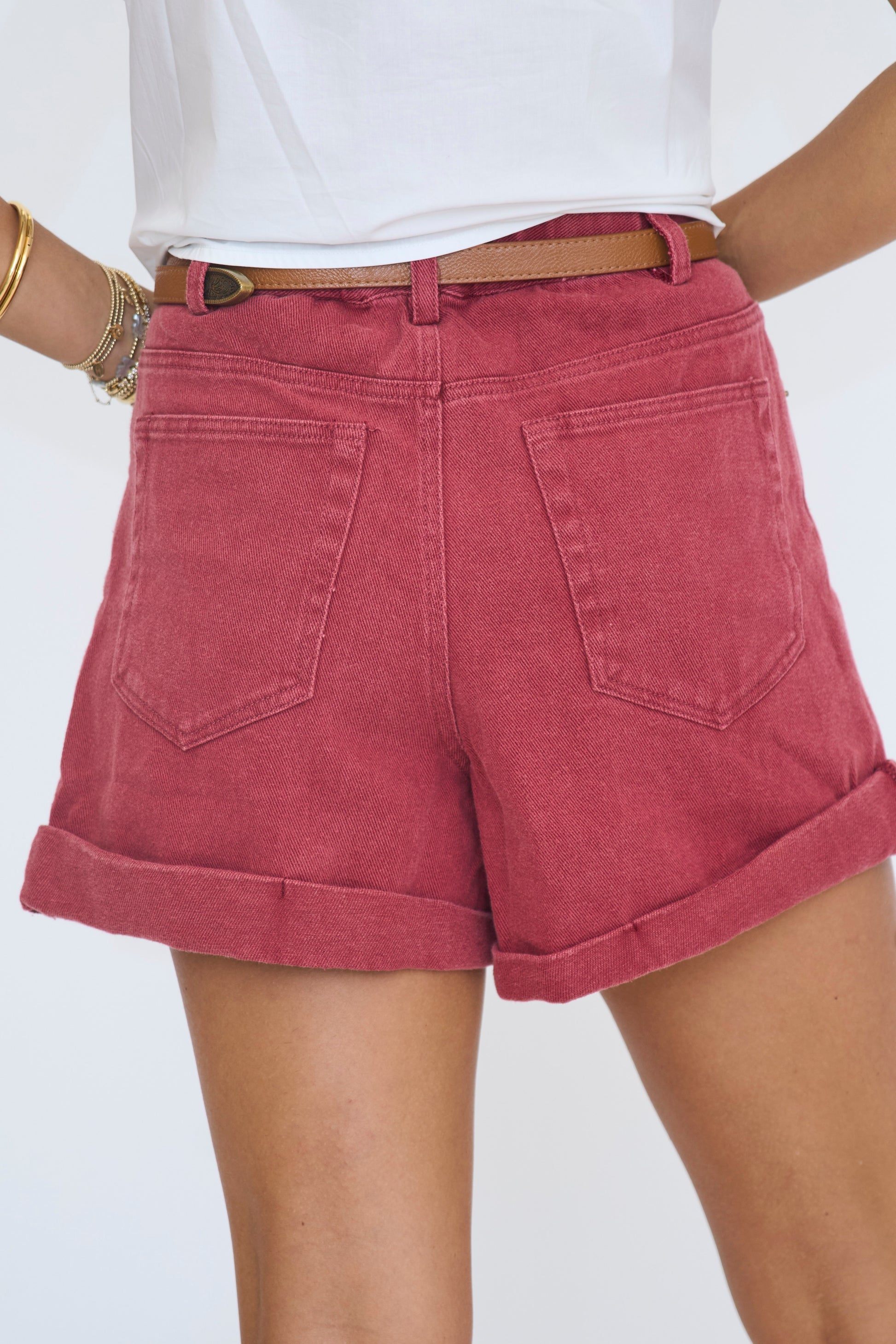 Cuffed Colored Denim Shorts