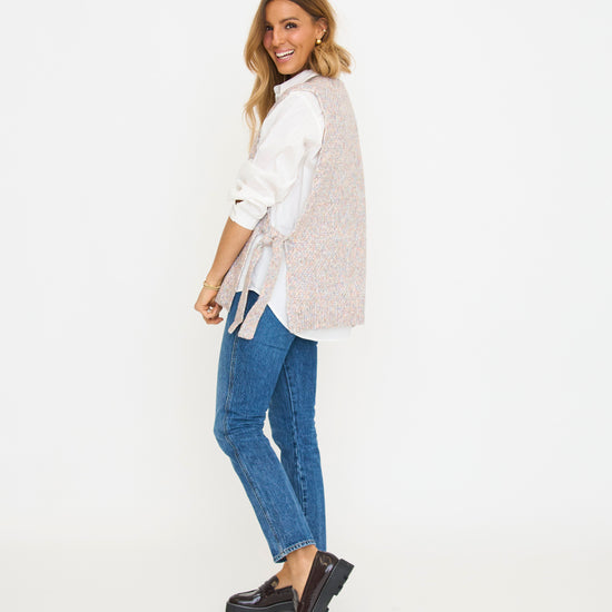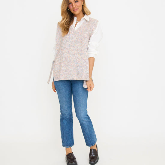 Introducing the Dasie Sweater, the perfect addition to your basic wardrobe! This v-neck sweater features a unique tie side detail, adding a touch of playful style to your look. Great for layering!