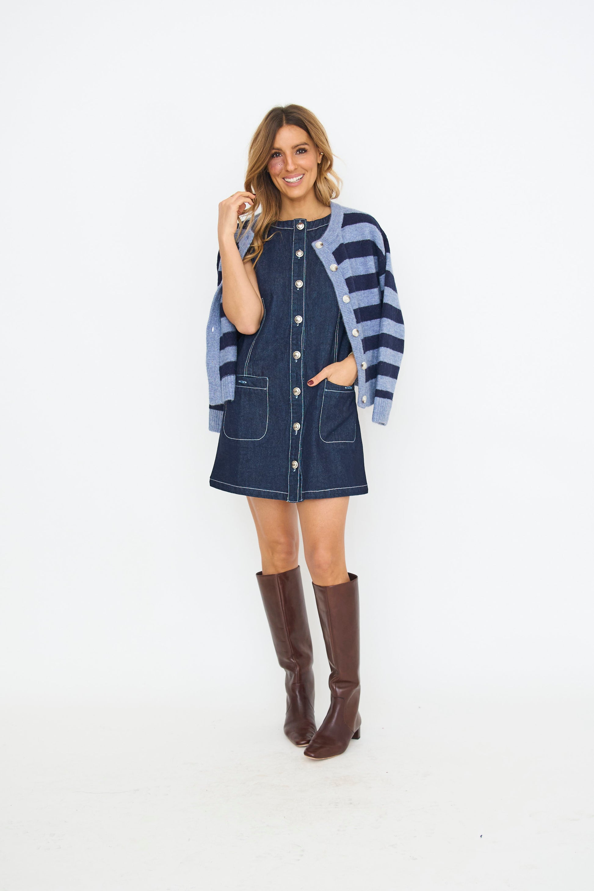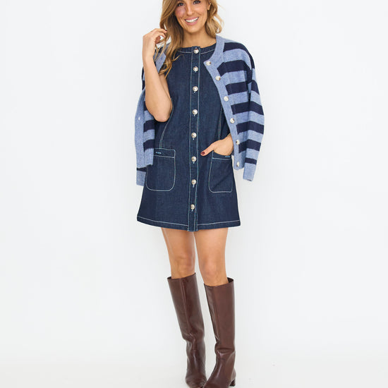 Denim Silver Button Mini Dress