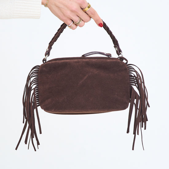 Small fringe handbag in a faux suede material