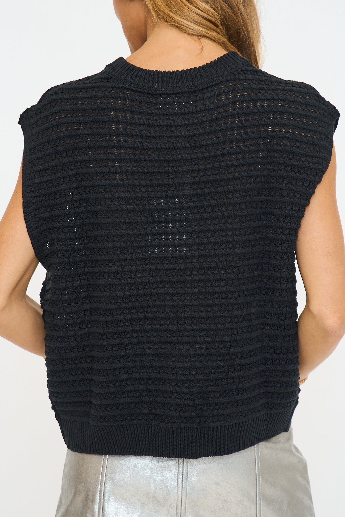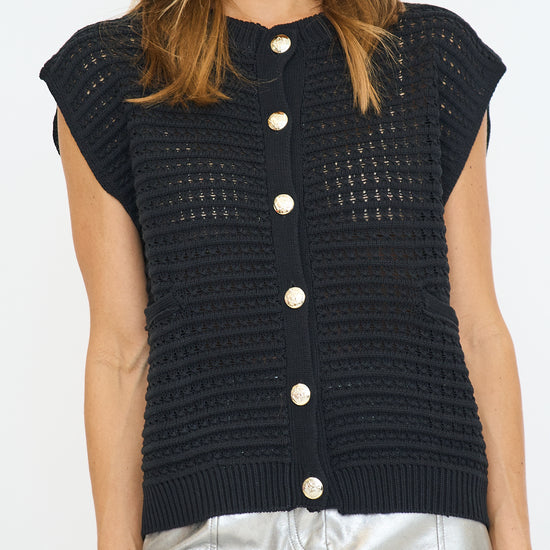 The Ayla Vest is a button-front cardigan with a sleeveless twist. Relaxed and layer-friendly, this knit is perfect over dresses, tanks, or button-downs — ideal for transitional fall styling.