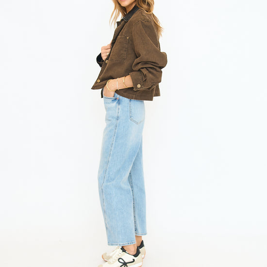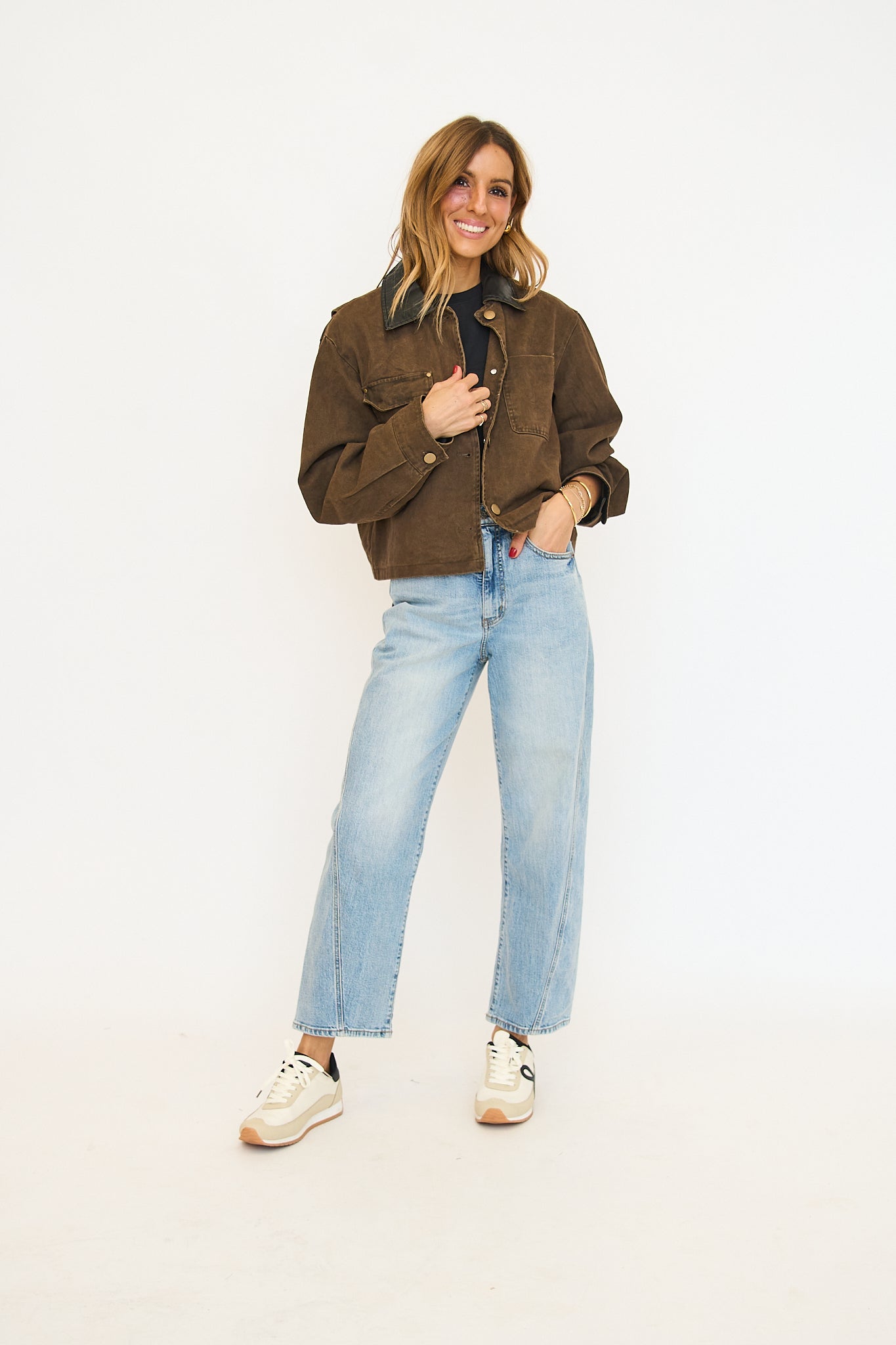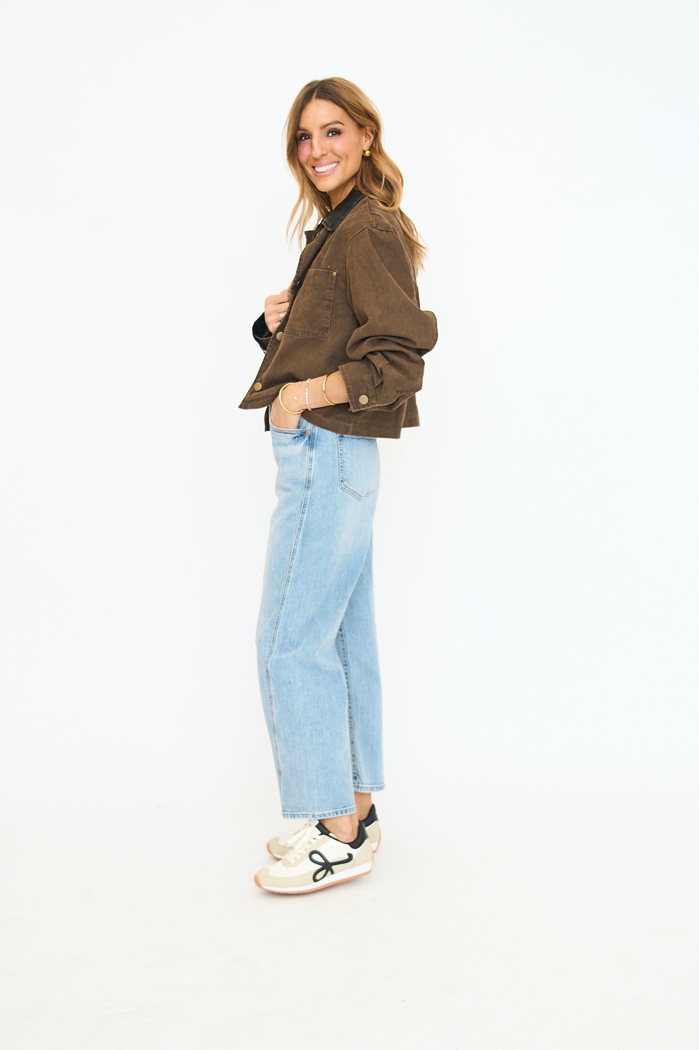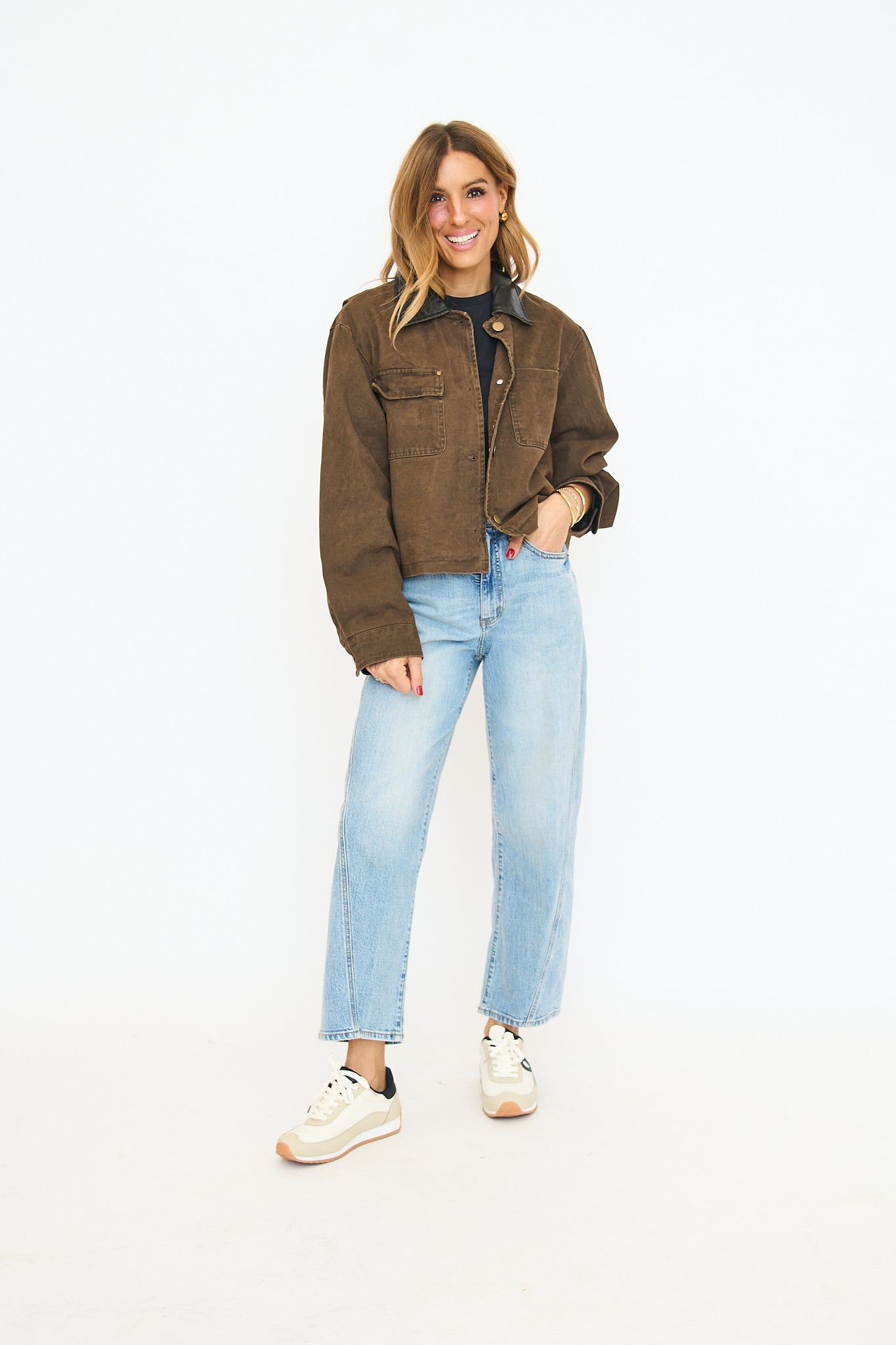 The Cocoa Jacket is your go-to for fall layering with a twist. Featuring a faux leather collar and cuffs, this statement piece is the perfect addition to your wardrobe and can instantly upgrade your outfit.
