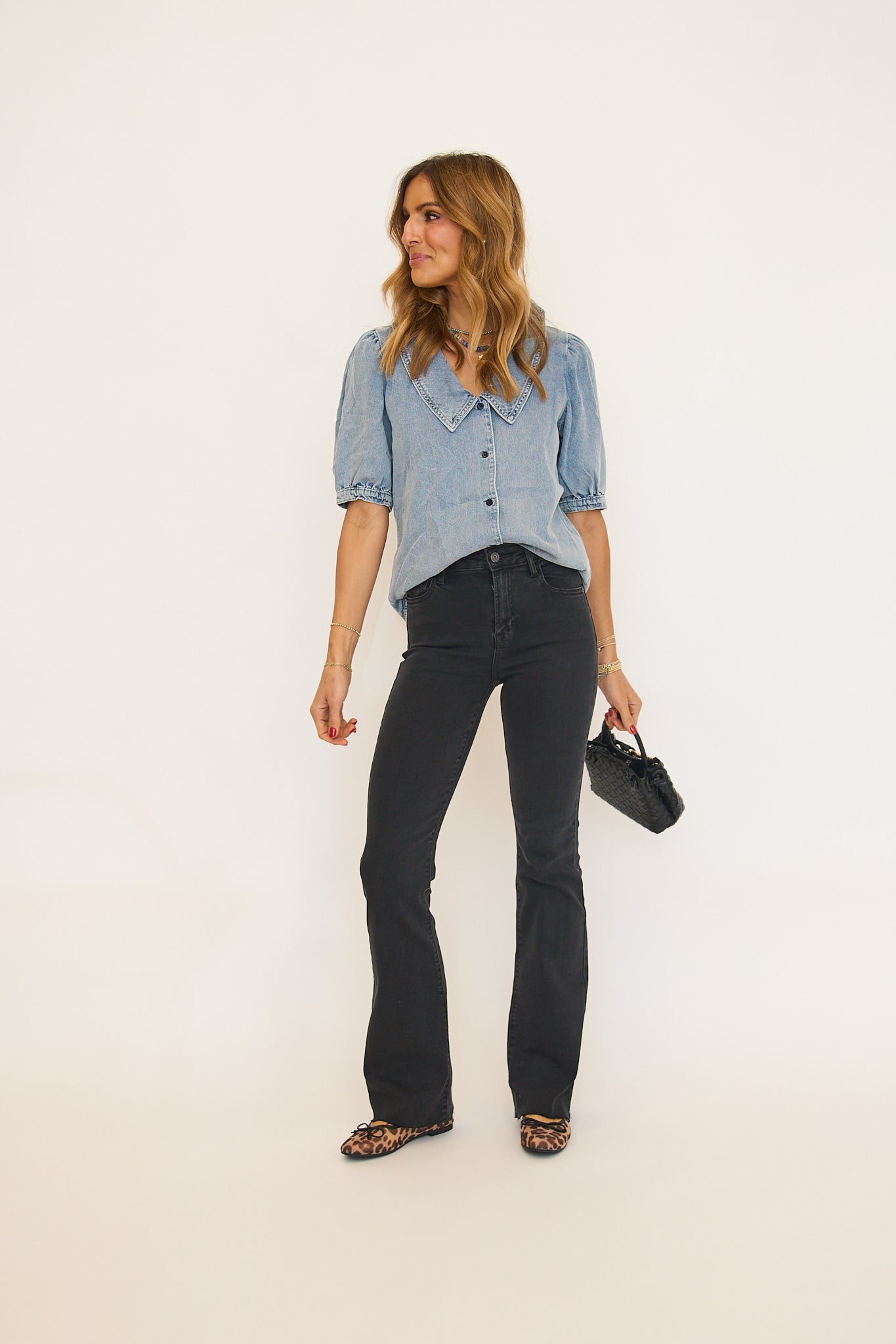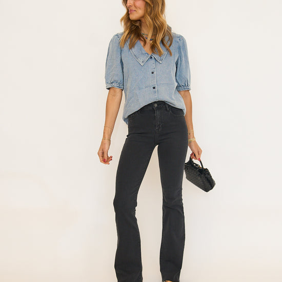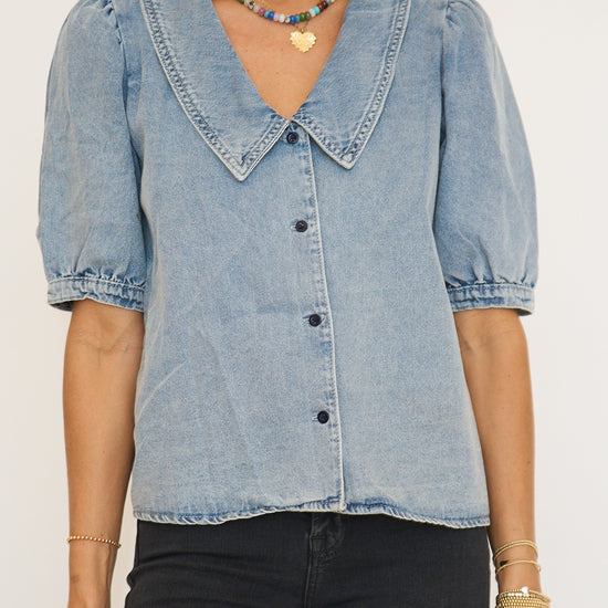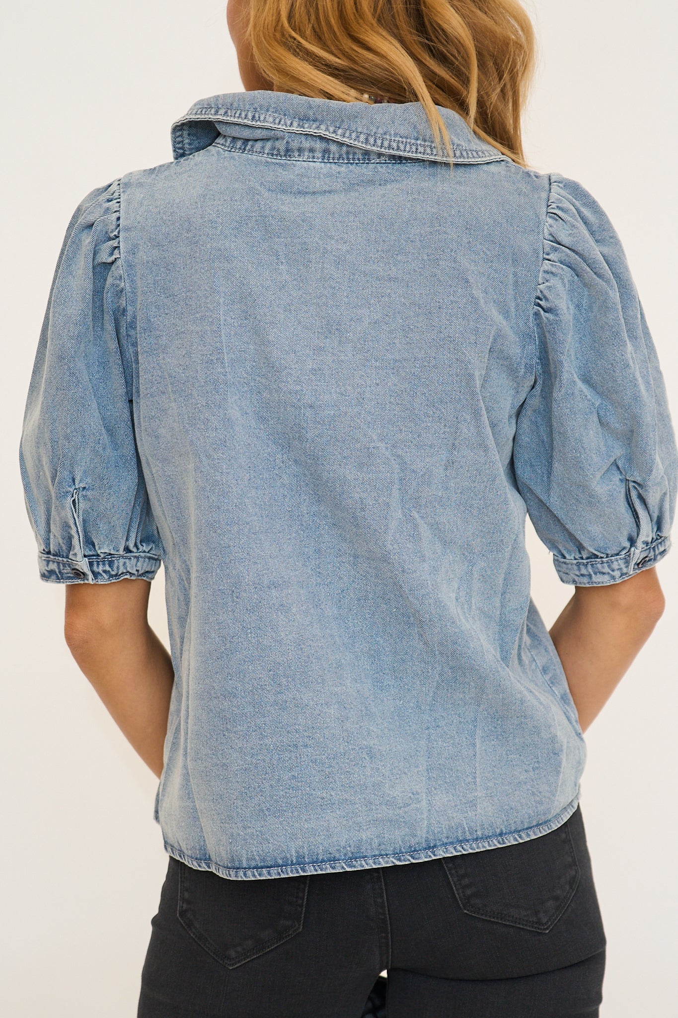Upgrade your everyday style with our Deep V-Neck Button Up Denim Shirt, a modern twist on a timeless classic. Designed with a flattering deep V neckline and statement collar, this shirt adds effortless sophistication to any outfit. The soft, lightweight denim fabric provides all-day comfort, while the puff sleeves give it a touch of feminine charm. Versatile and easy to style, wear it with jeans for a chic denim-on-denim look or pair it with skirts and trousers for a more elevated ensemble. A must-have staple that blends casual cool with refined detail.