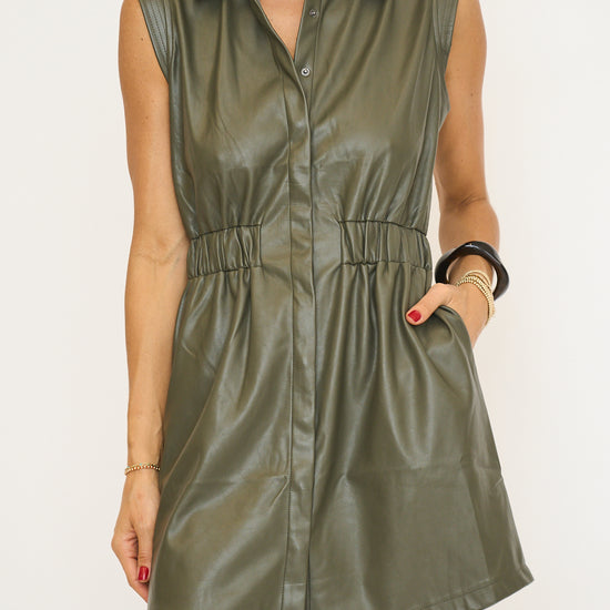 Chic meets comfort in the Farrah Dress, a sleeveless coated mini designed with an elastic waistband for effortless shaping. This statement dress brings edge to your fall wardrobe with its sleek finish and easy silhouette. Style it solo with boots or layer under a cropped jacket for transitional wear.
