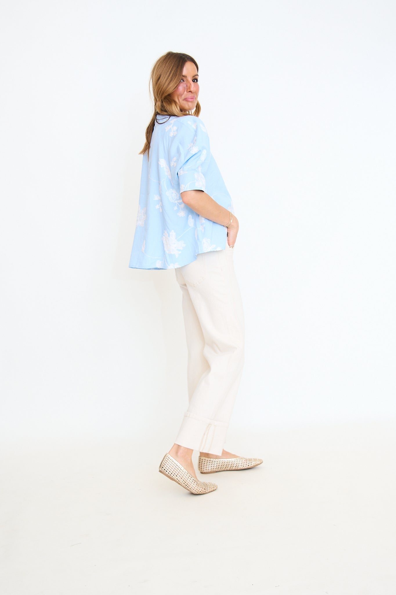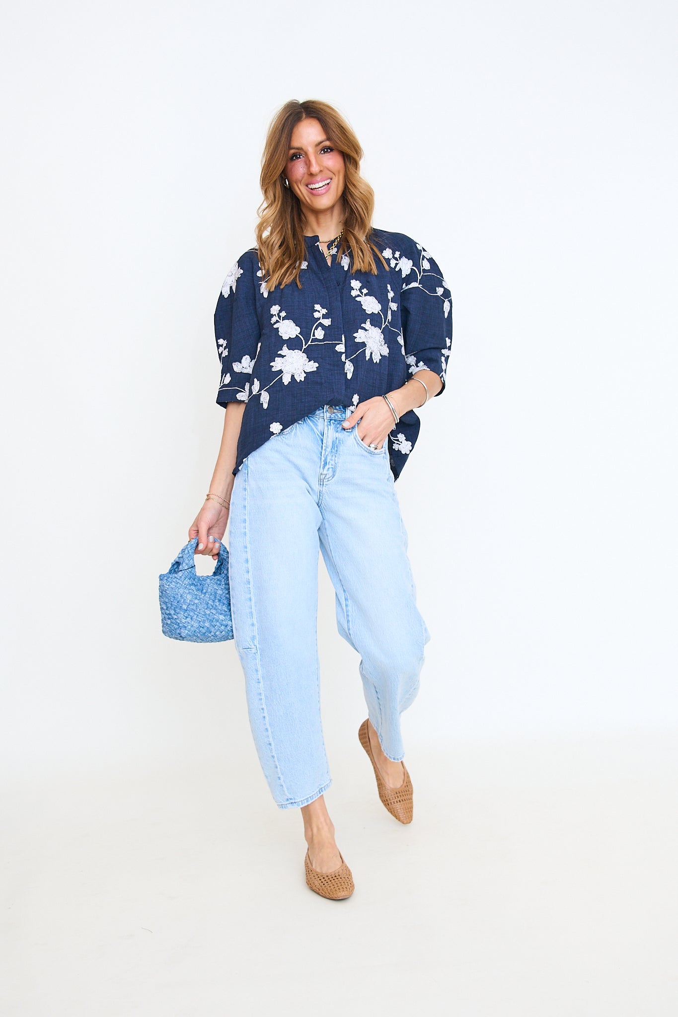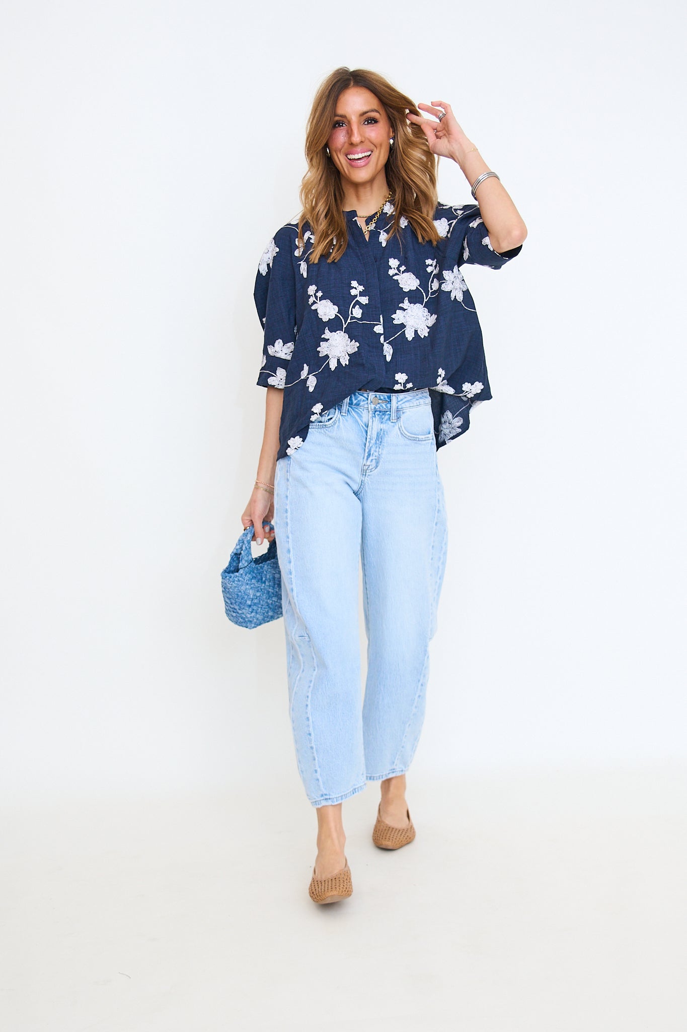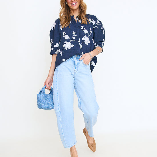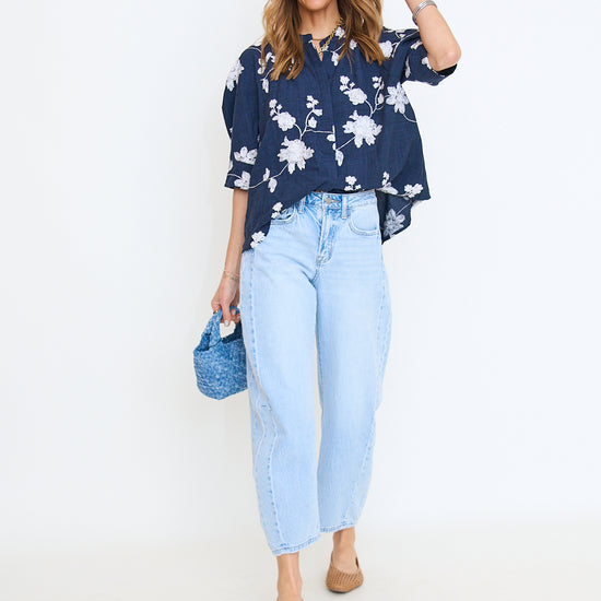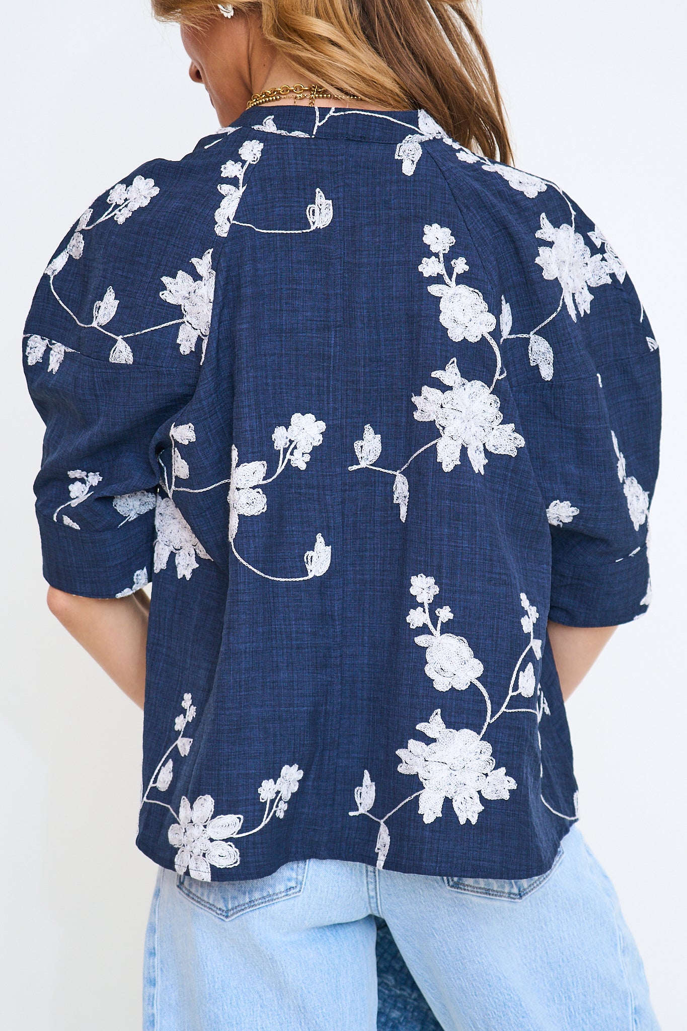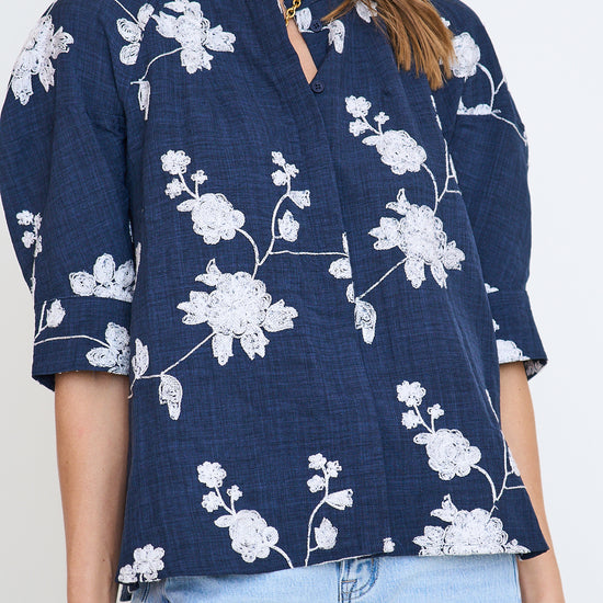 Floral Embroidered Button Down Top