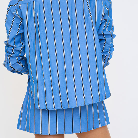 Striped Collar Button Down Shirt And Skort Set