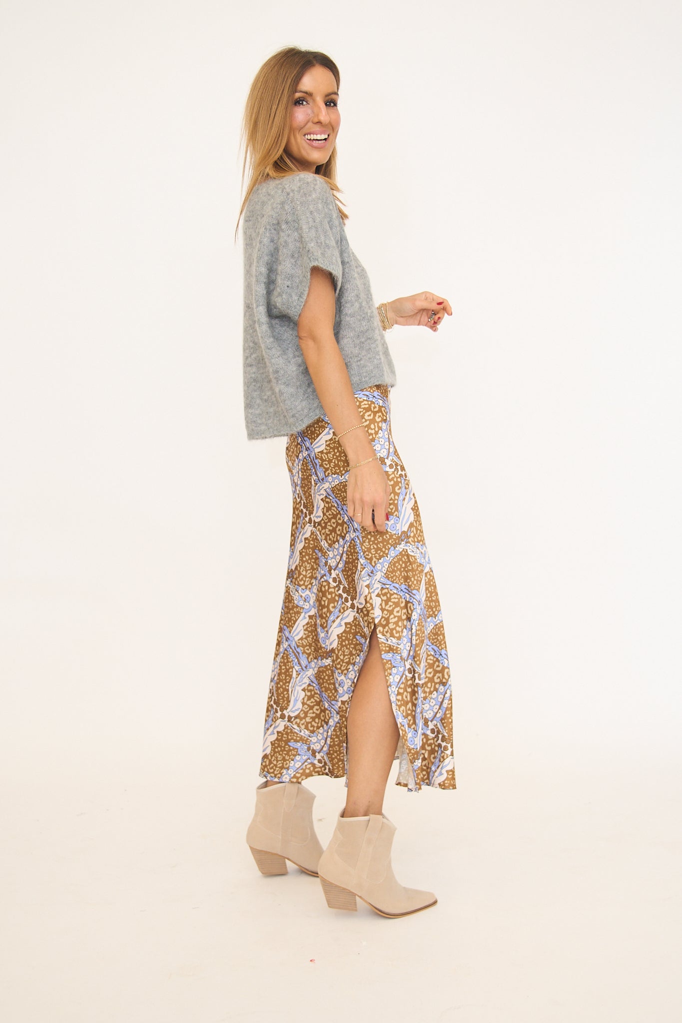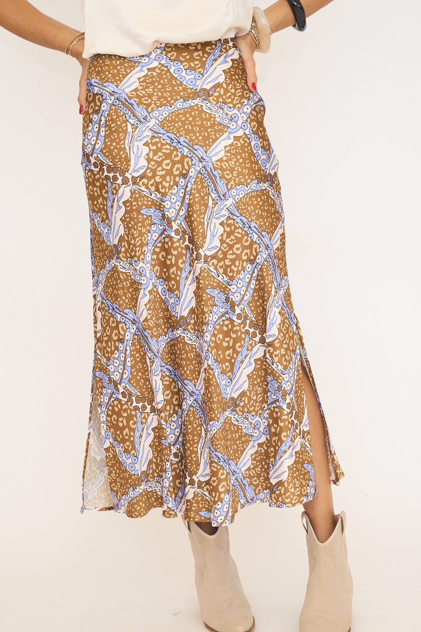 Turn heads with the Giono Skirt, featuring a bold, exclusive leopard print that adds a wild twist to your wardrobe. This long skirt flows effortlessly, merging comfort with playful style for any occasion. Embrace your fierce side with a look that’s as fun as it is fashionable.