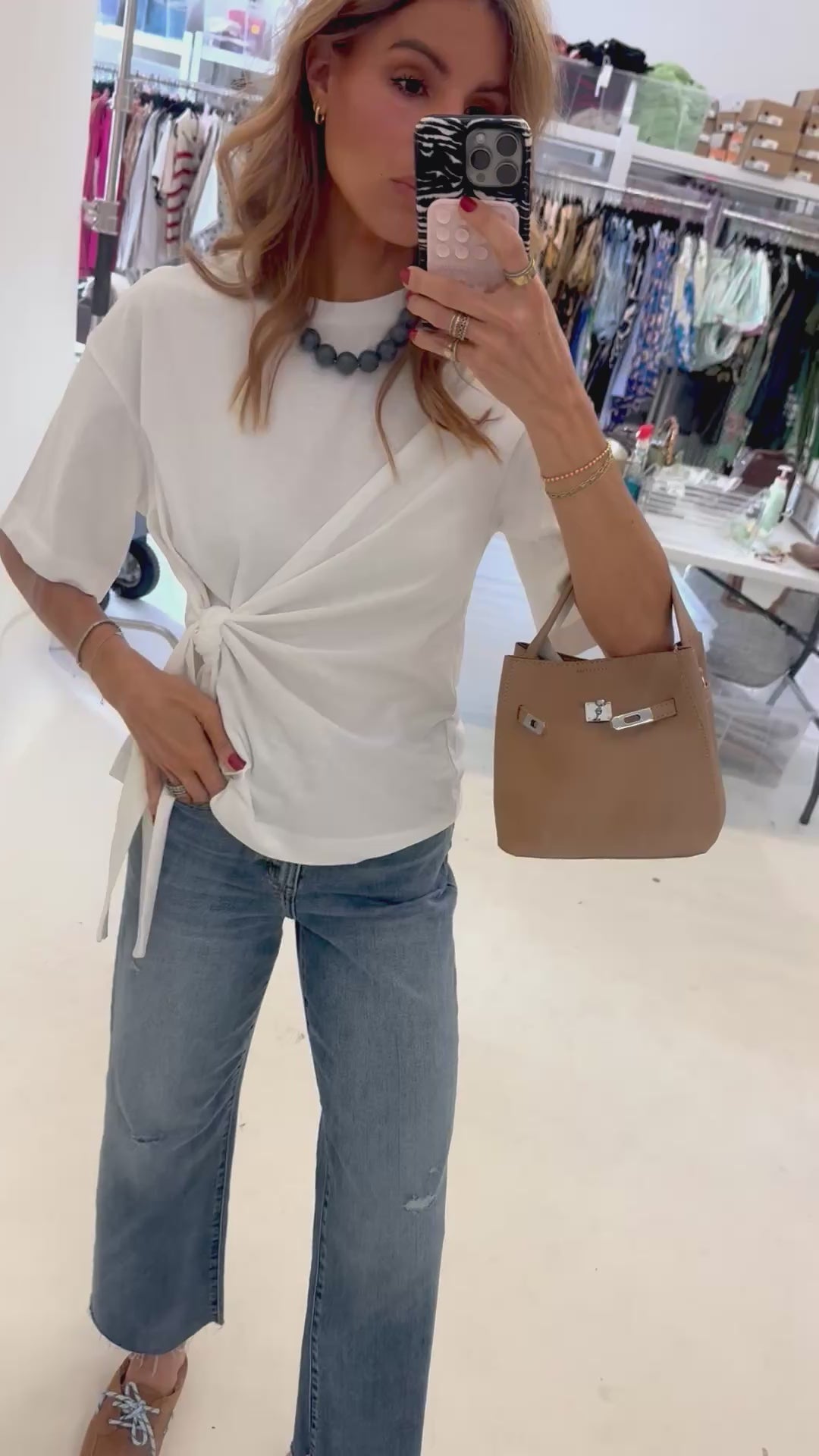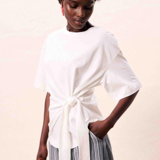 Cotton T-shirt with side tie detail
