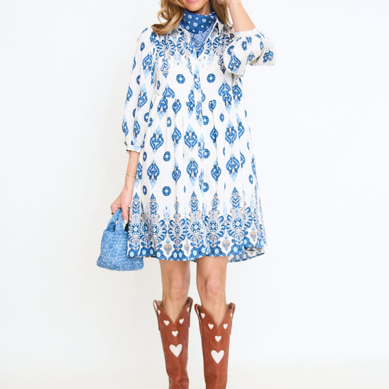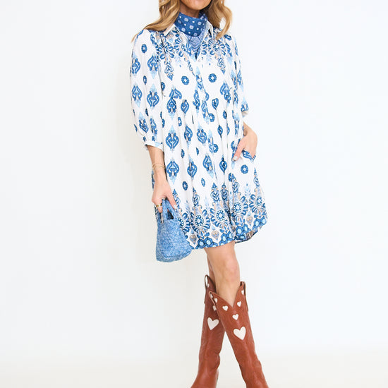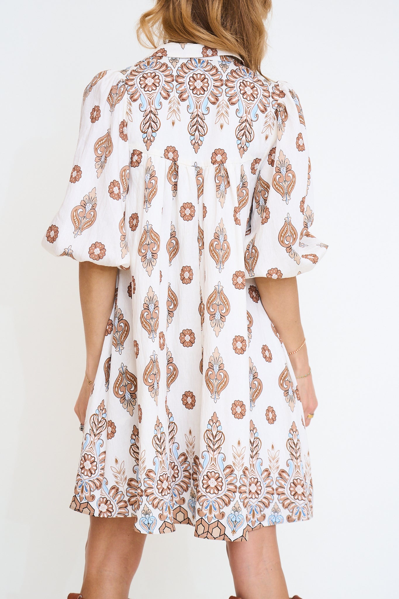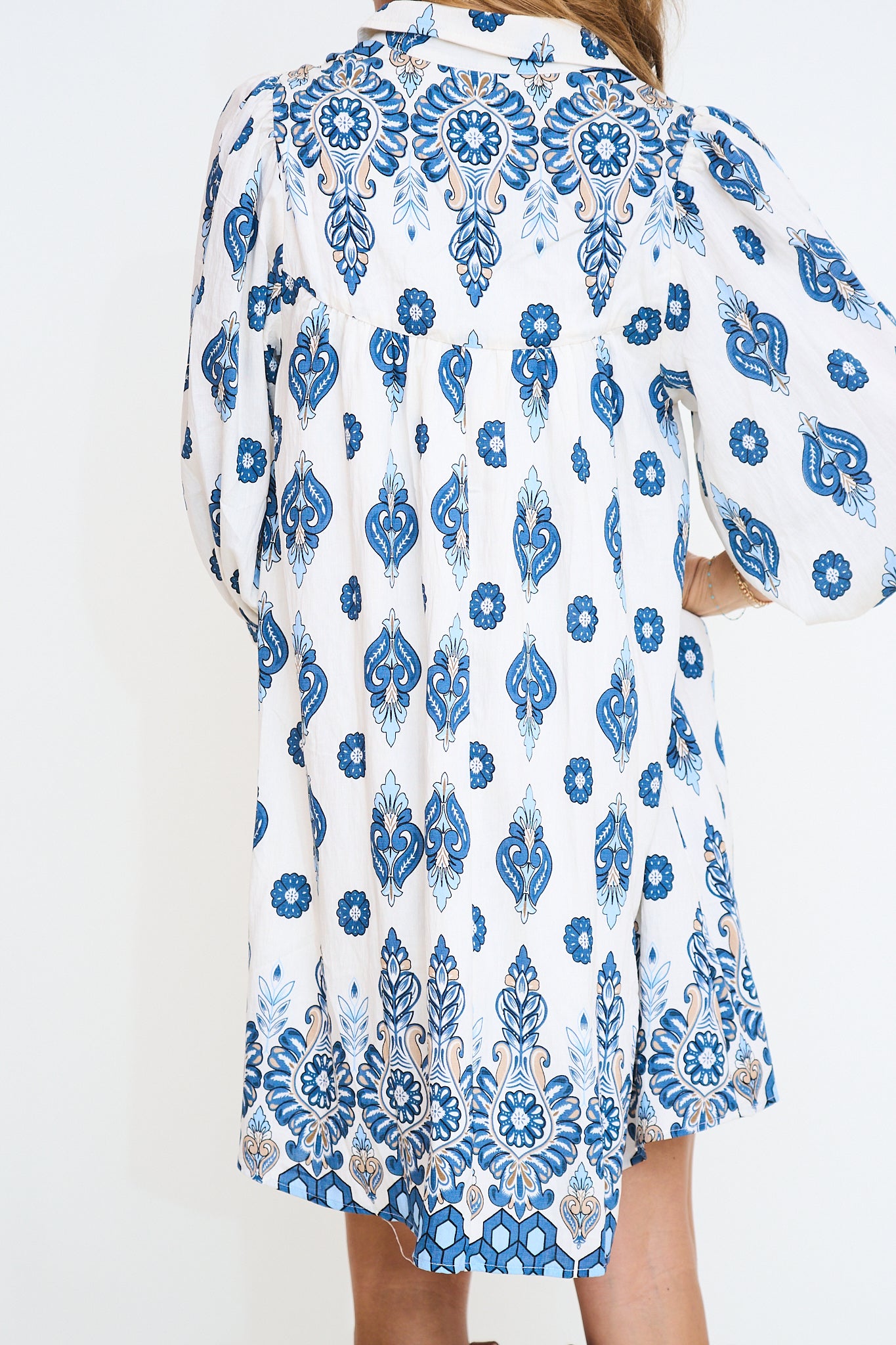 Printed Shirt Dress with 3/4 Length Sleeves.