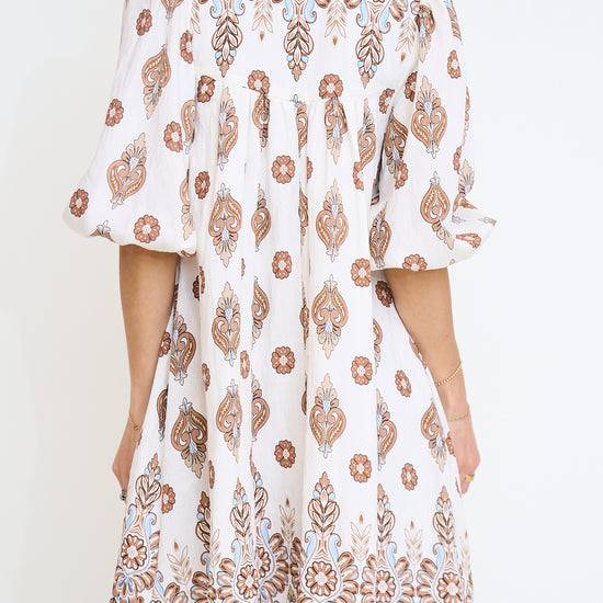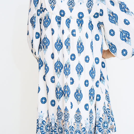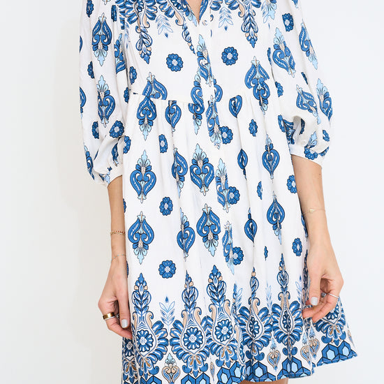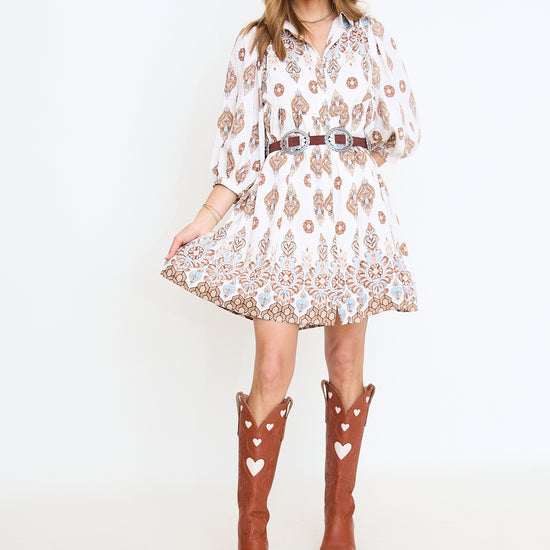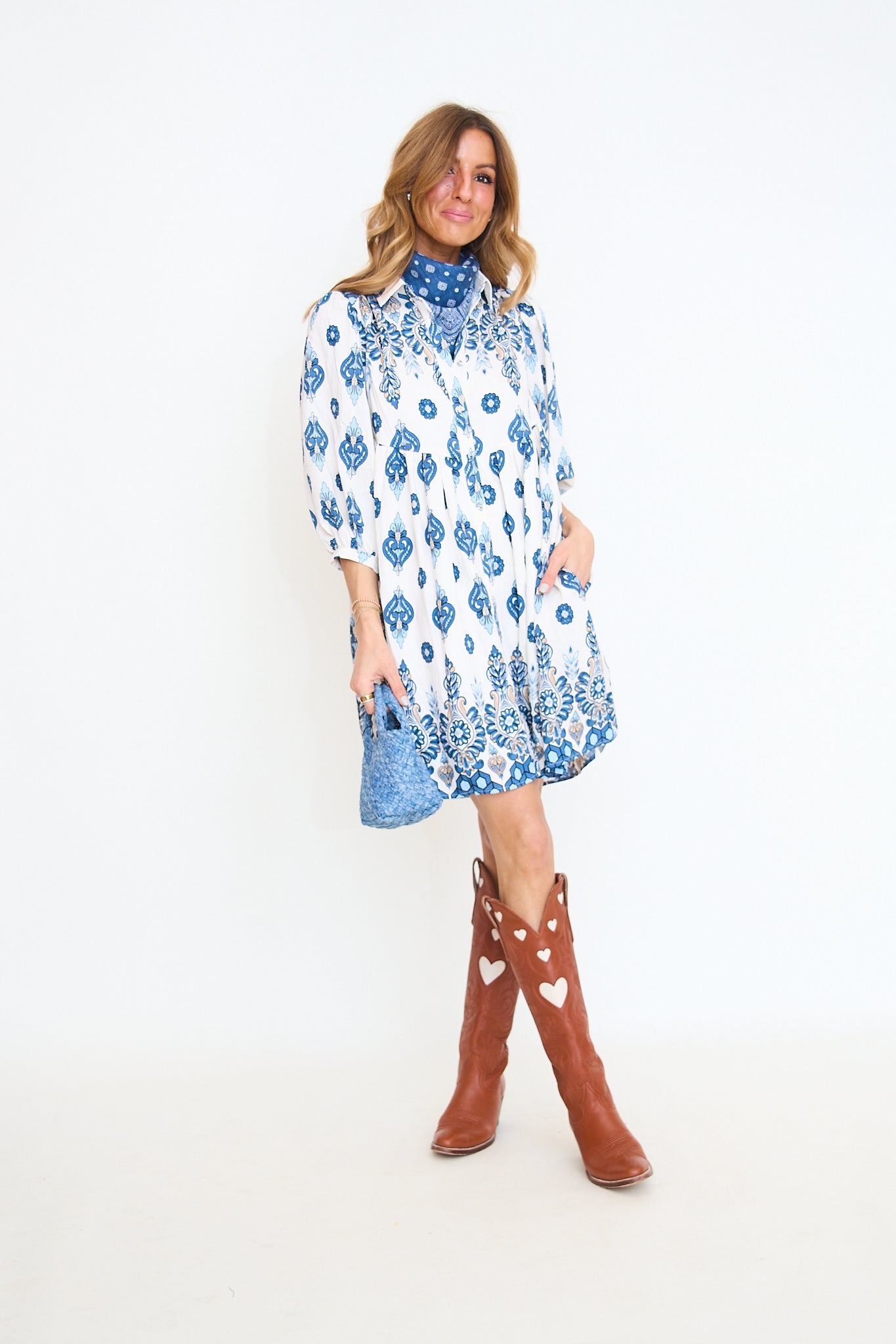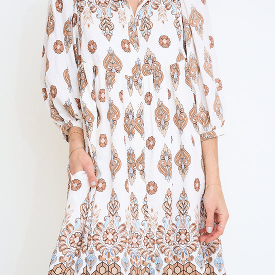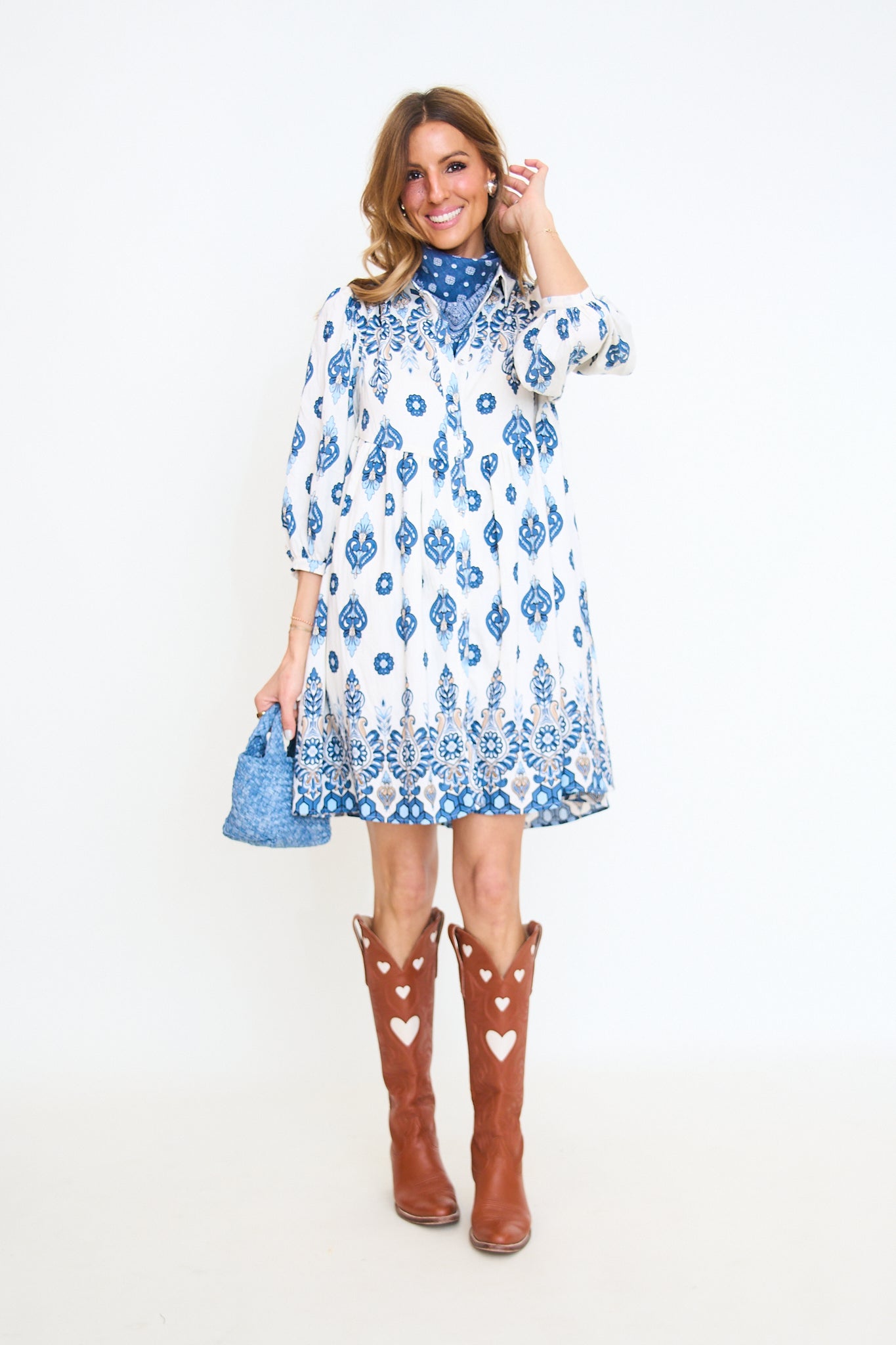 Printed Shirt Dress with 3/4 Length Sleeves.