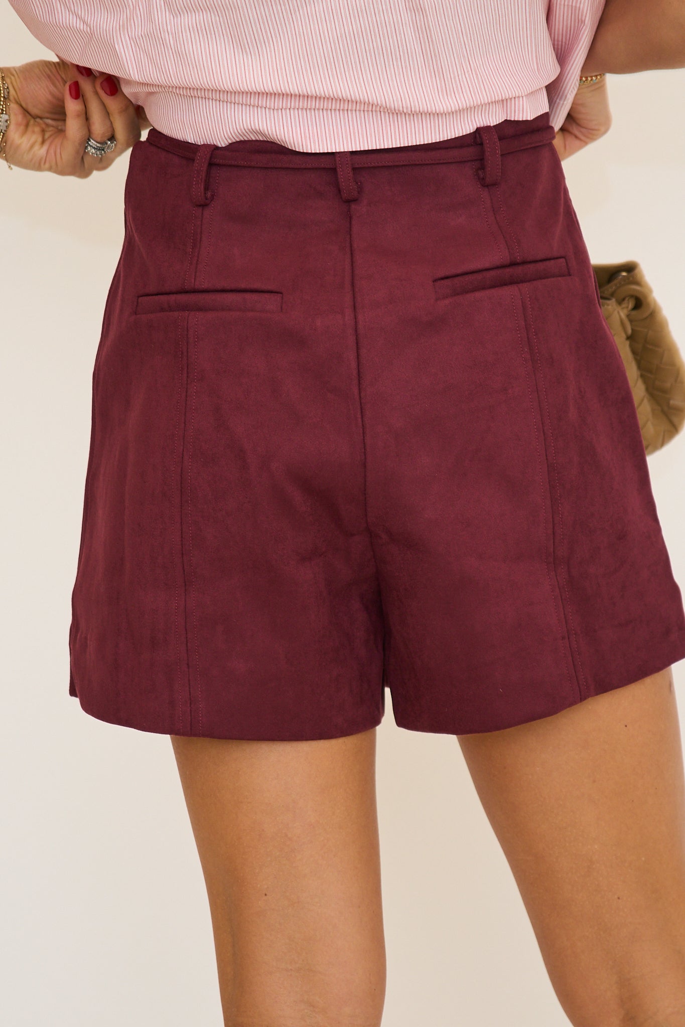 The Ginette Suedette Shorts are crafted from a luxurious suede-like fabric that offers a smooth, elegant finish. Designed with a concealed zip and button closure, these shorts provide a clean and polished look. The tie waist adds a flattering touch, while the functional pockets combine style and practicality for a chic silhouette. Perfect for elevating your wardrobe with understated sophistication.