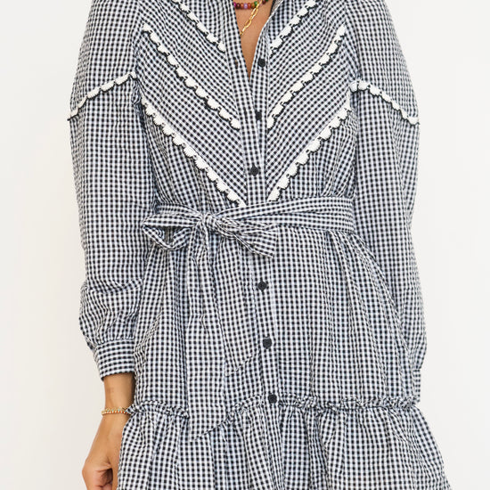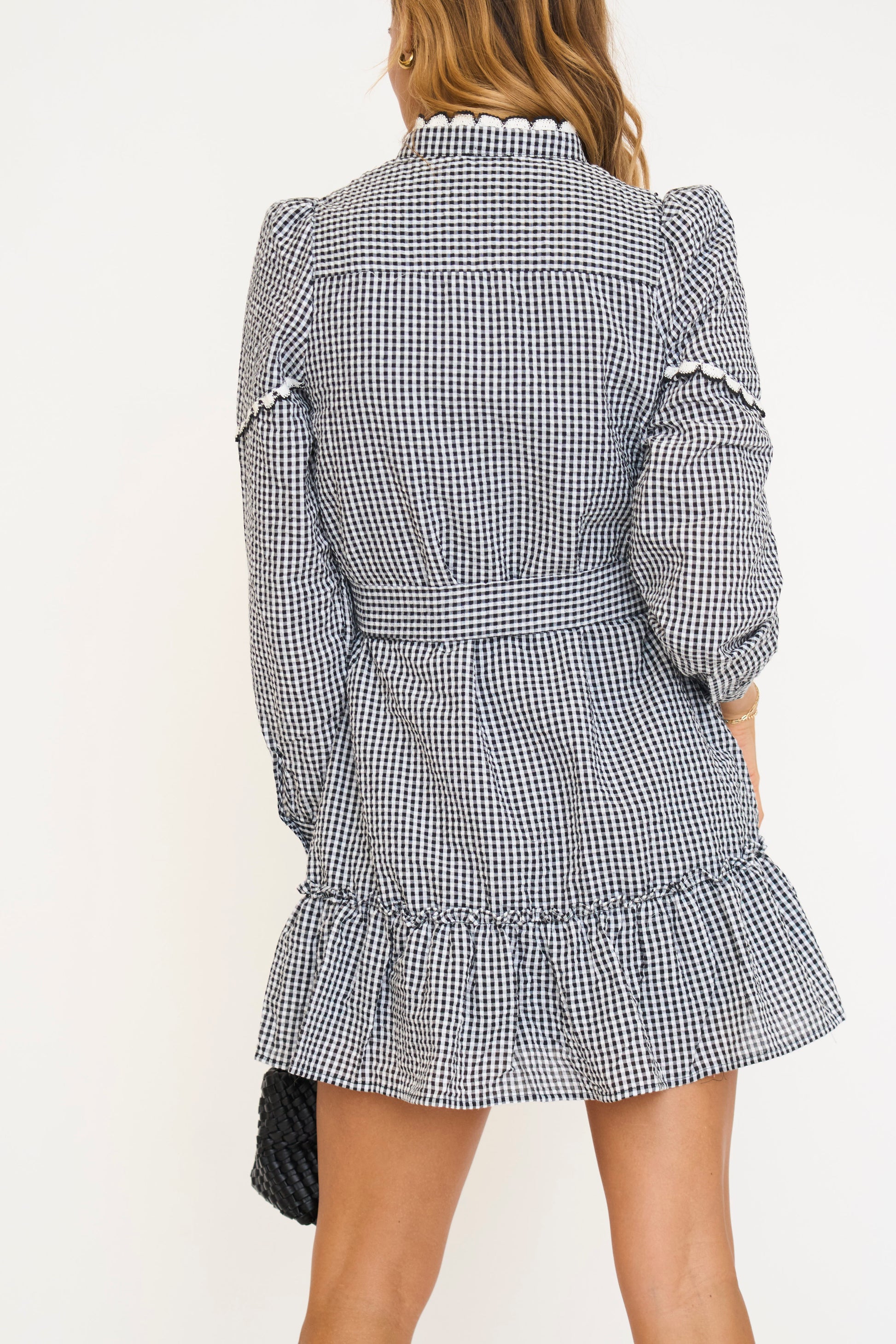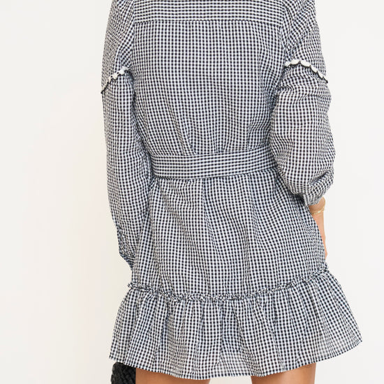 Gingham Ruffle Detail Contrast Trim Mini Dress