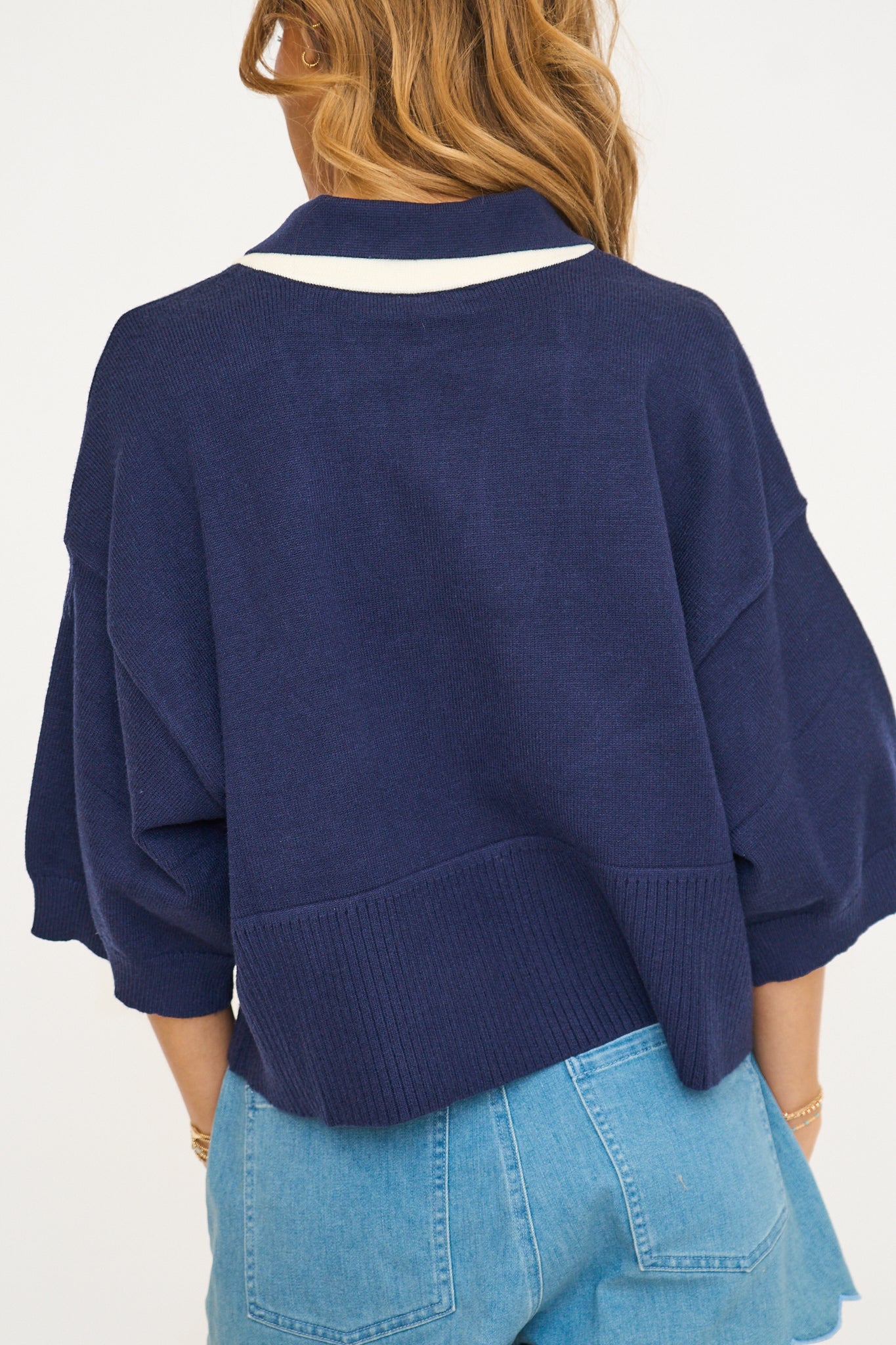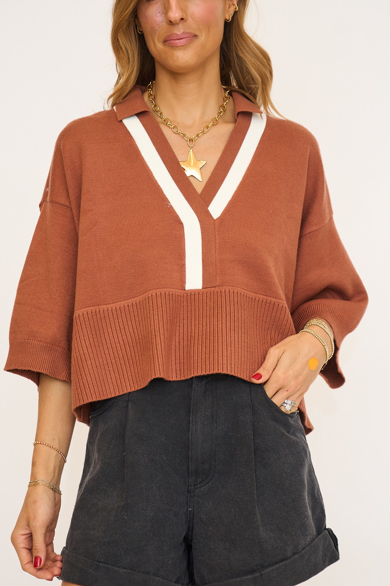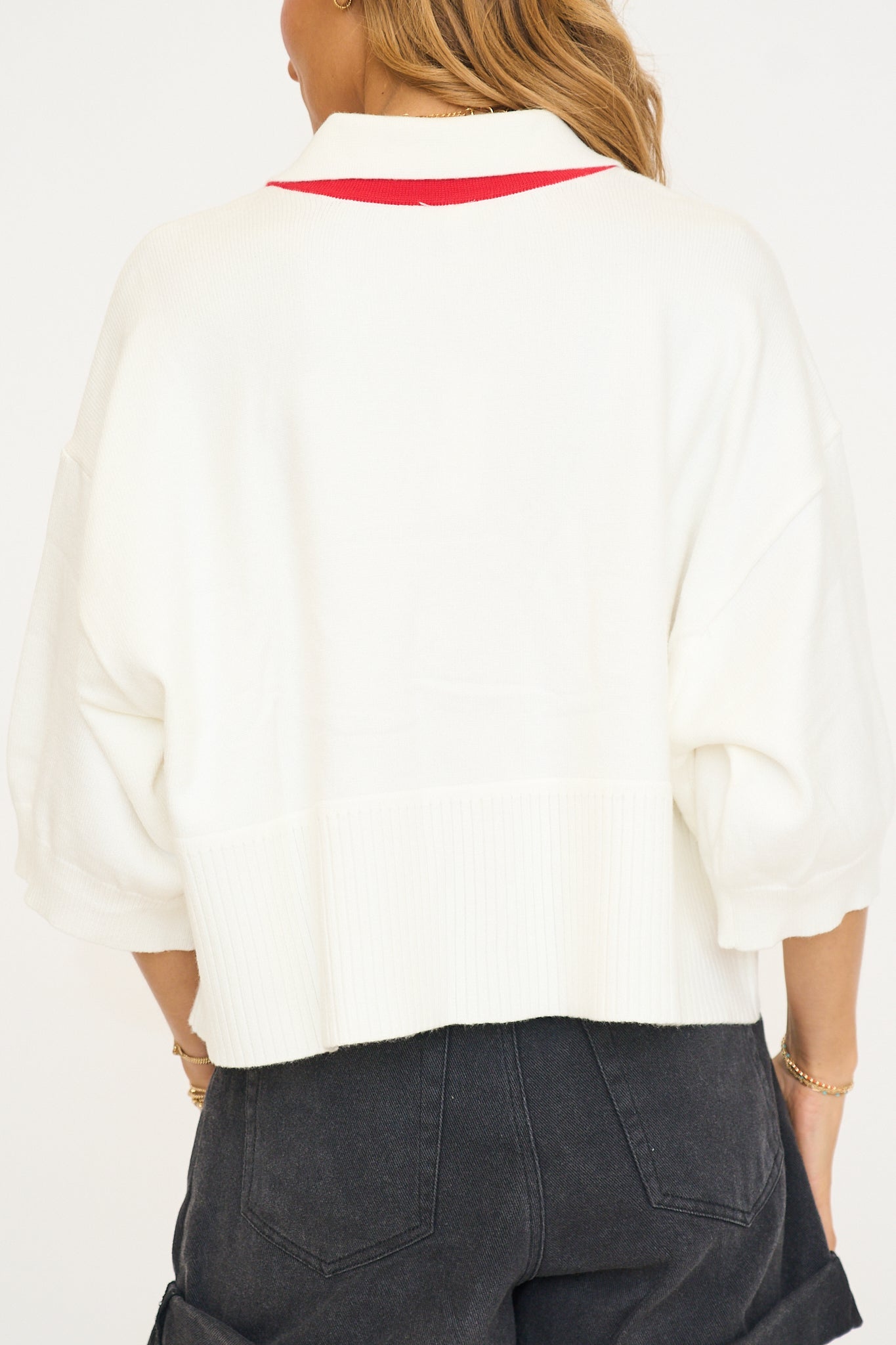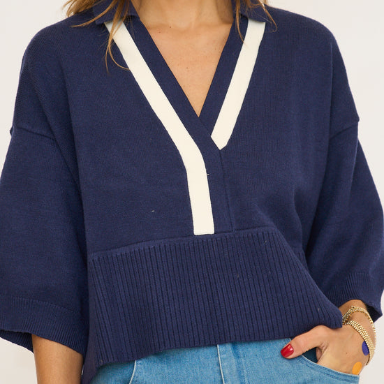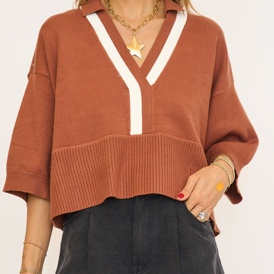 Boxy/oversized sweater with contrast stripe and collared neckline