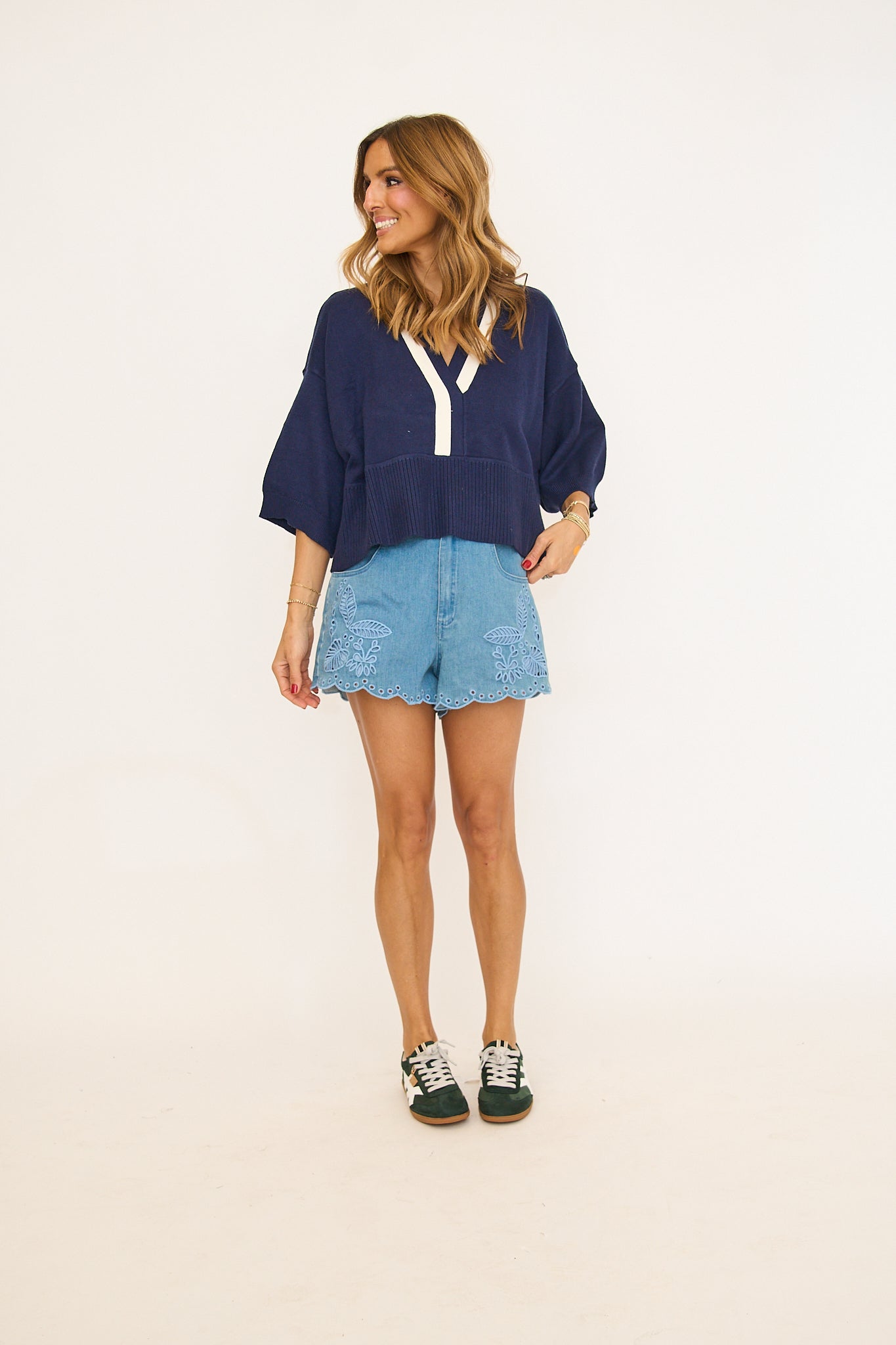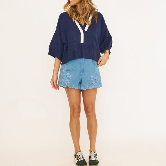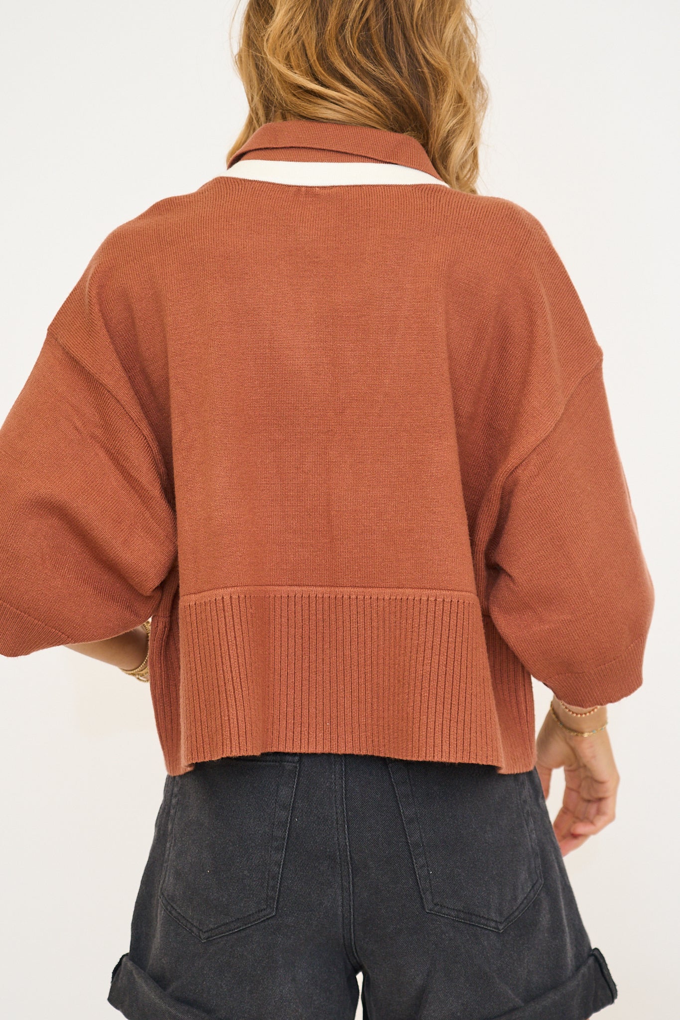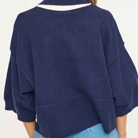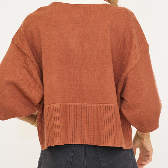 Boxy/oversized sweater with contrast stripe and collared neckline