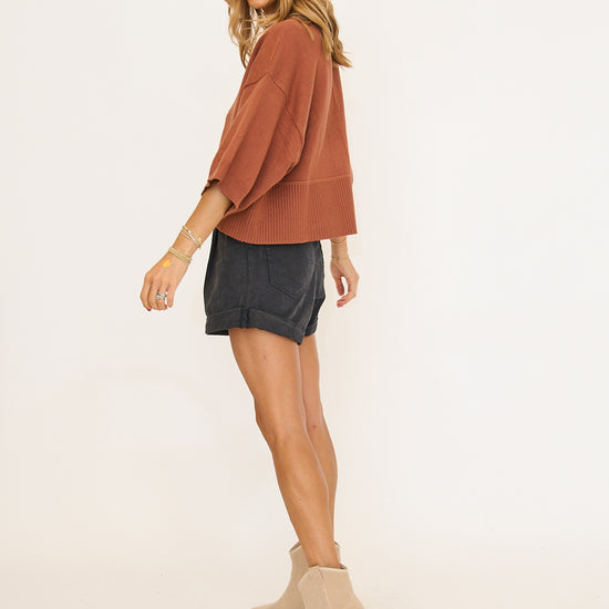 Runs oversized, size down if in between. Rachel is 5'8" wearing her true size small.