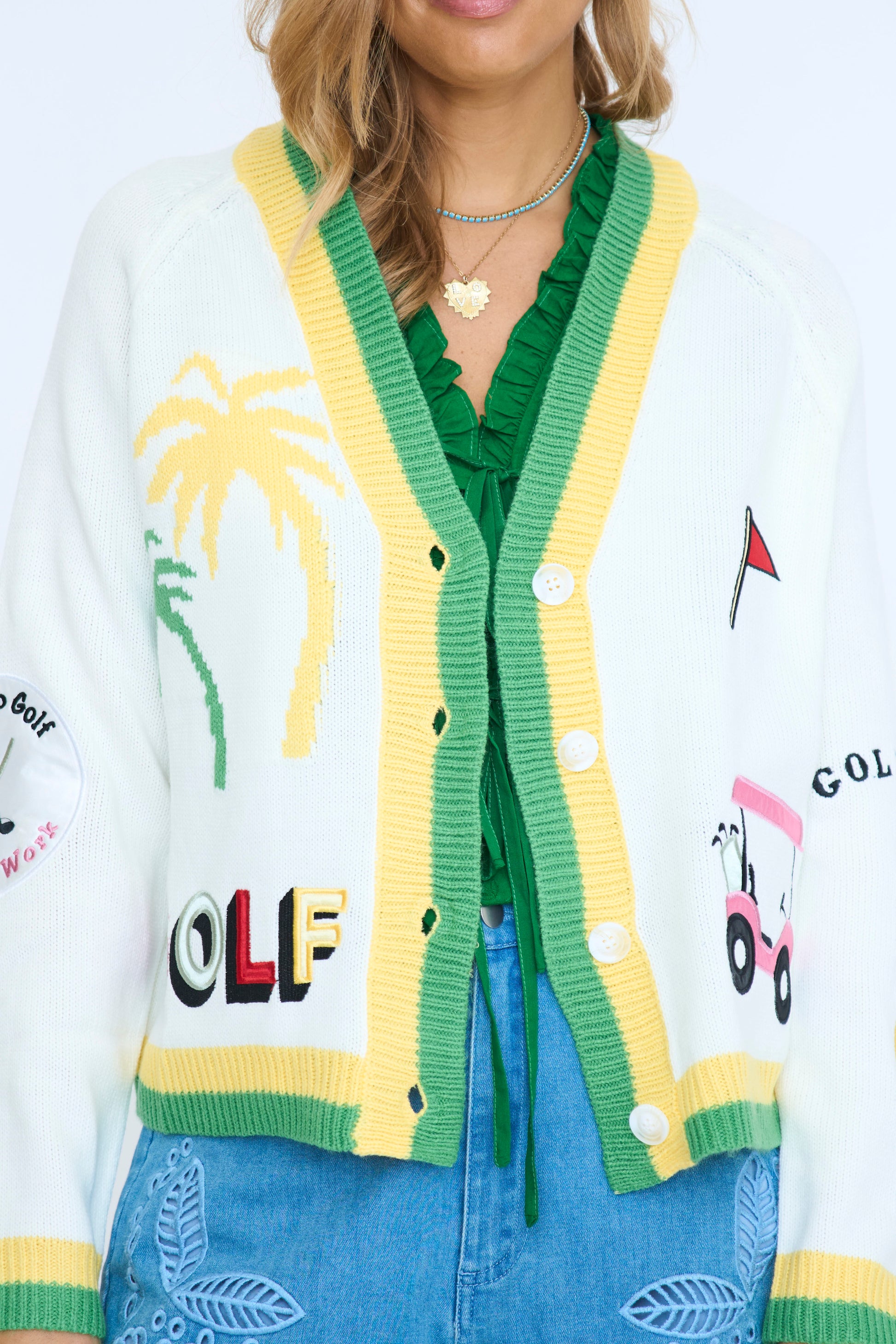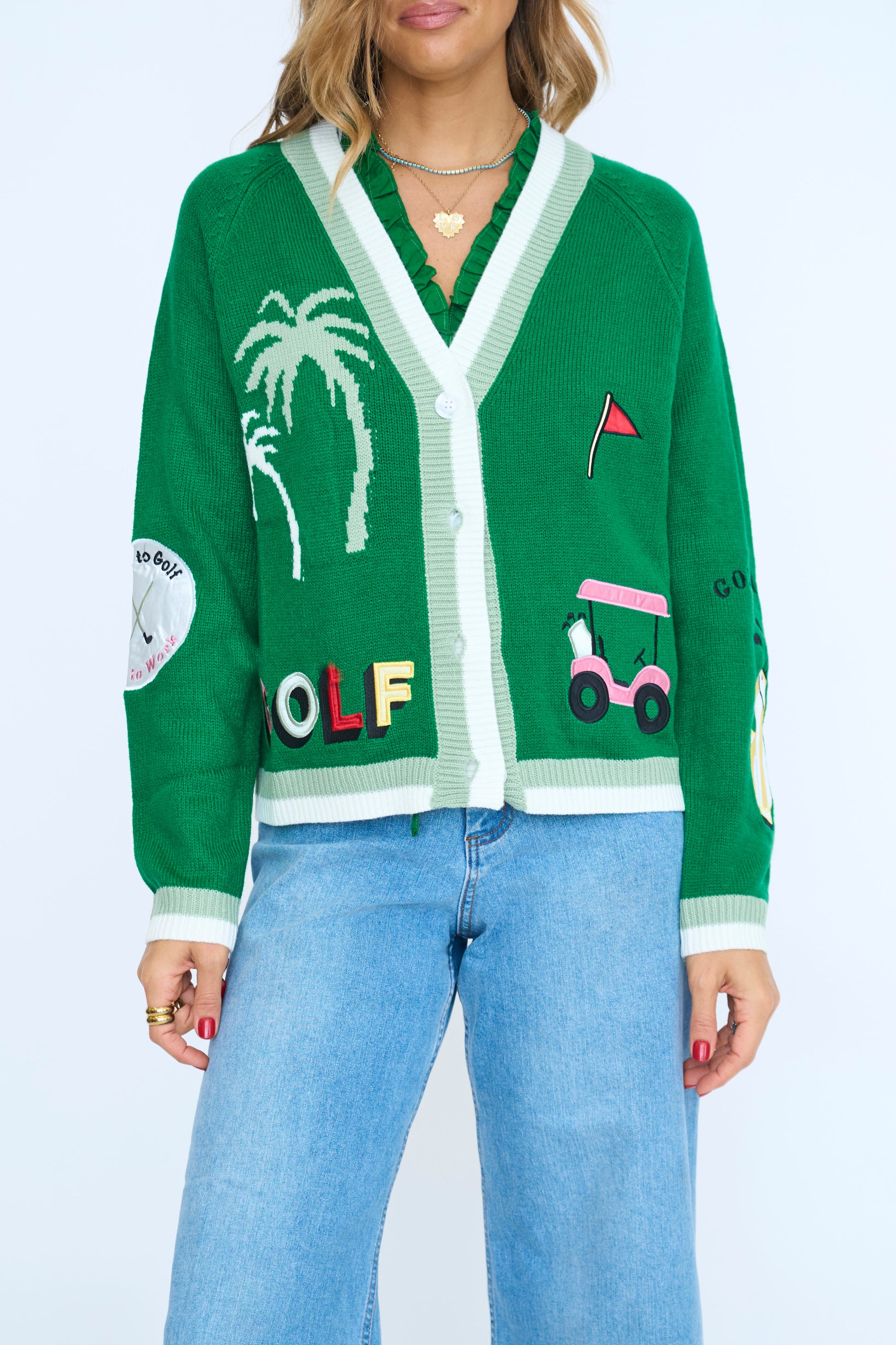 Golf Embroidered Patch Cardigan