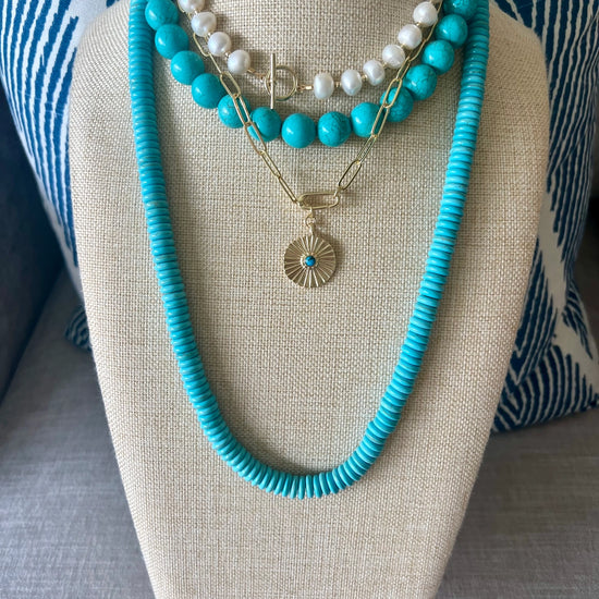 14 mm turquoise Howlite disk beads are perfect for layering.