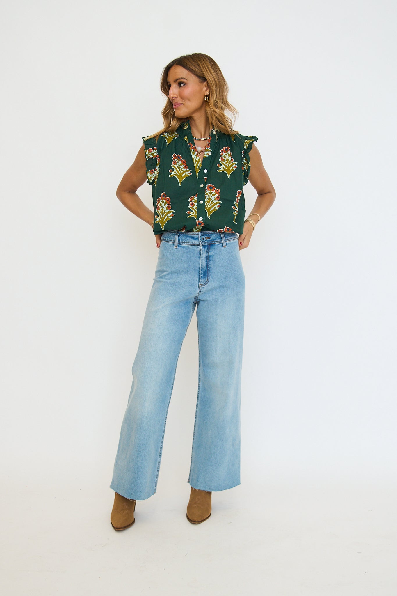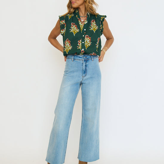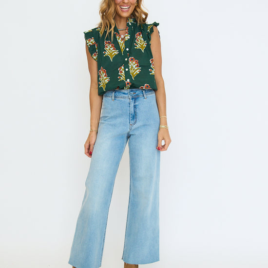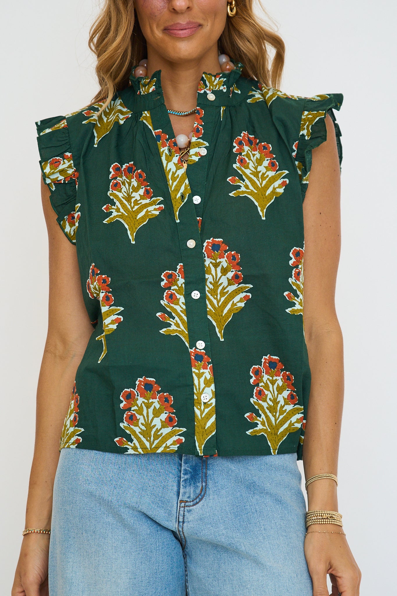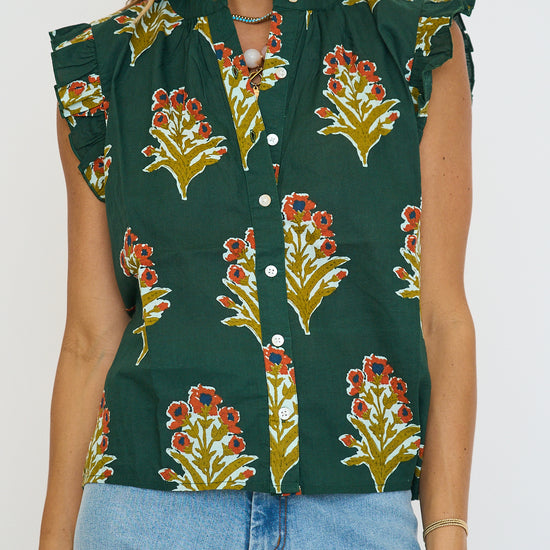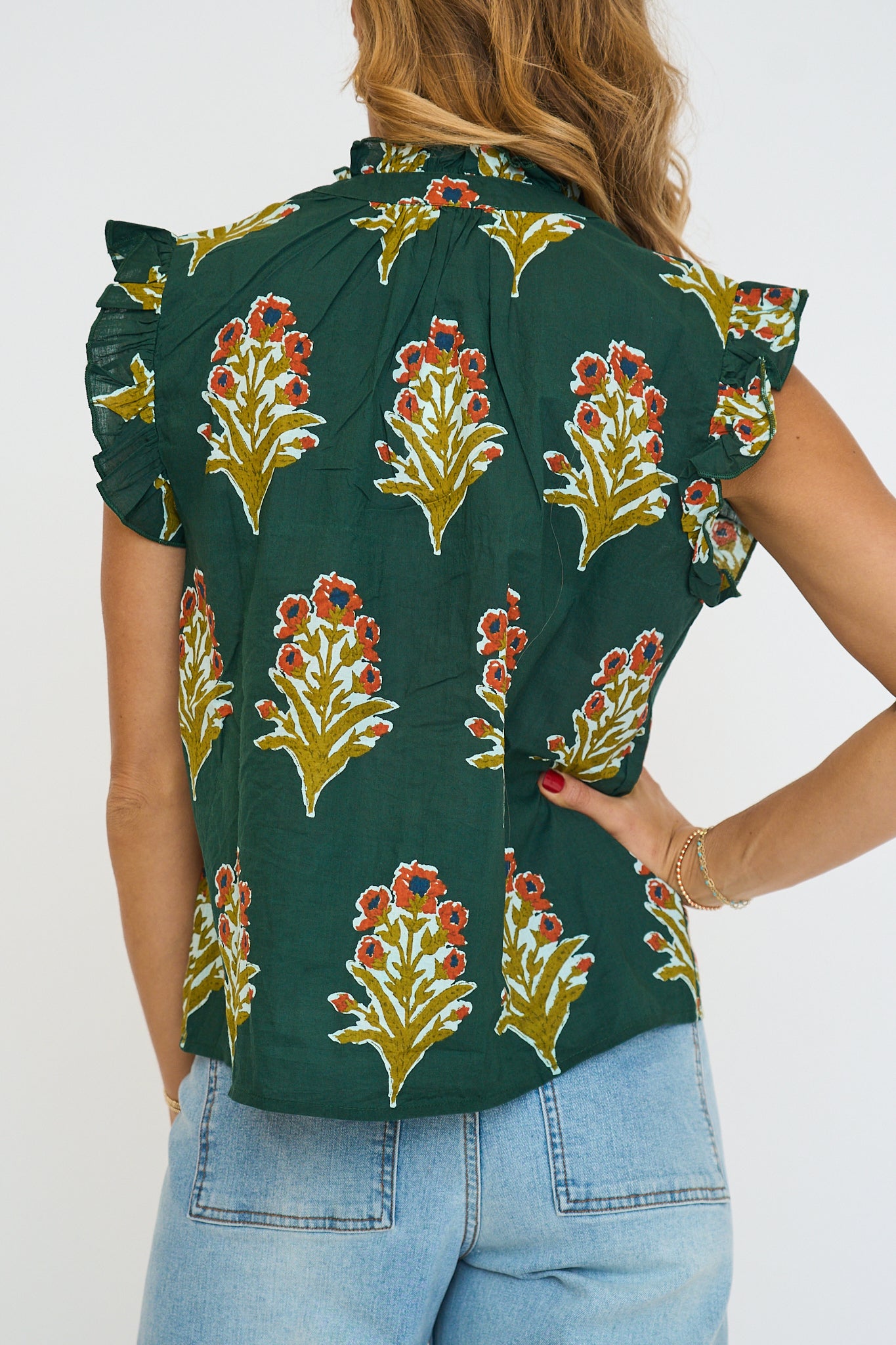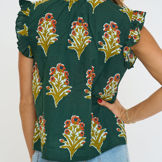 Elevate your wardrobe with this sophisticated flutter sleeve top featuring delicate ruffle sleeves and a double front tie that adds a refined touch. Crafted in a relaxed fit with a vibrant floral print, it offers effortless comfort while showcasing a colorful, elegant design perfect for any occasion.
