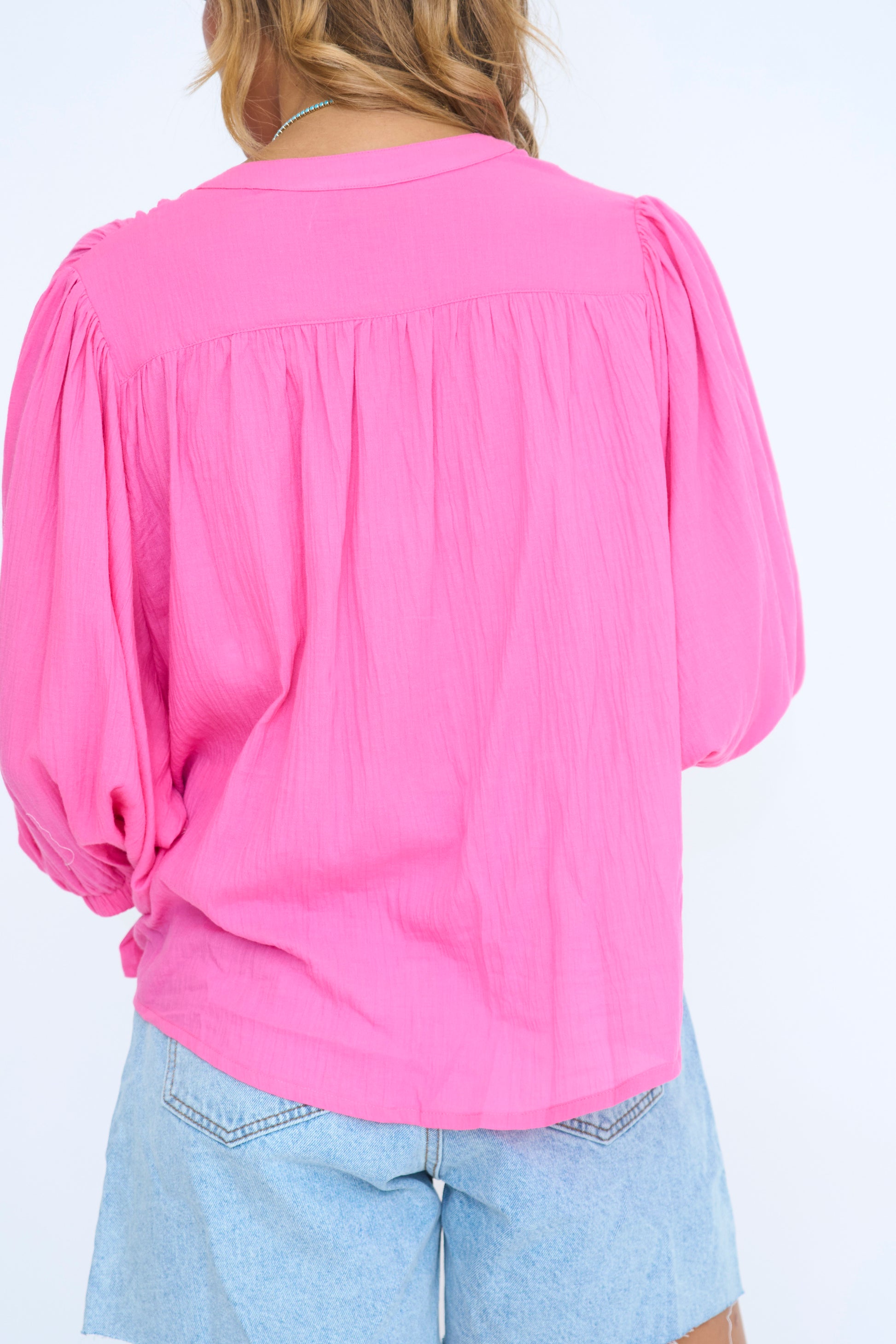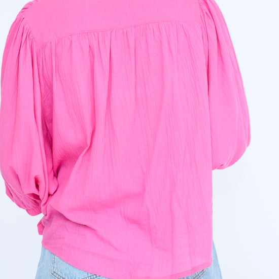 COTTON BUTTON-UP PEASANT BLOUSE