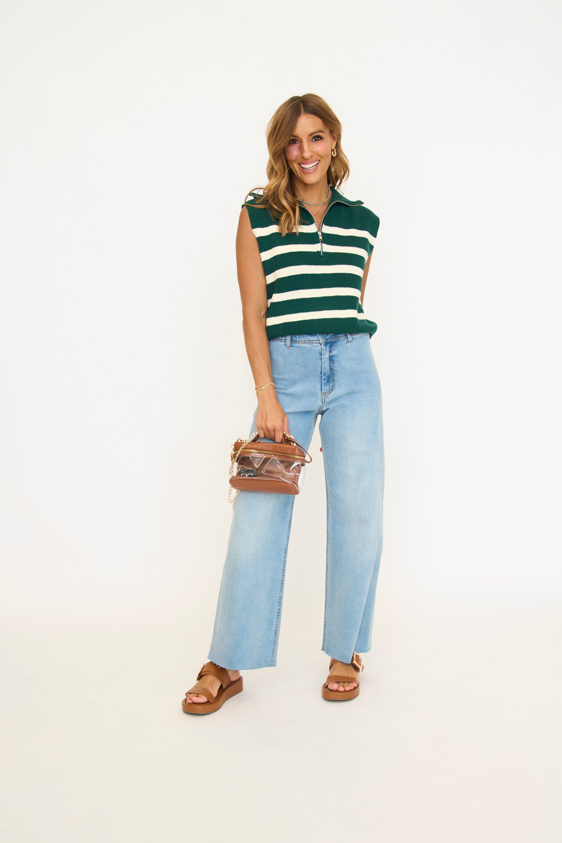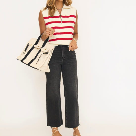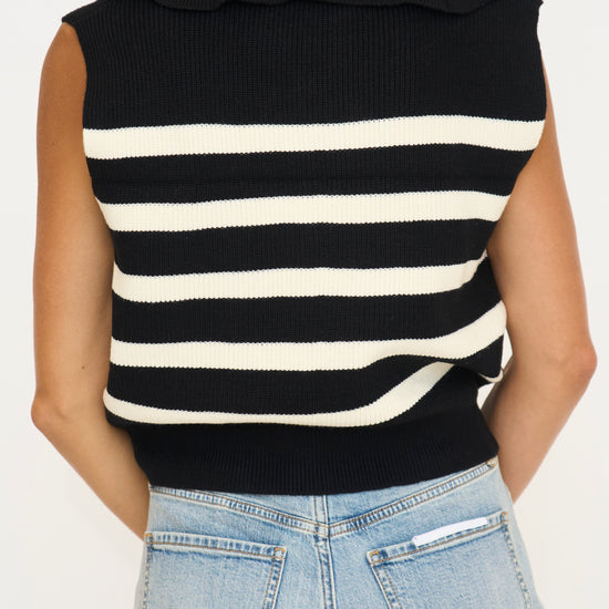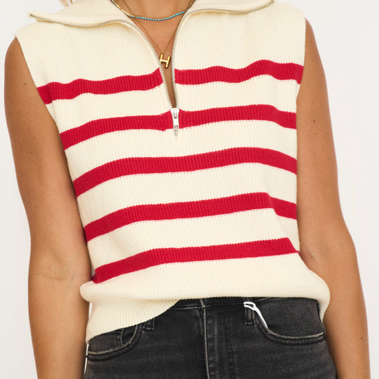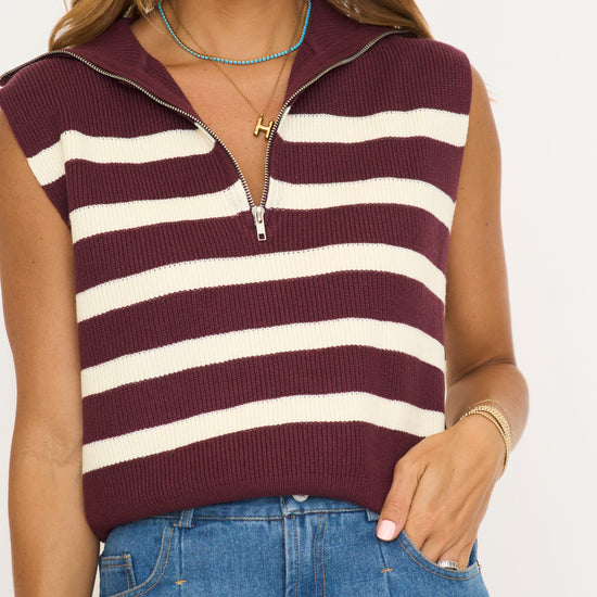 Striped Knit Half Zip Sweater Vest