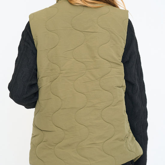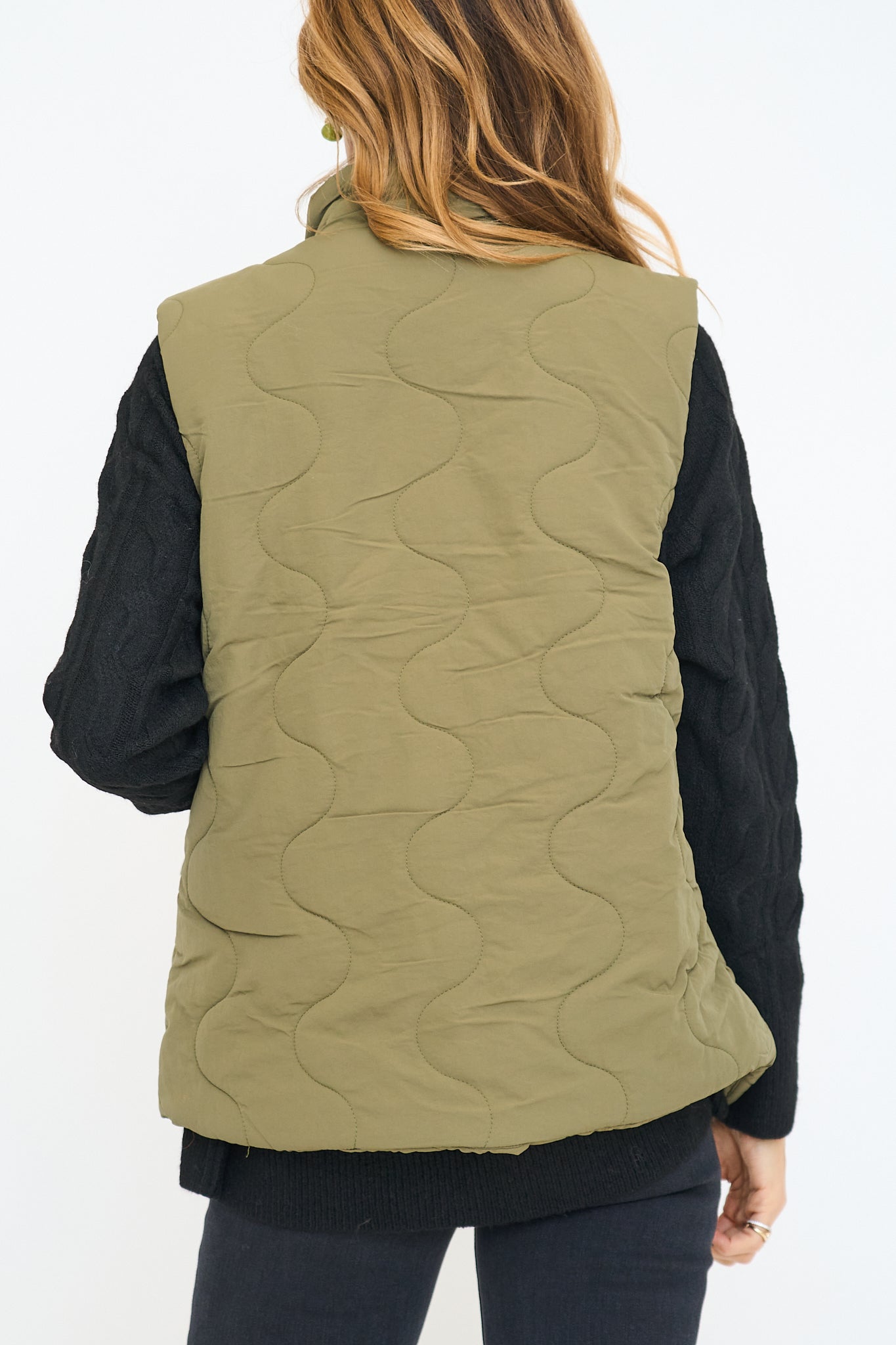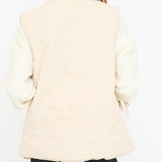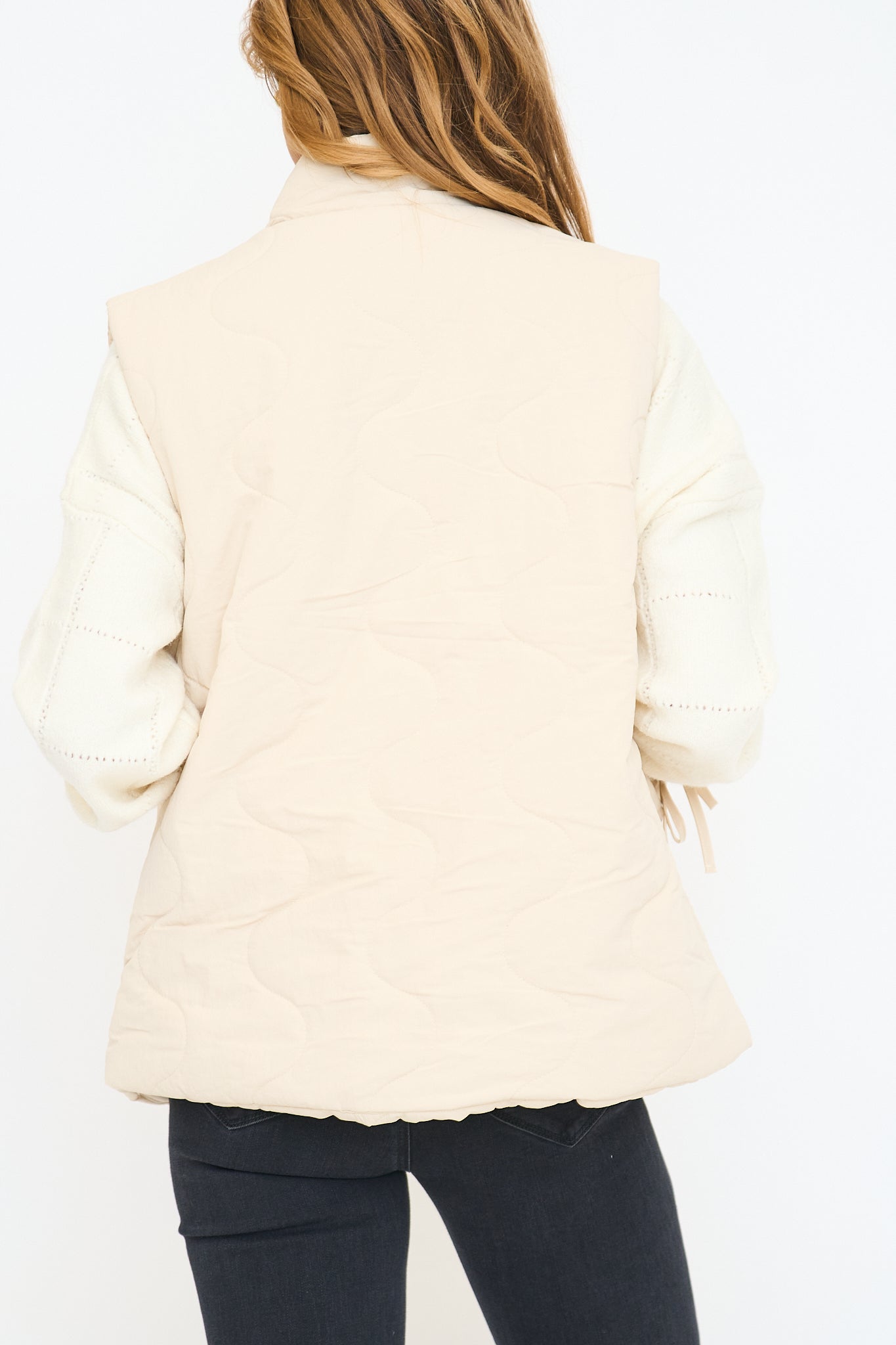 Wave Quilted Ribbon Tie Detailed Puffer Vest