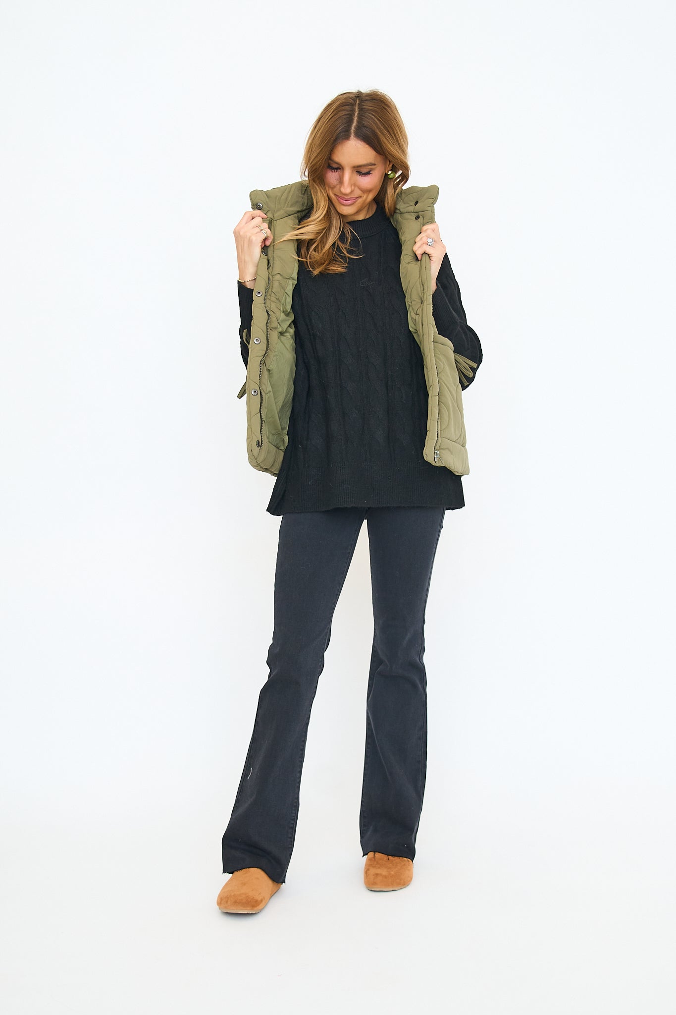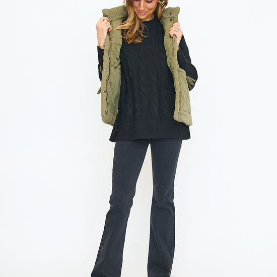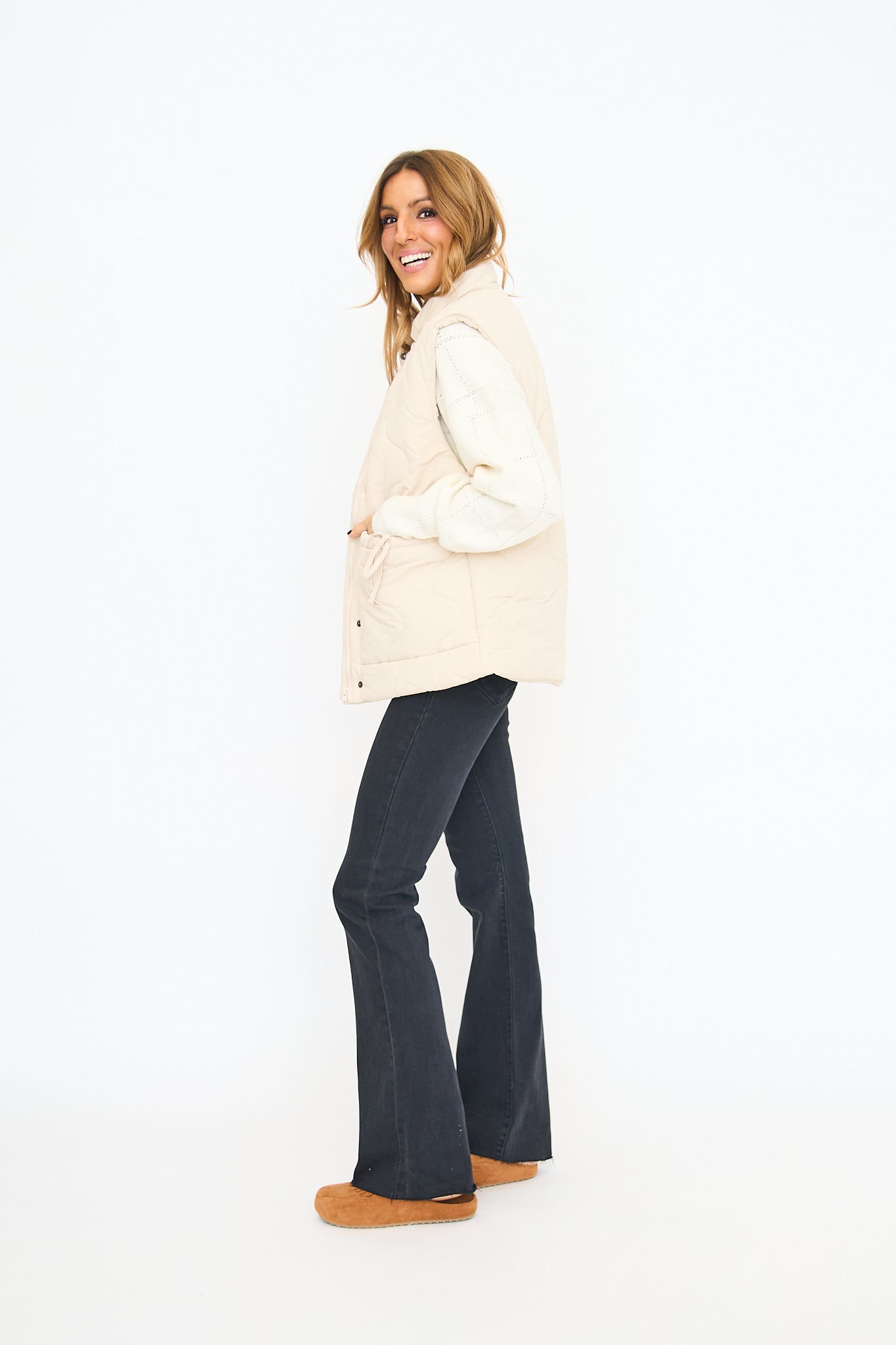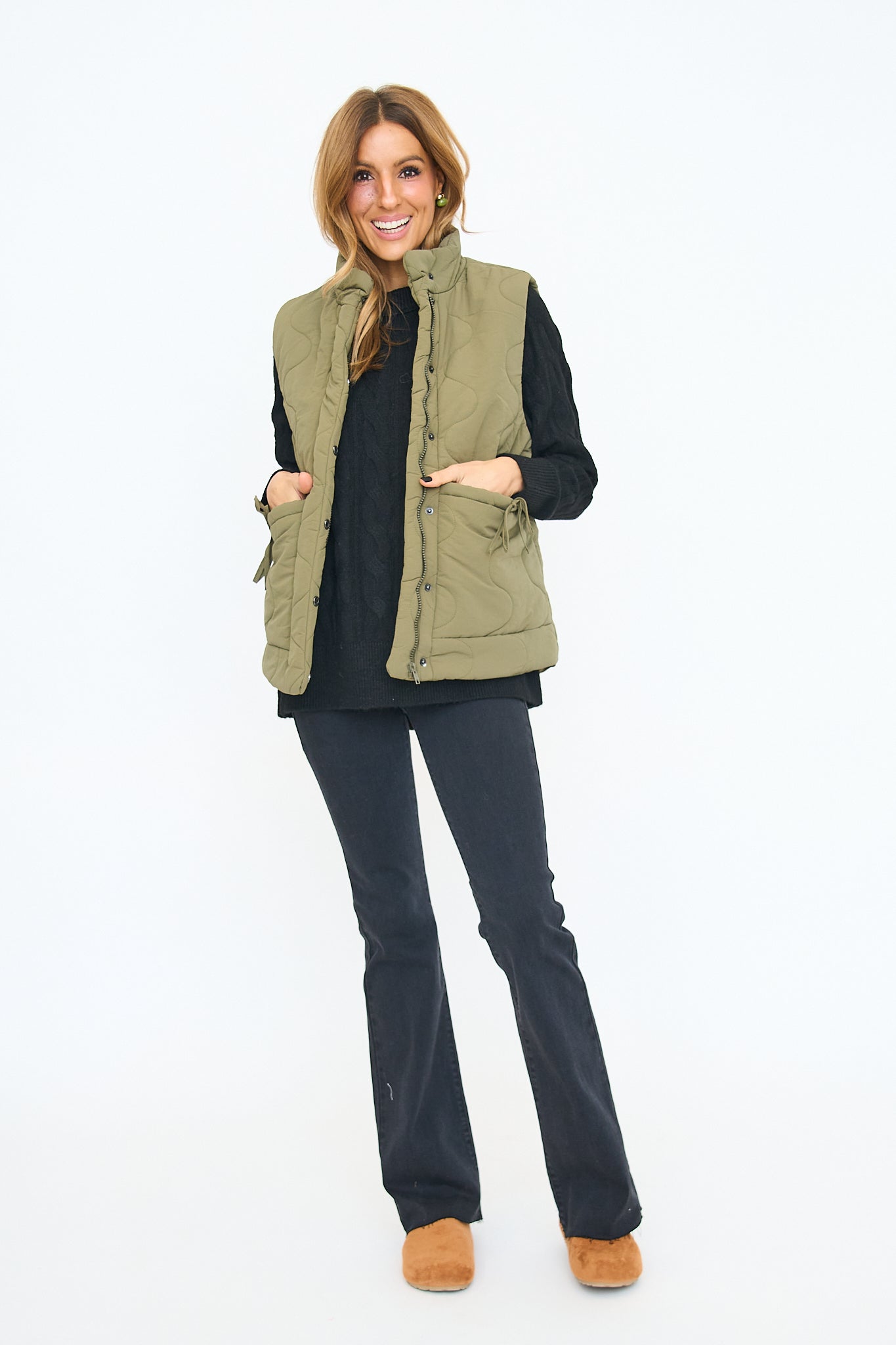 Wave Quilted Ribbon Tie Detailed Puffer Vest