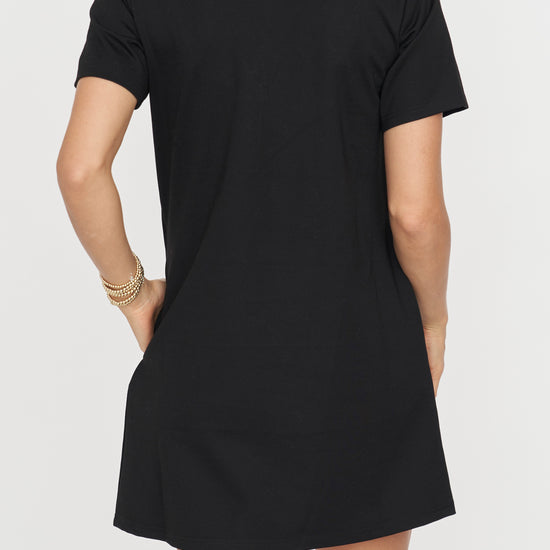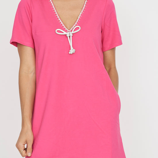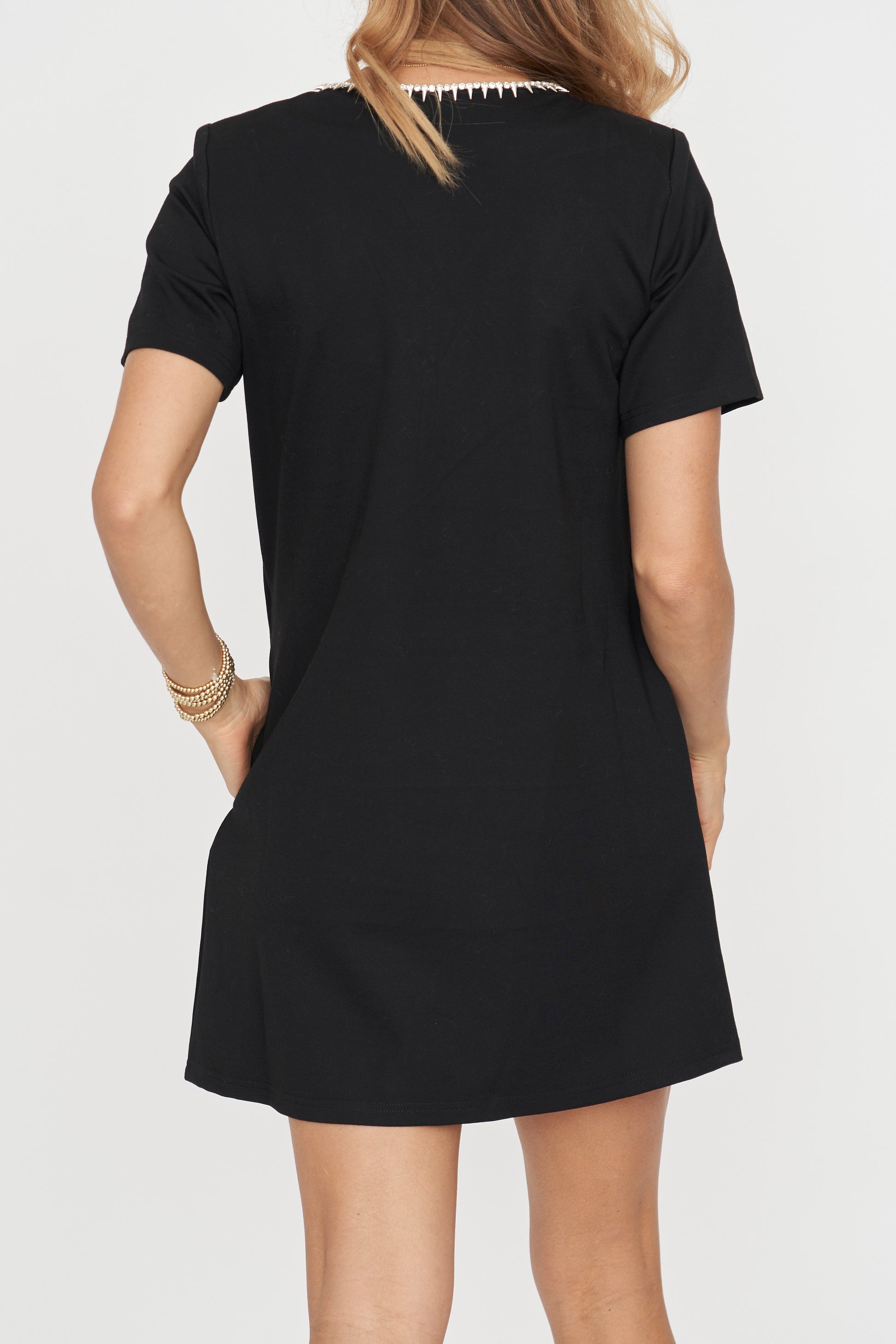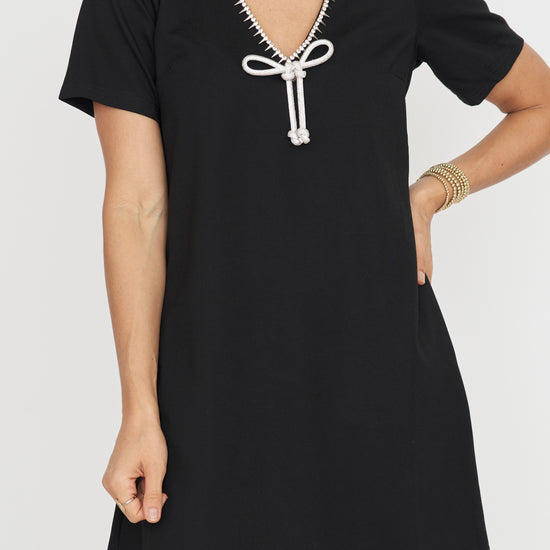 Crystal Bow And Crystal Trim V Neck Short Sleeve Mini Dress