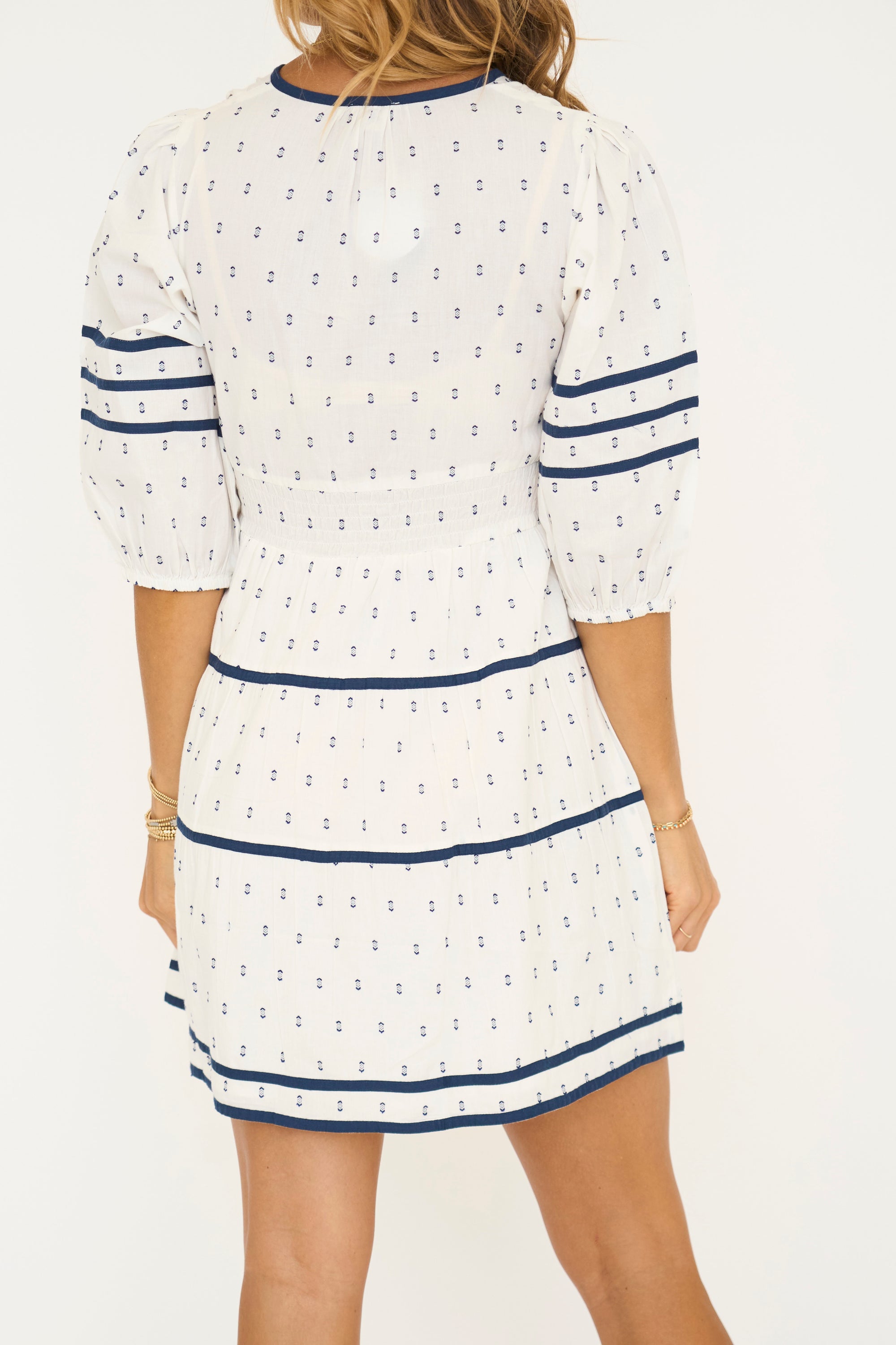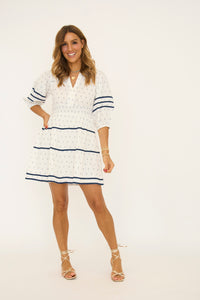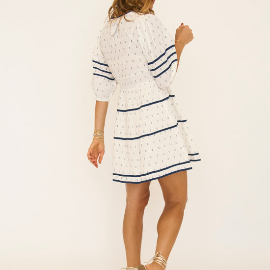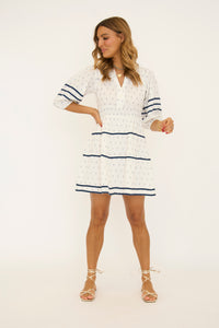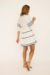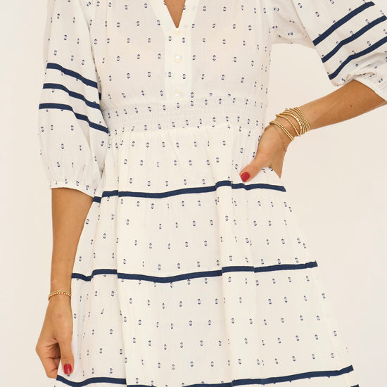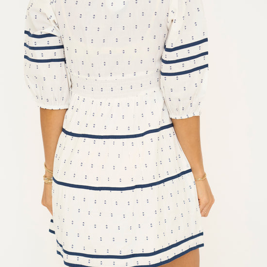 Ivory and Navy 3/4 Sleeve Mini Dress