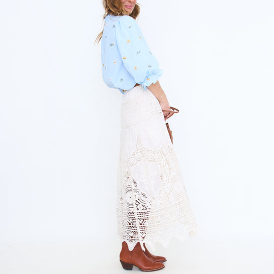 Scallop Hem Detail Embroidered Top