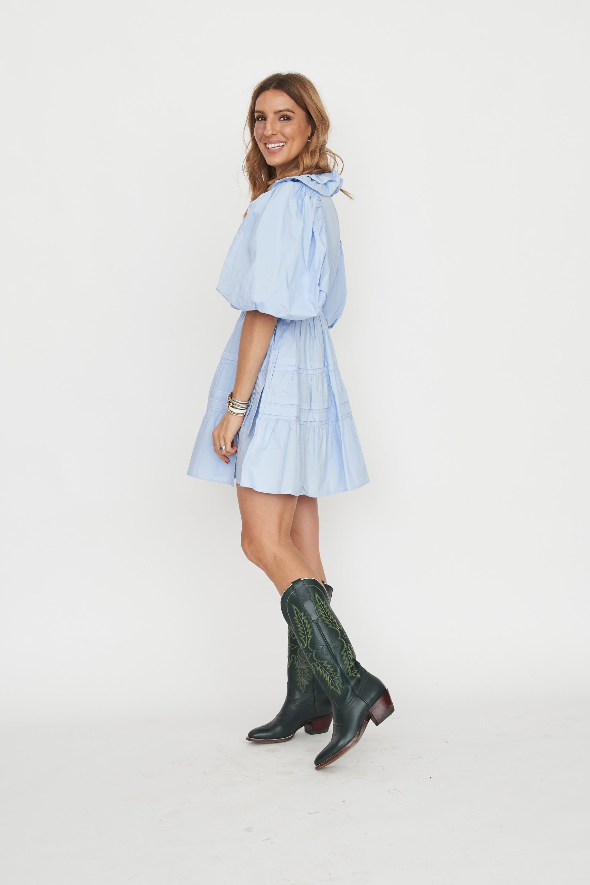 "Get ready to puff up your style game with THE JOSEFINE DRESS. This playful poplin dress features trendy puff sleeves and an adjustable waist tie, ensuring you'll always have the perfect fit. Dress it up with a heel for a spring wedding, or down with a sneaker for a girls brunch.