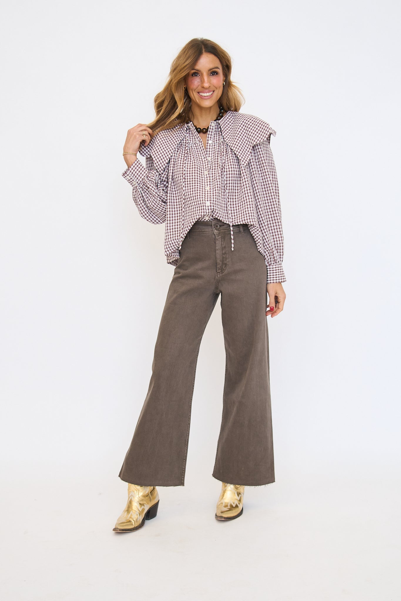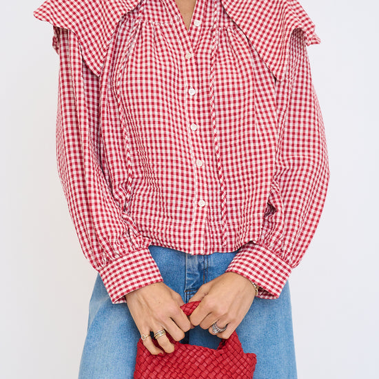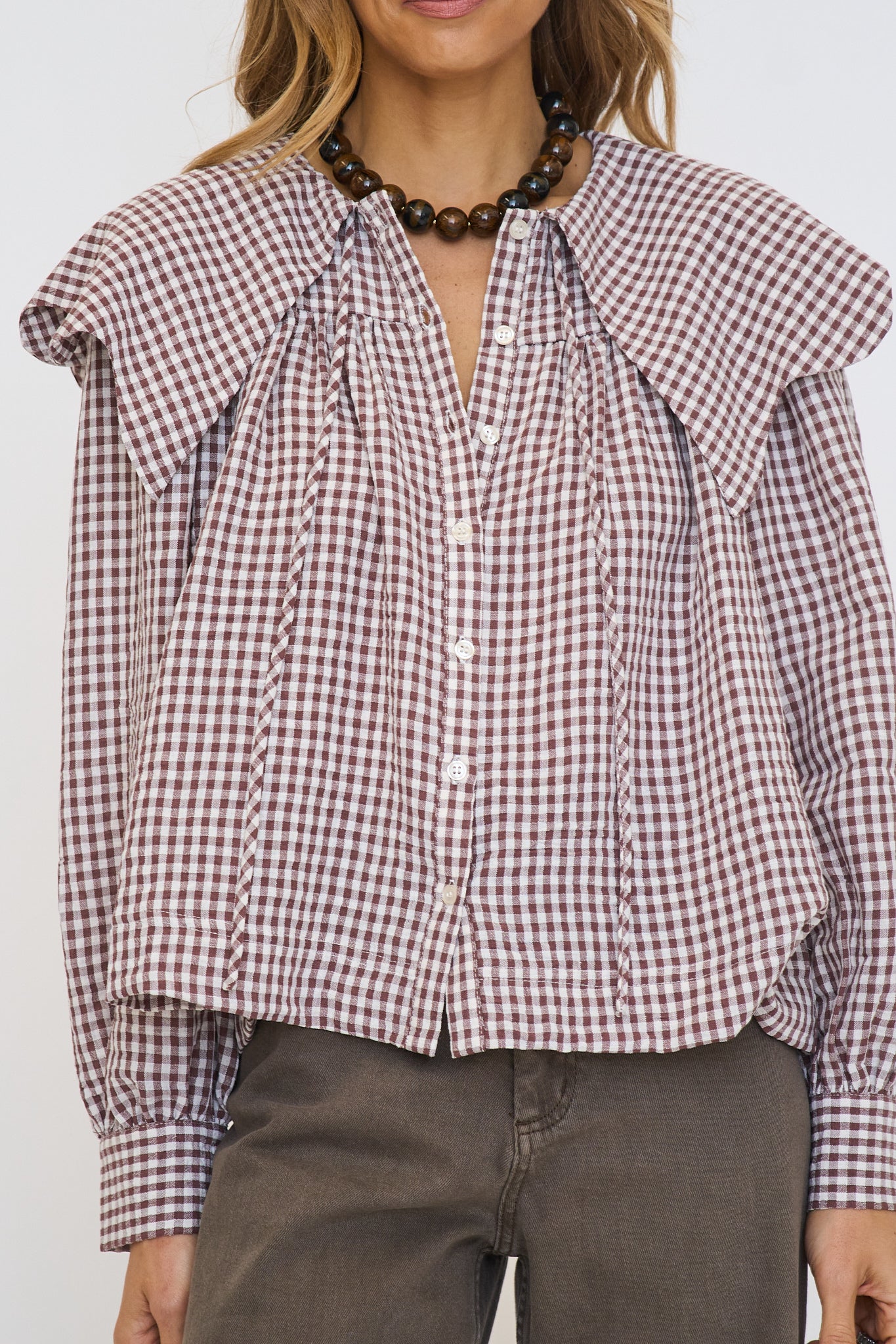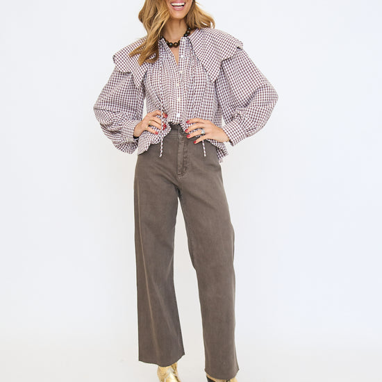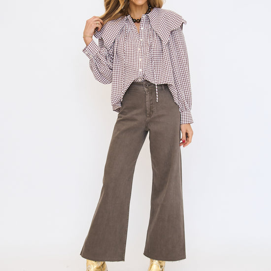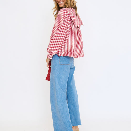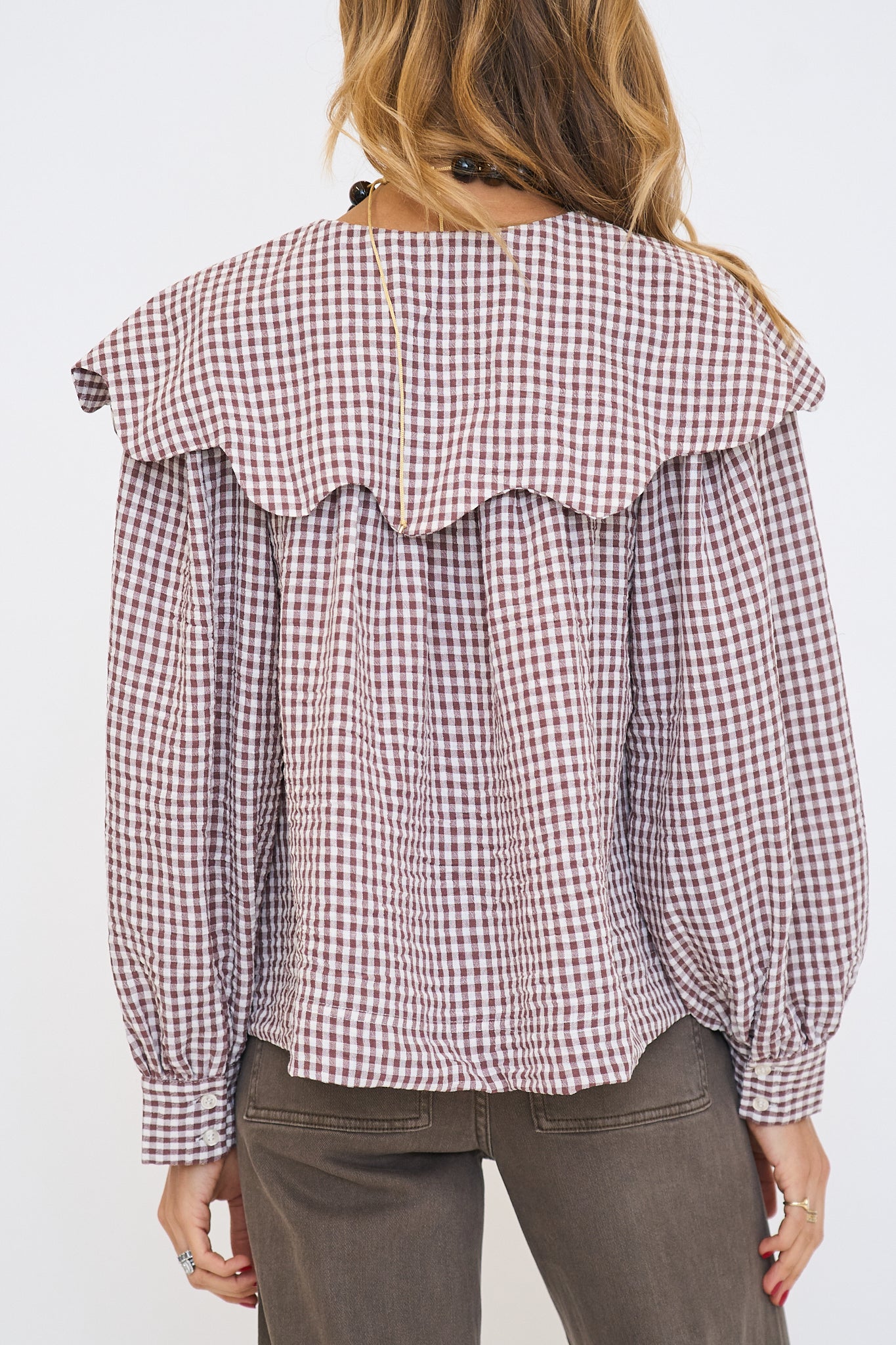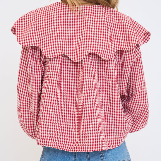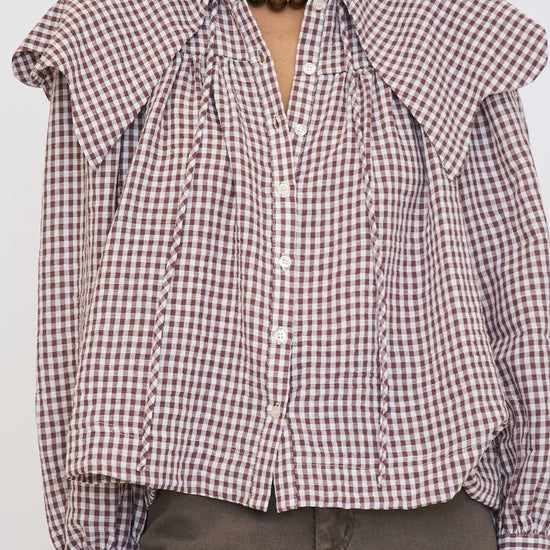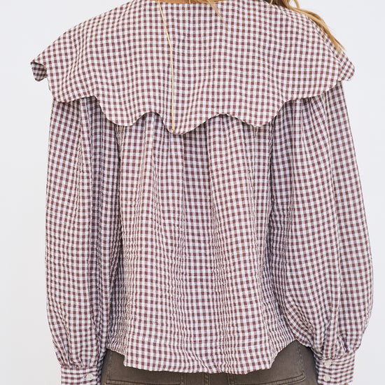 Gingham Poplin Peter Pan Collar Top