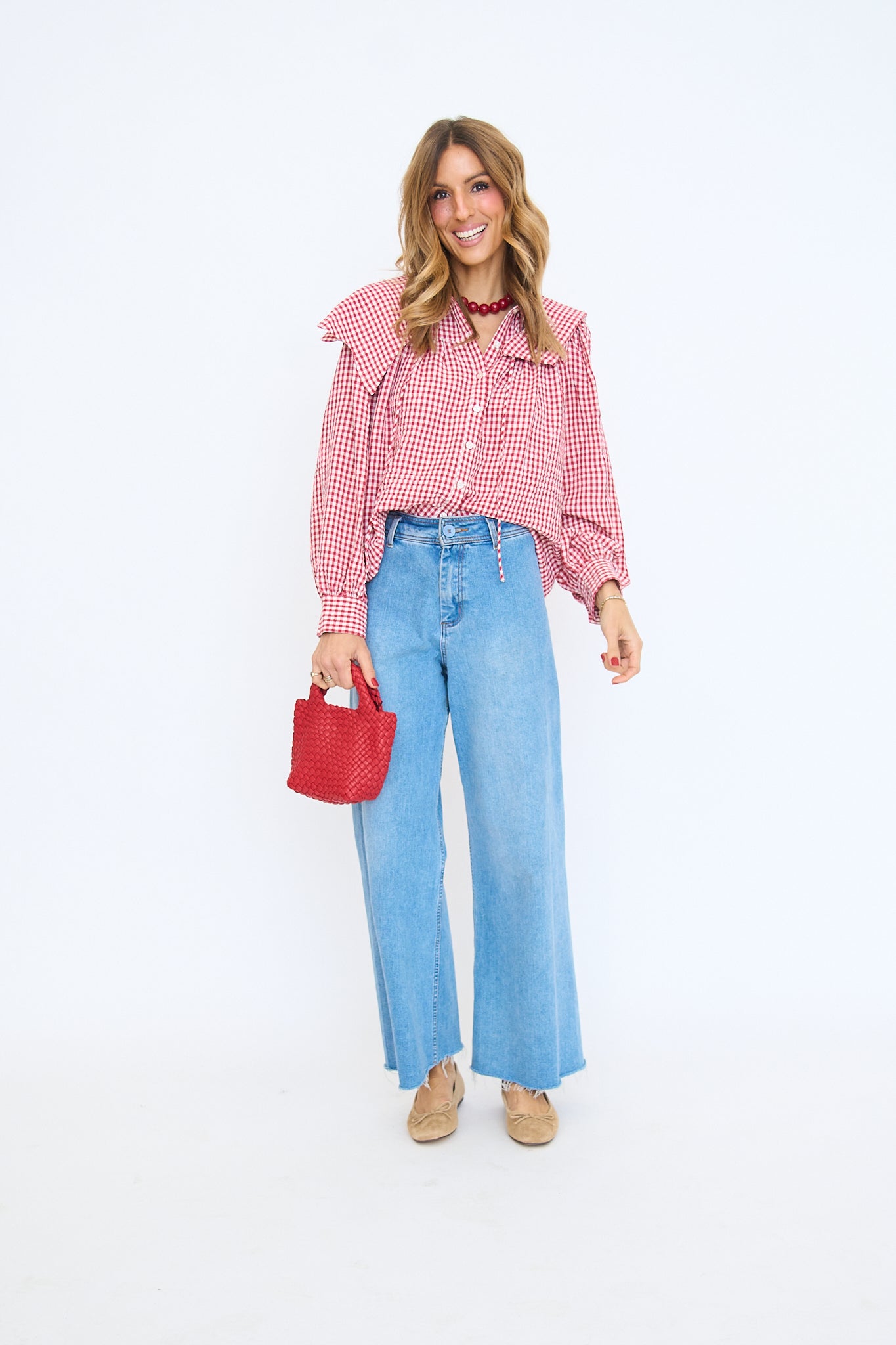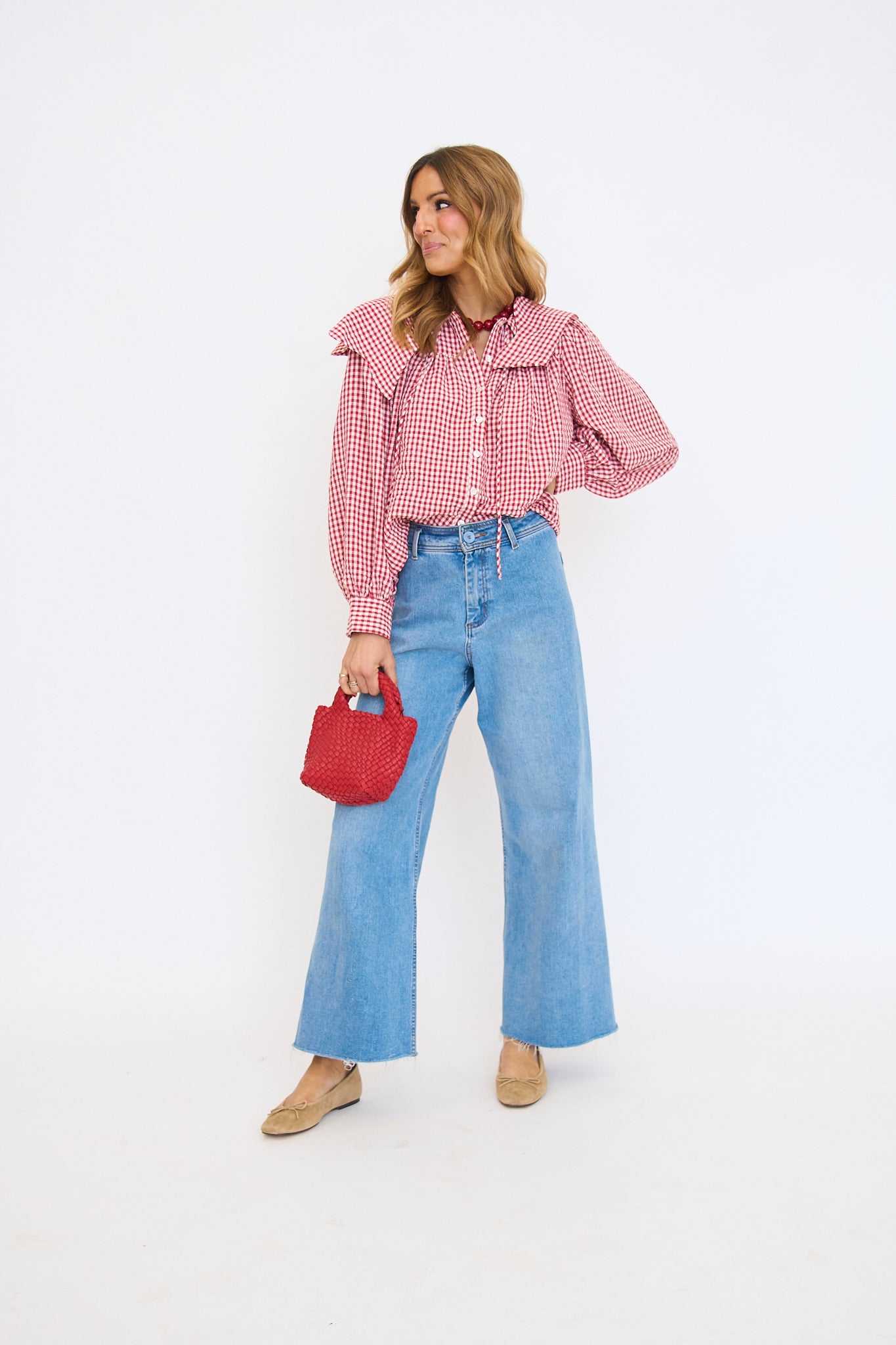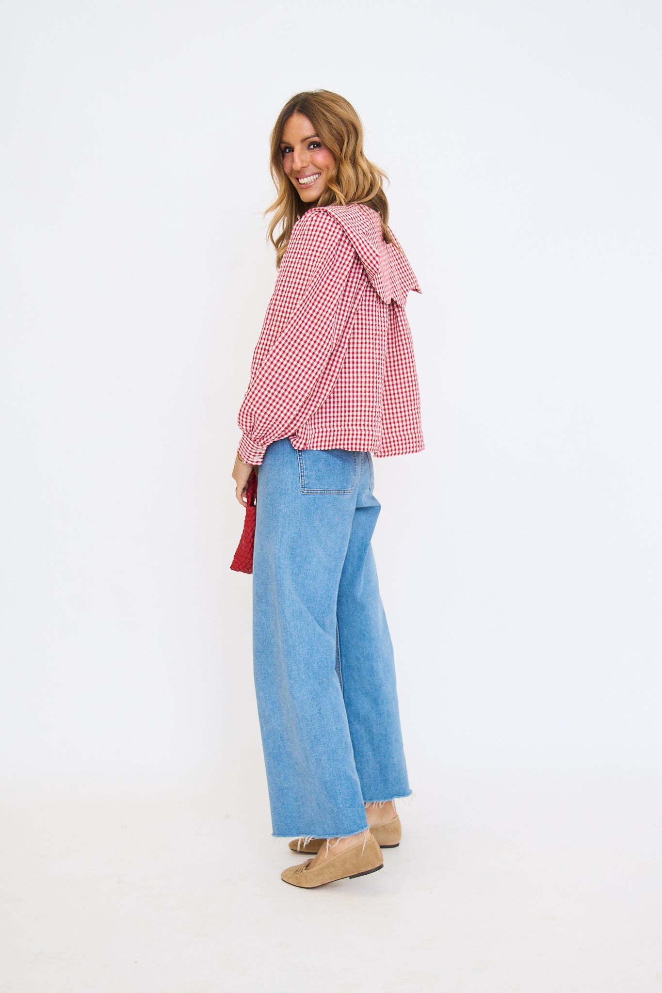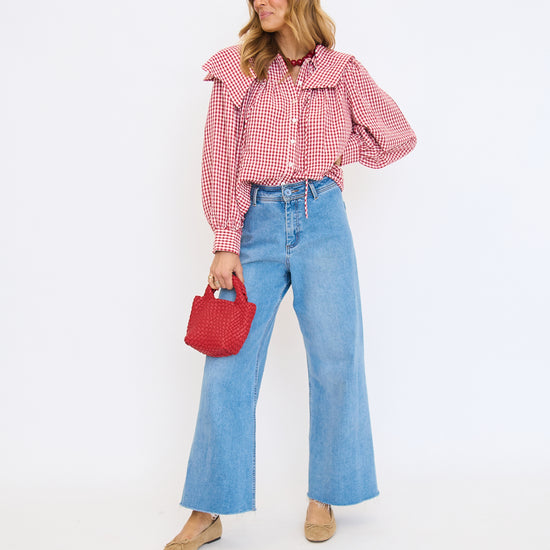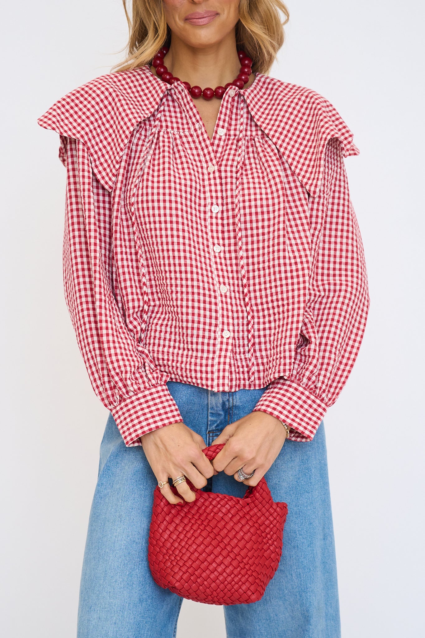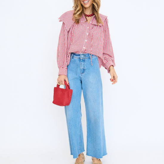 Gingham Poplin Peter Pan Collar Top