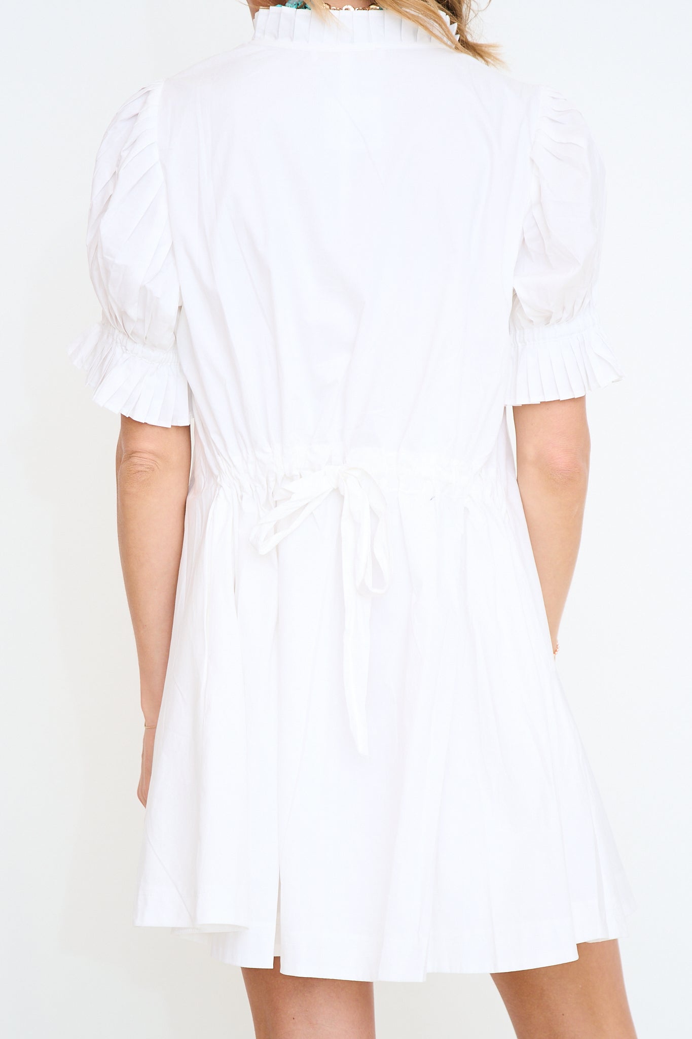 Solid Poplin Ruffle Neck Pleat Back Tie Dress
