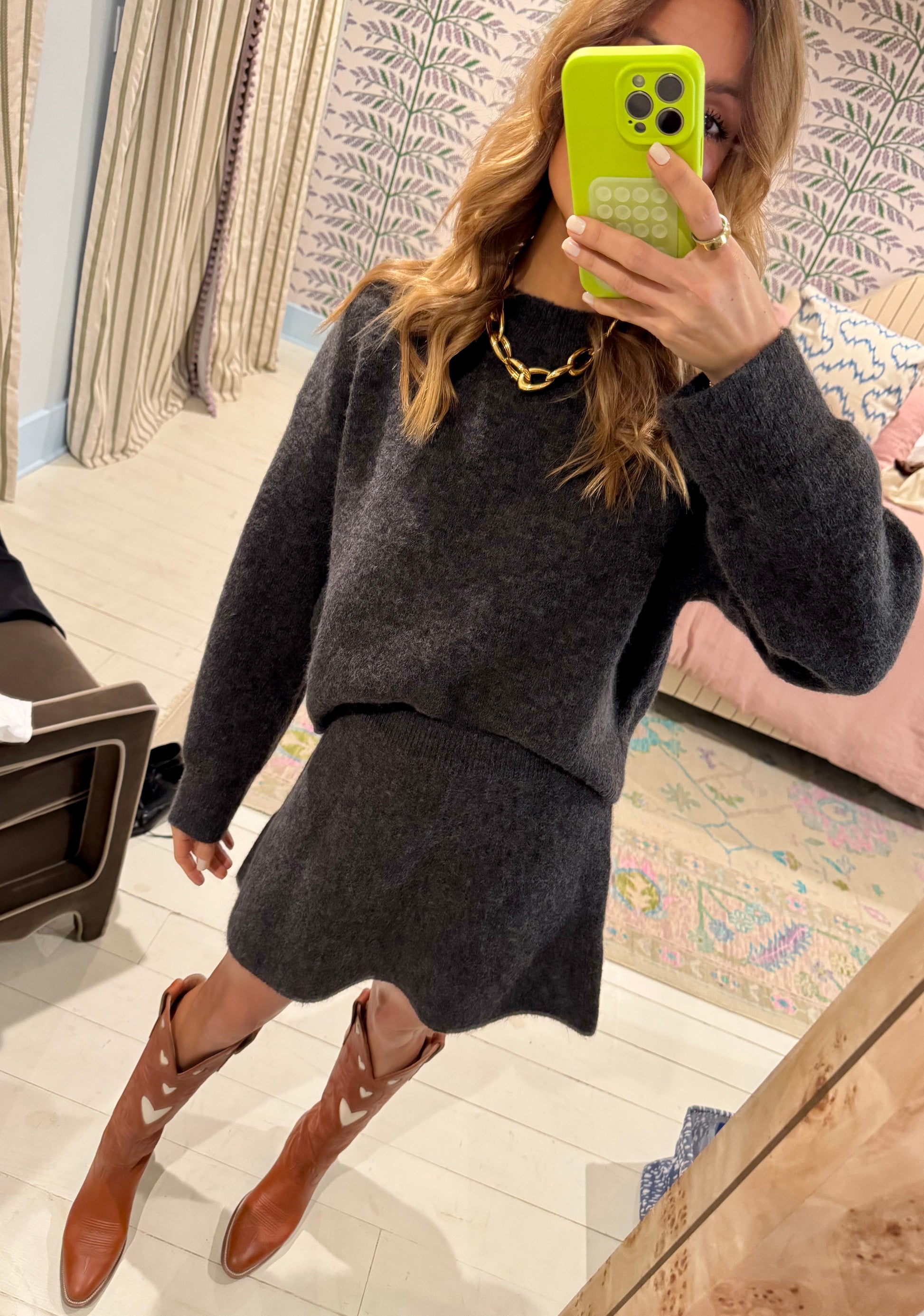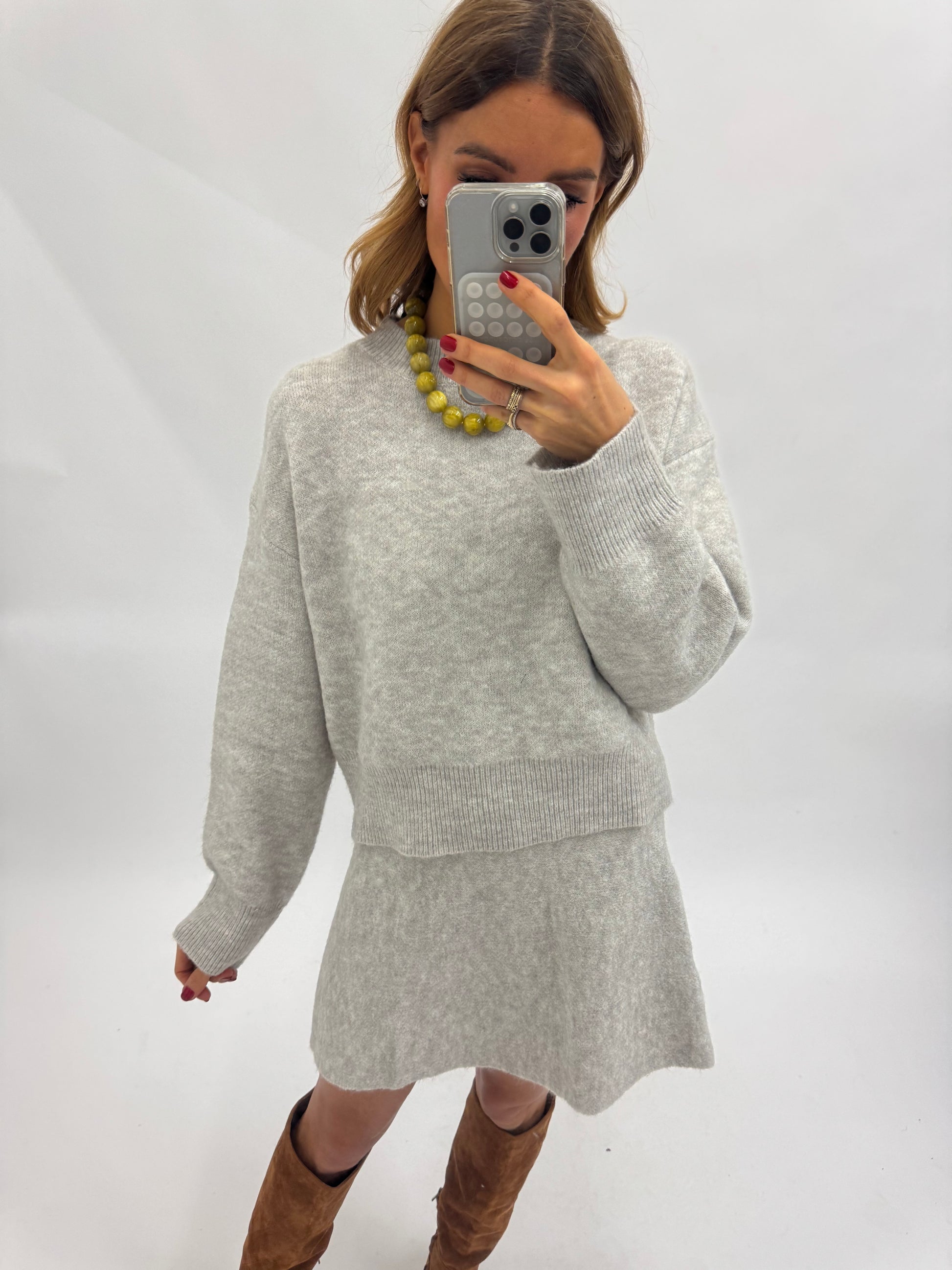 Heathered knit skirt set