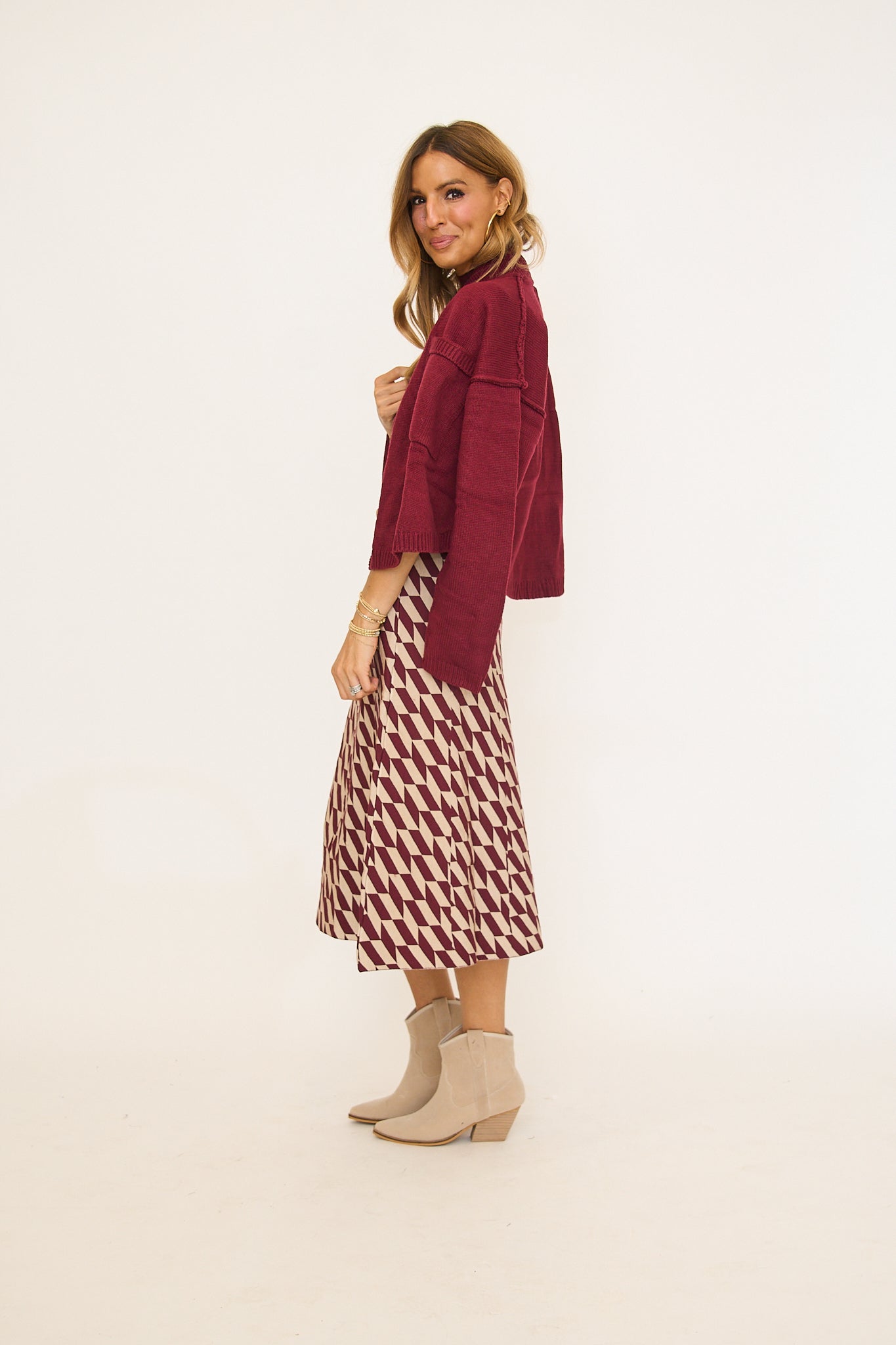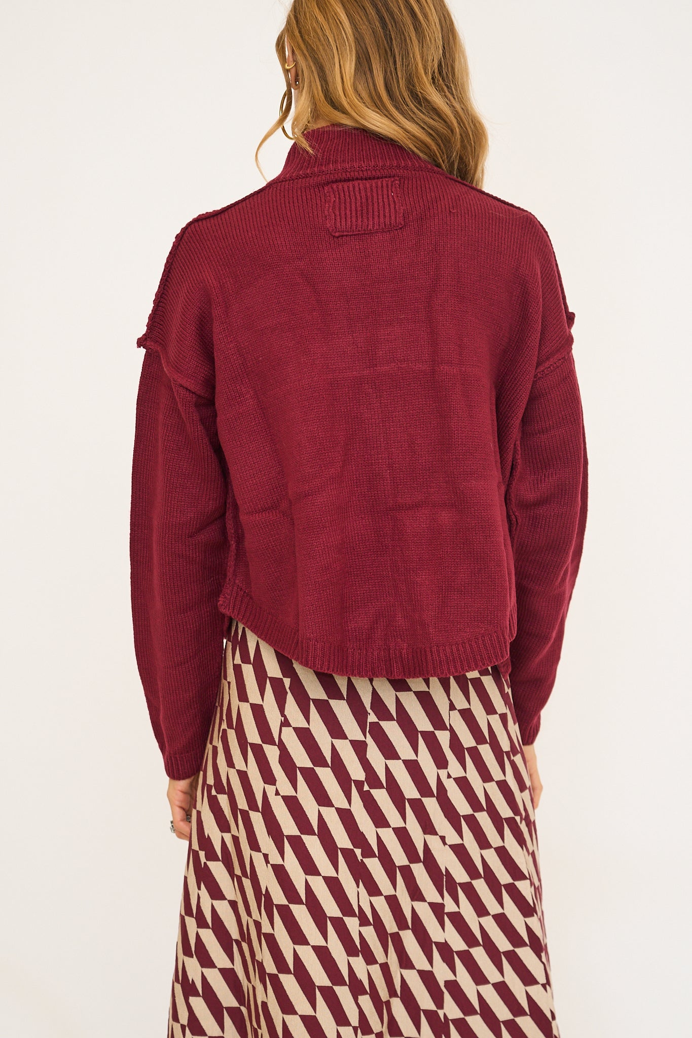 Fit is relaxed and oversized, can size down. Rachel is 5'8" wearing the size small.