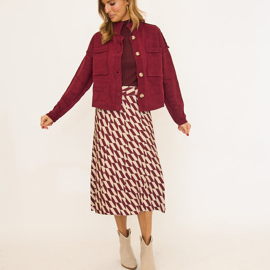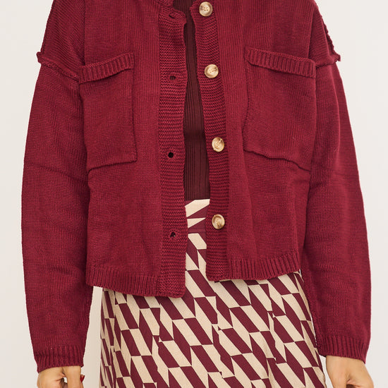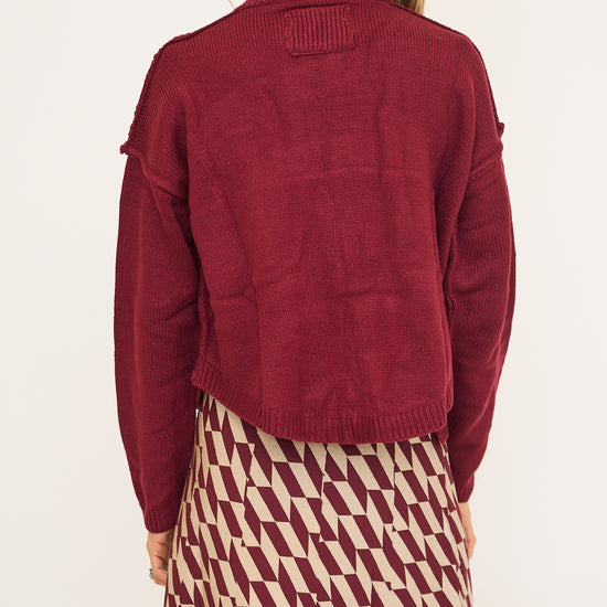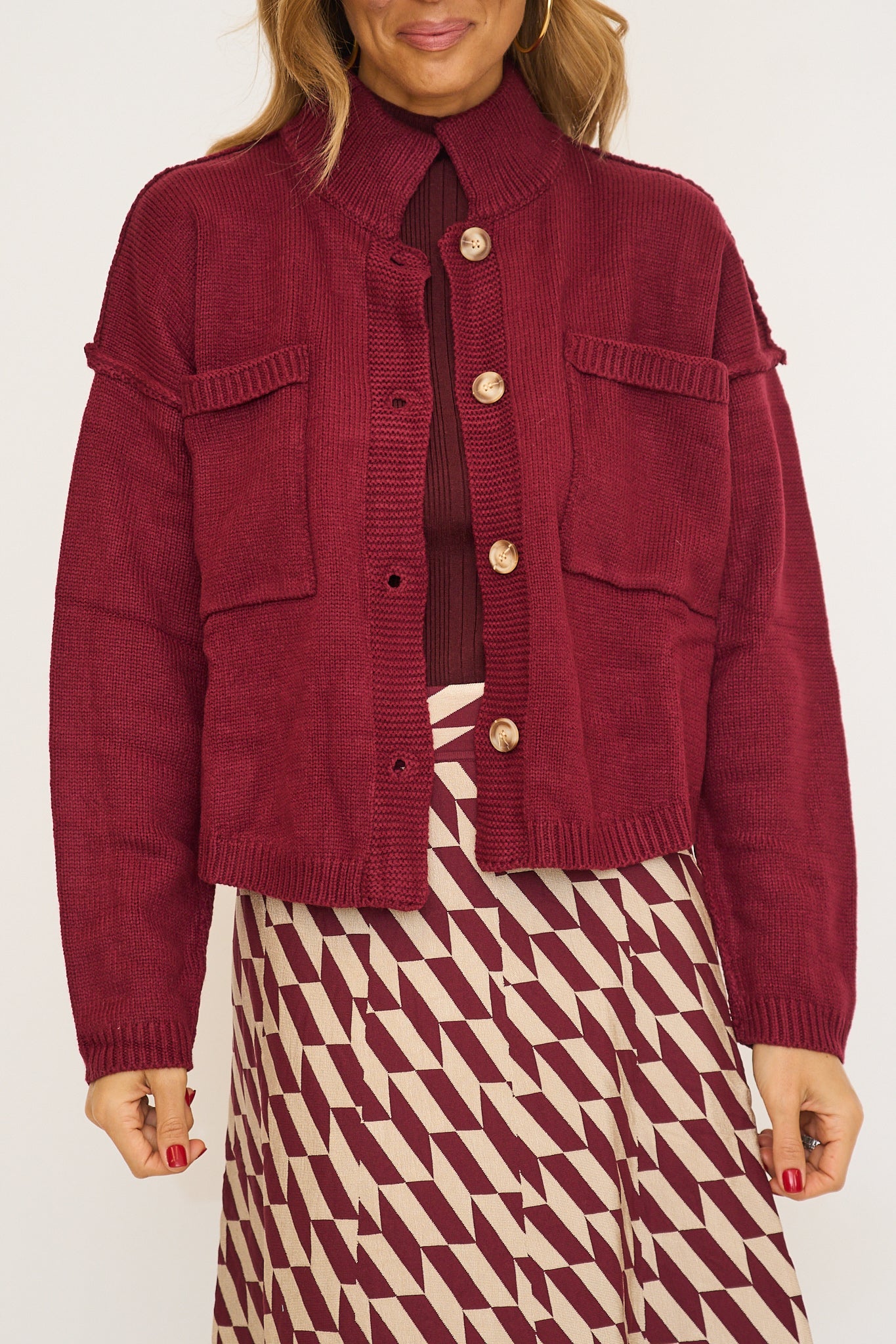 High neck button down pocketed sweater cardigan