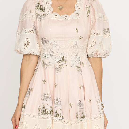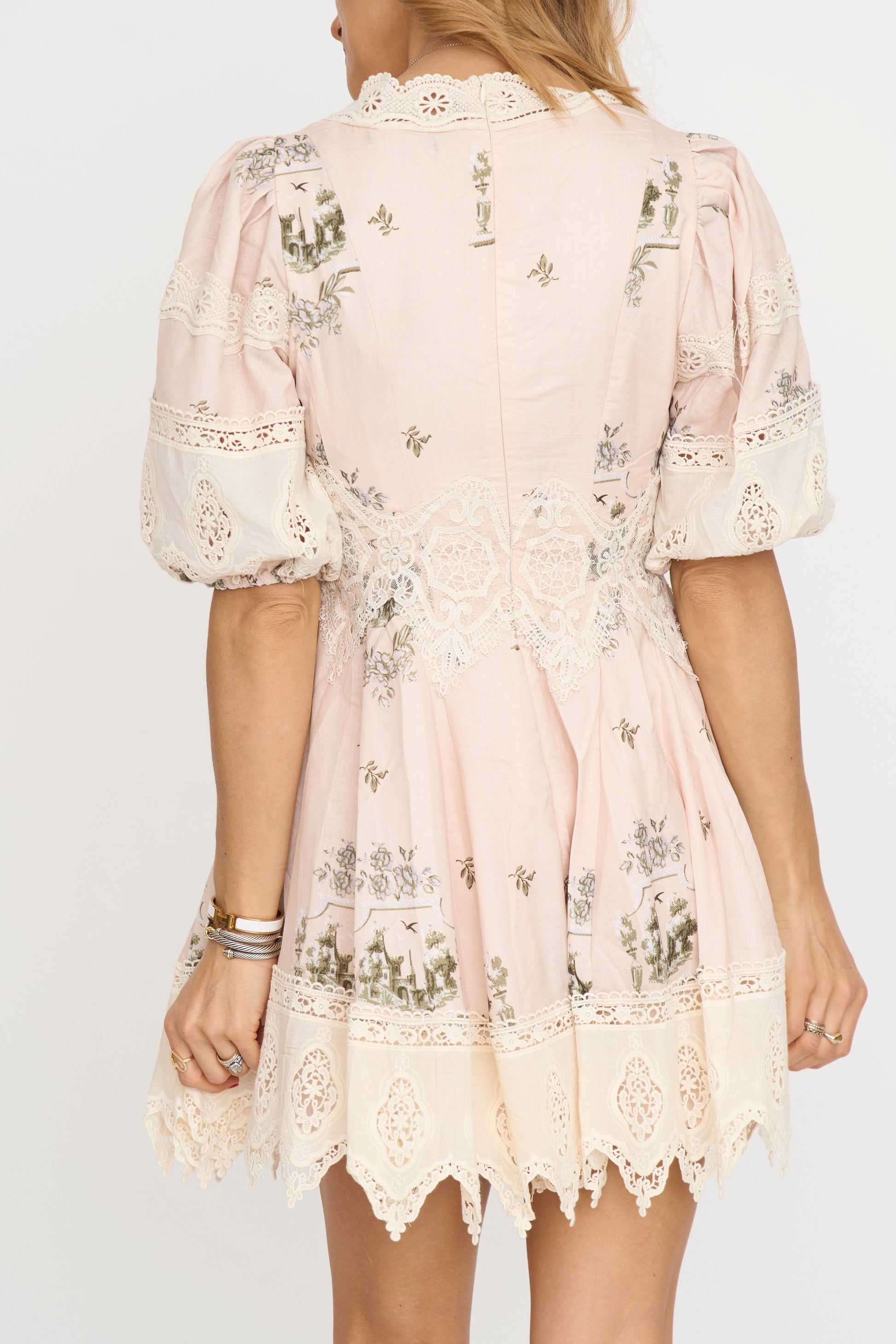 Lace Embroidered Detail Scallop Trim Mini Dress