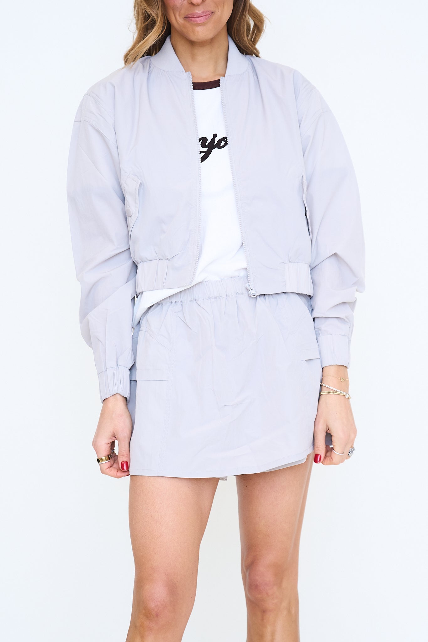 Stretch Woven Bomber Jacket and Skort Set