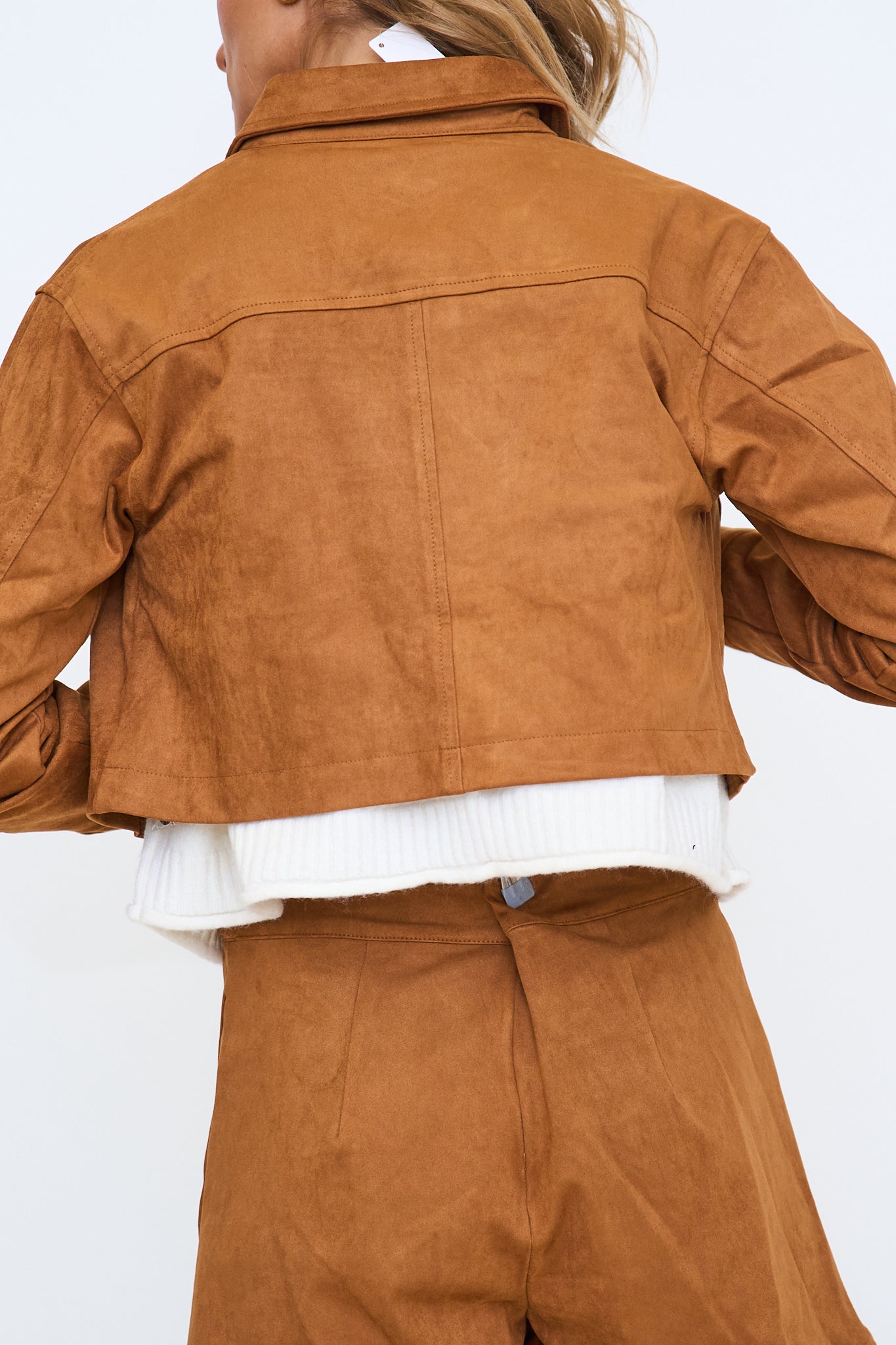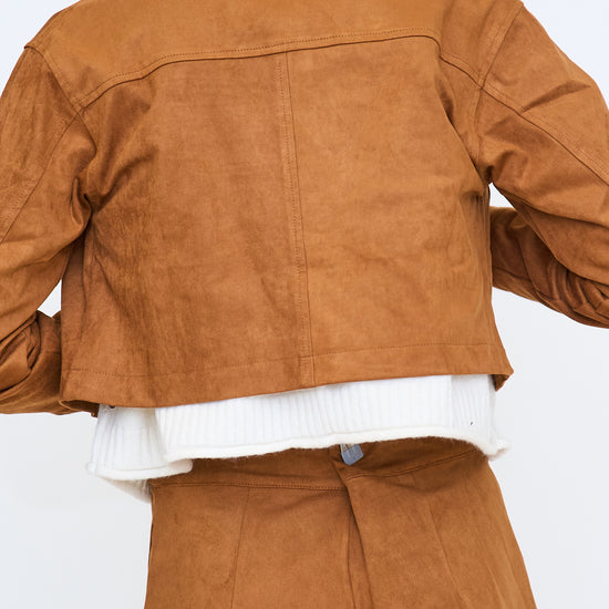 Crafted from a luxe suede-like fabric, this elevated top features a classic button-down front accented by a striking gold metal buckle detail for a modern, polished finish. Designed to be both timeless and on-trend, it's the perfect piece to style on its own or pair with the matching suede skort for a coordinated look.